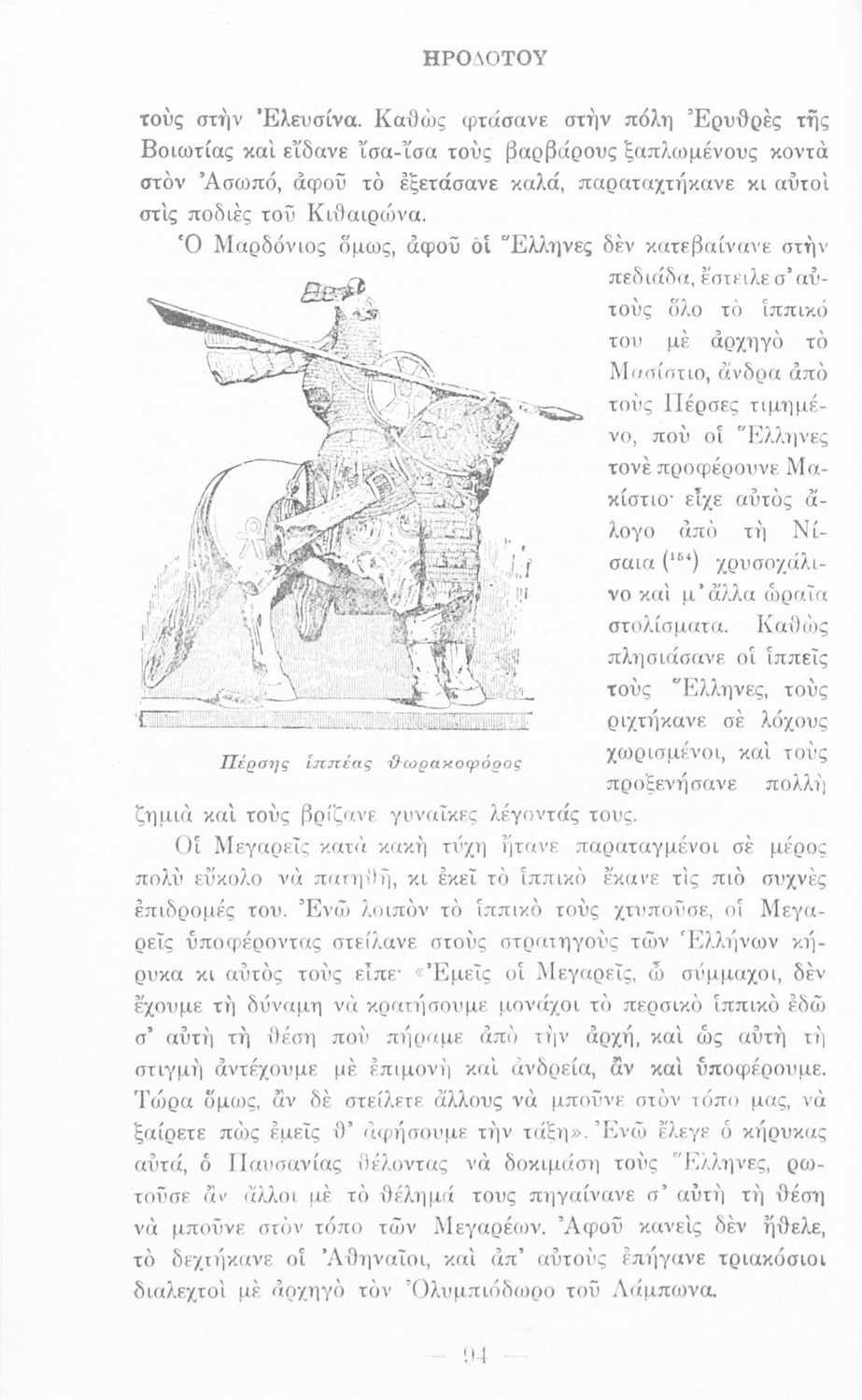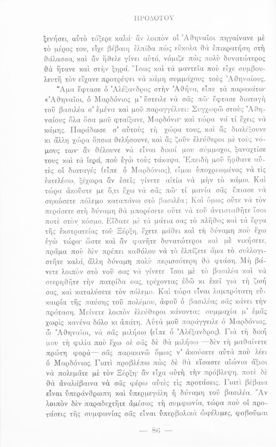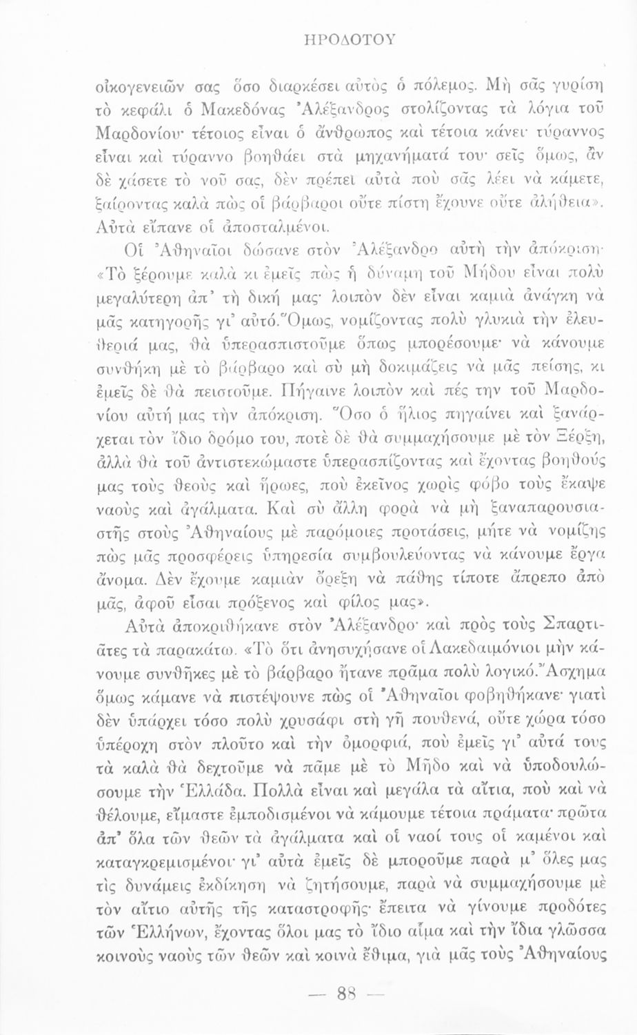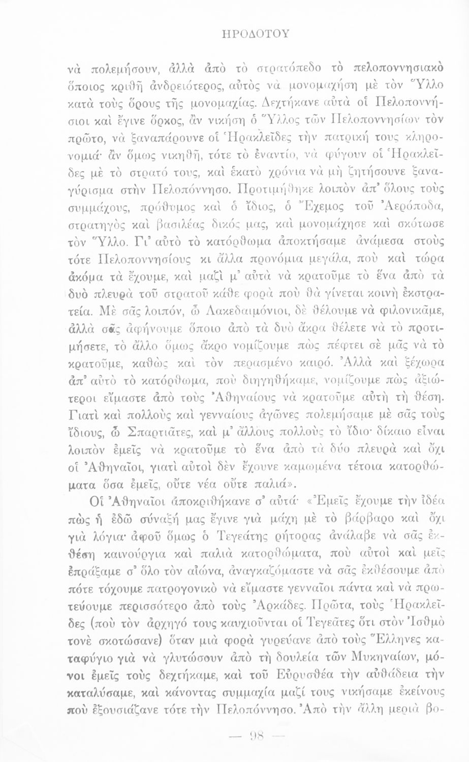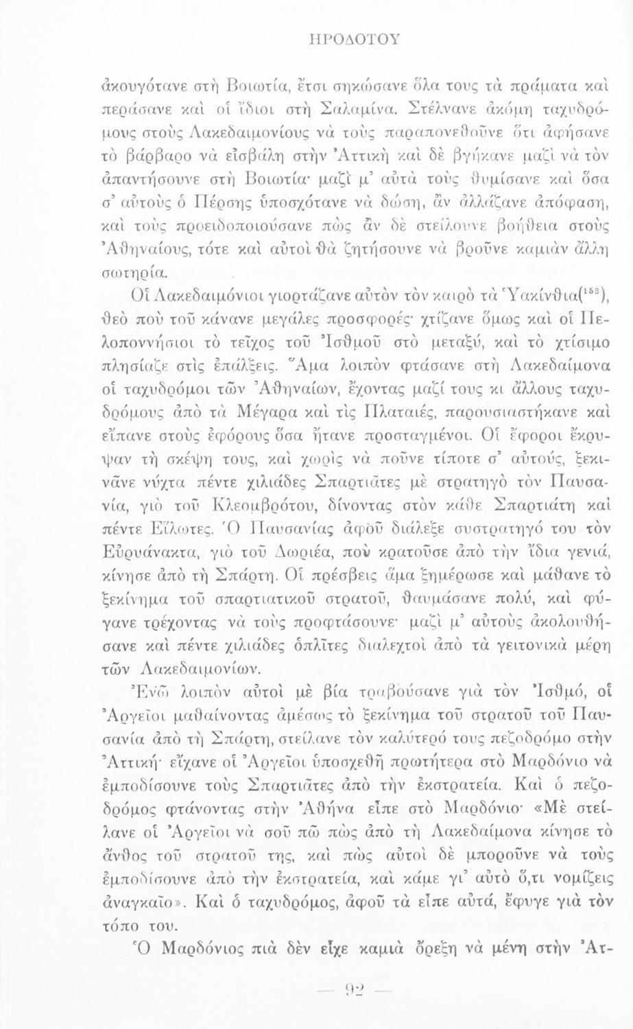 Σχολικό εγχειρίδιο Αρχαίων Ελληνικών της Β΄ Γυμνασίου το οποίο περιλαμβάνει μετάφραση αποσπασμάτων από την Ιστορία του Ηροδότου, βιογραφικά στοιχεία, εισαγωγή στο έργο και τη διάλεκτο του καθώς και ερμηνευτικά και πραγματολογικά σχόλια. Τα αποσπάσματα συνοδεύονται από εικόνες και χάρτες.