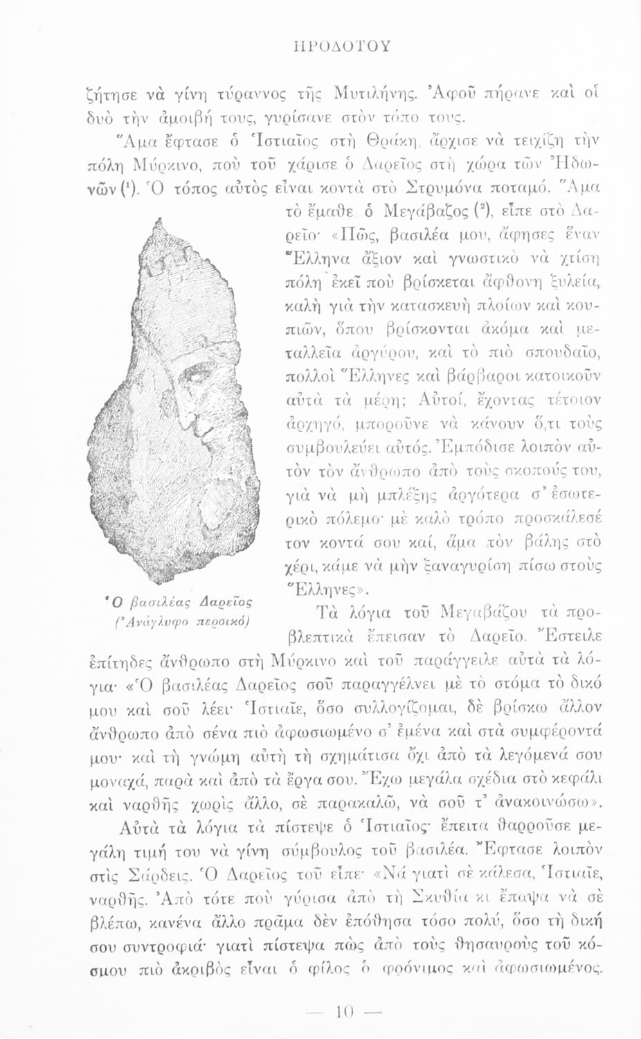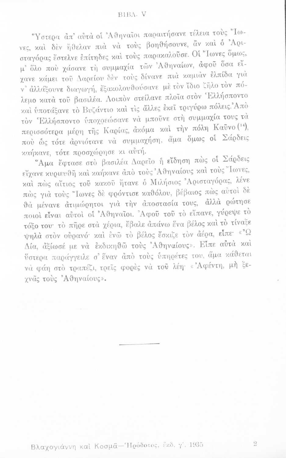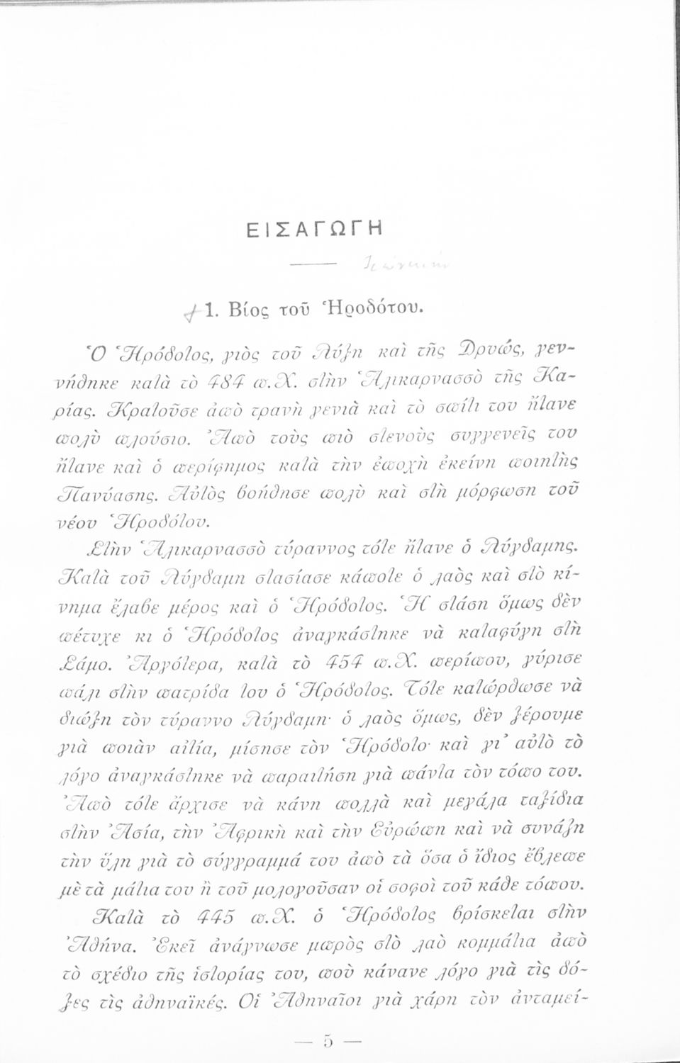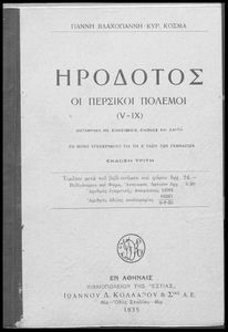 Σχολικό εγχειρίδιο Αρχαίων Ελληνικών της Β΄ Γυμνασίου το οποίο περιλαμβάνει μετάφραση αποσπασμάτων από την Ιστορία του Ηροδότου, βιογραφικά στοιχεία, εισαγωγή στο έργο και τη διάλεκτο του καθώς και ερμηνευτικά και πραγματολογικά σχόλια. Τα αποσπάσματα συνοδεύονται από εικόνες και χάρτες.