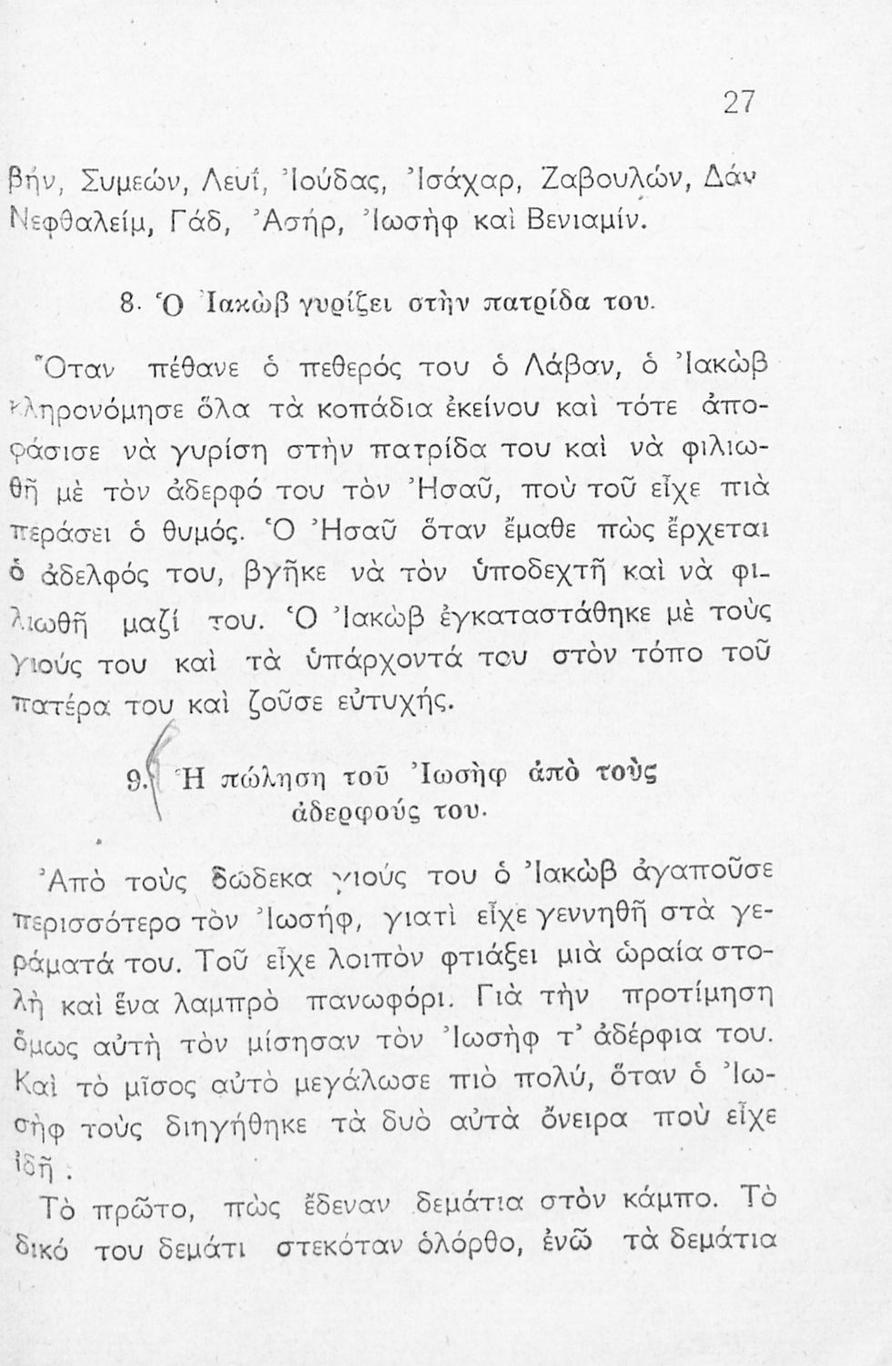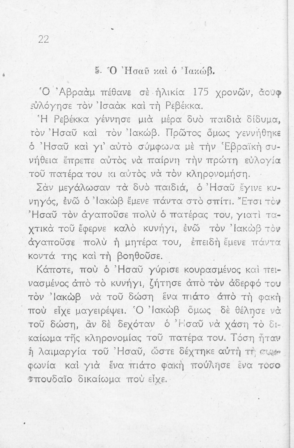 520 ## _aΣχολικό εγχειρίδιο Θρησκευτικών που συνιστά μία εξιστόρηση της Παλαιάς Διαθήκης από τη δημιουργία του κόσμου ως τους Προφήτες.