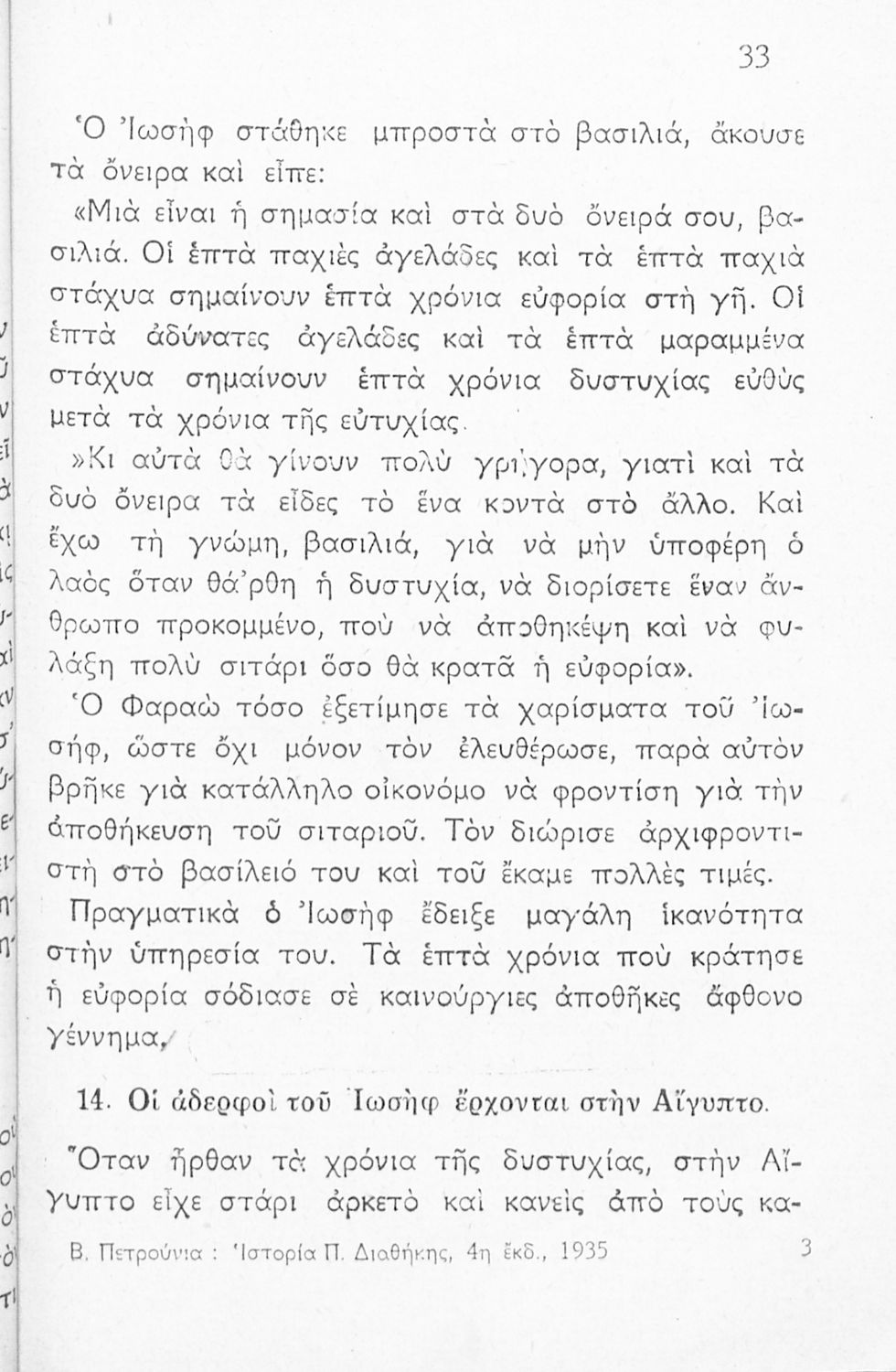 Σχολικό εγχειρίδιο Θρησκευτικών που συνιστά μία εξιστόρηση της Παλαιάς Διαθήκης από τη δημιουργία του κόσμου ως τους Προφήτες.