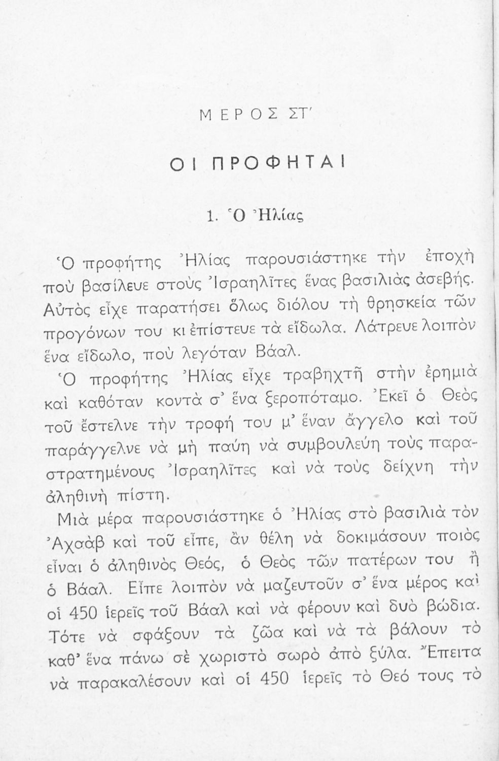 Σχολικό εγχειρίδιο Θρησκευτικών που συνιστά μία εξιστόρηση της Παλαιάς Διαθήκης από τη δημιουργία του κόσμου ως τους Προφήτες.