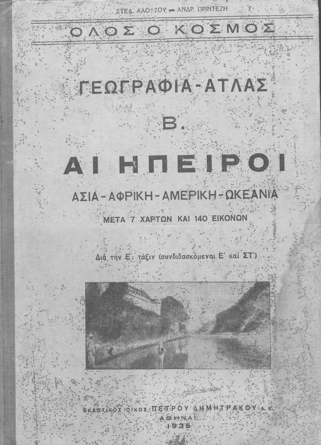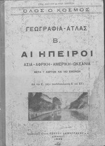 Κωδικός αναγνώρισης: 02-01368 Τίτλος: Γεωγραφία - Άτλας Β΄ Αι Ήπειροι Ασία, Αφρική, Αμερική, Ωκεανία μετά επτά χαρτών και εκατόν σαράντα εικόνων δια την Ε΄ τάξιν (συνδιδασκόμεναι Ε΄ και ΣΤ΄ ) Συγγραφέας: Στελ. Αλοΐζος, Ανδρ. Πρίντεζης Μέγεθος και υπόστρωμα: Σχολικό εγχειρίδιο, σκληρό εξώφυλλο, 48 σελίδες. Εικόνες (ασπρόμαυρες), σκίτσα (ασπρόμαυρα), χάρτες (ασπρόμαυροι). |