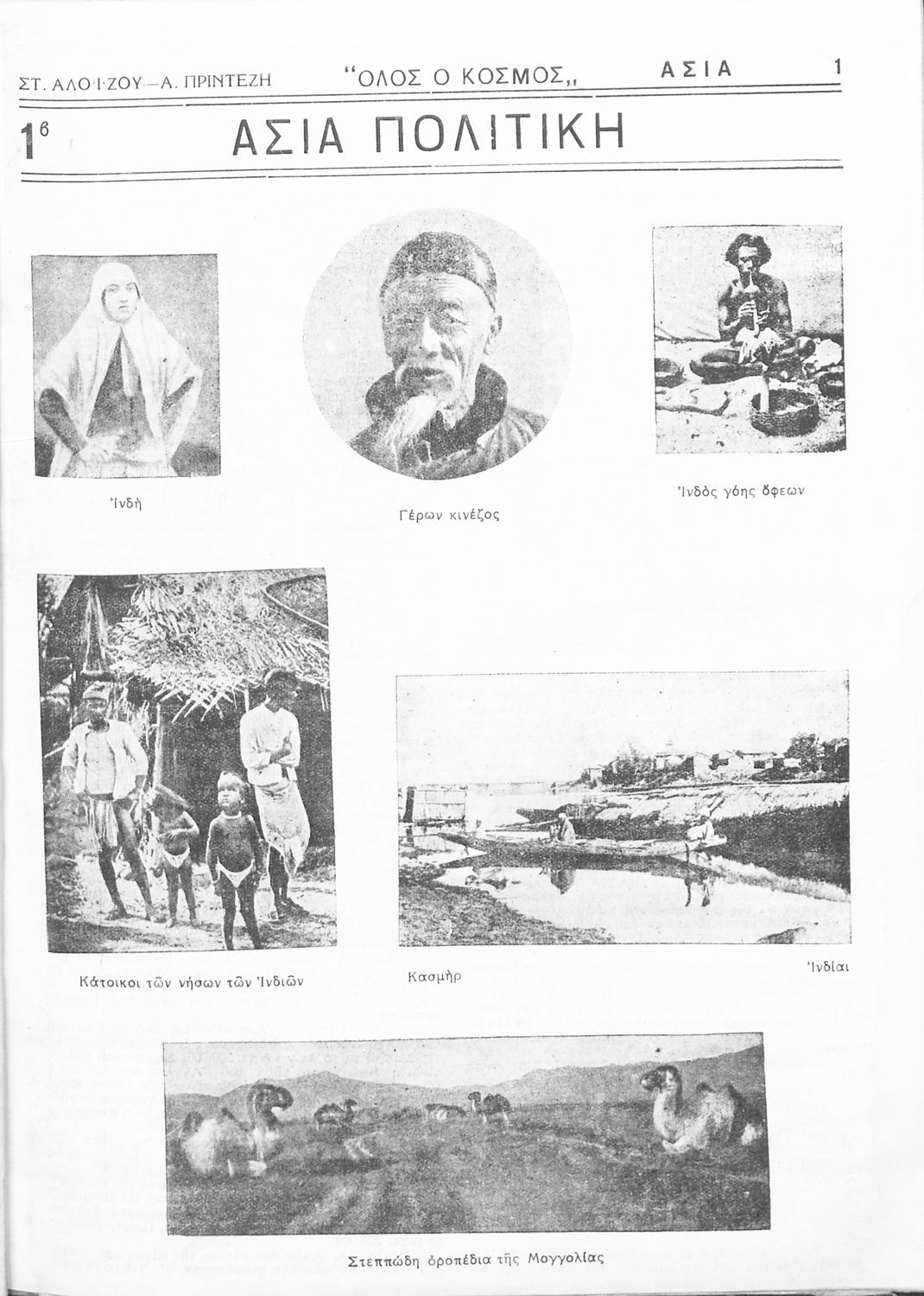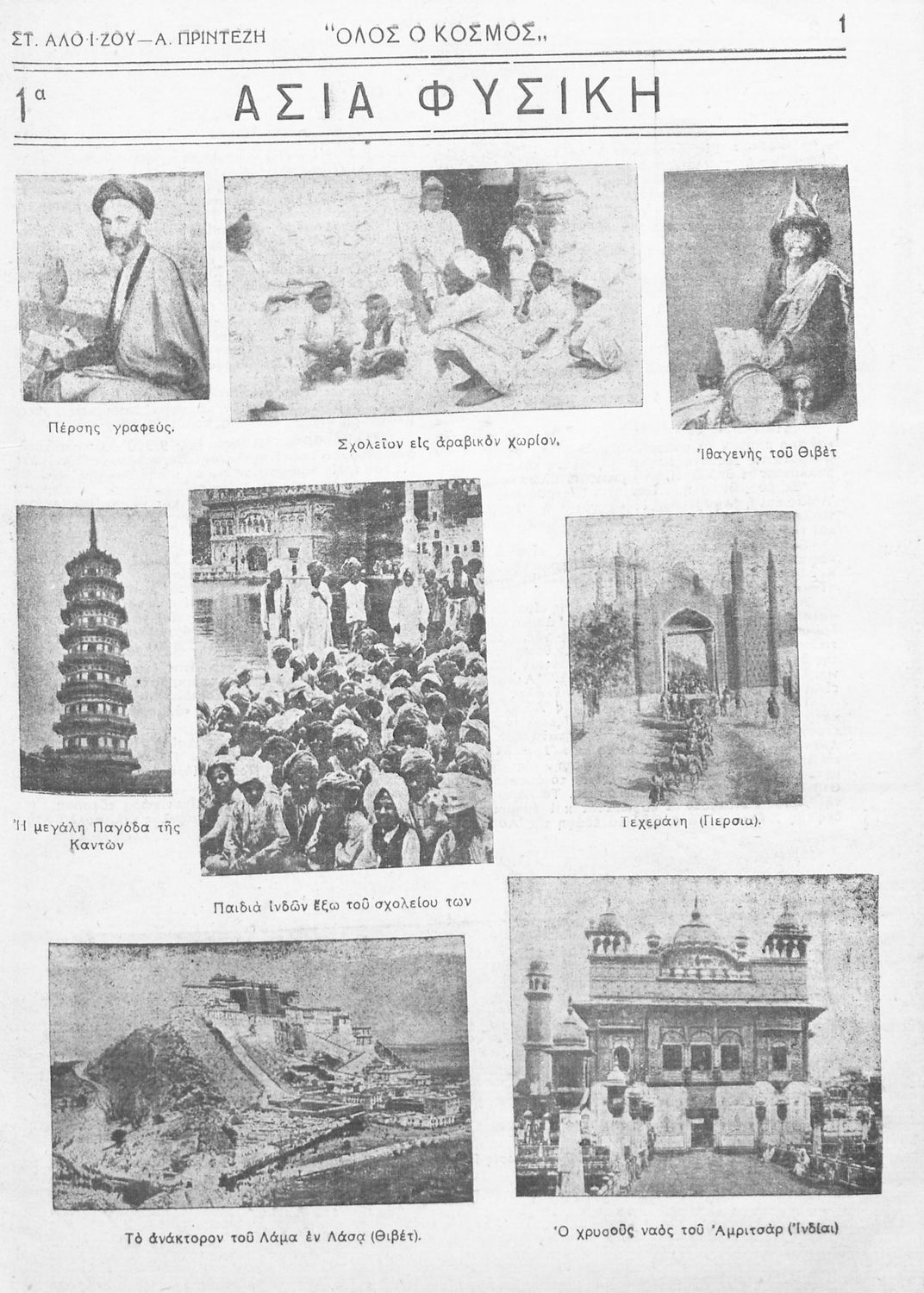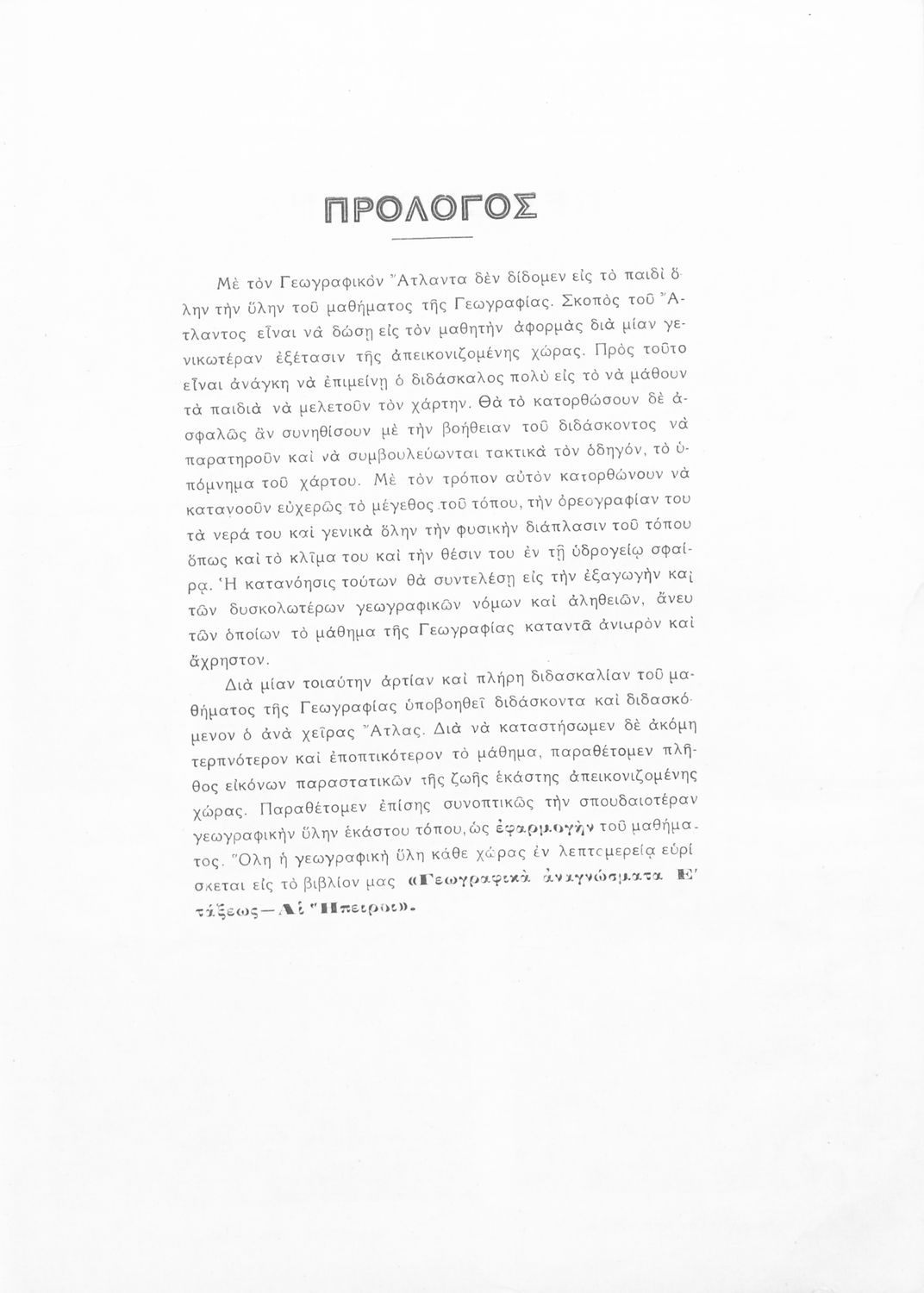 Βαθμίδα εκπαίδευσης: Πρωτοβάθμια Τάξη: Ε' Δημοτικού Μάθημα: Γεωγραφία Γλώσσα: Απλή καθαρεύουσα Παρουσίαση περιεχομένου: Μαθητικό/εκπαιδευτικό βοήθημα Γεωγραφίας Ε΄ Δημοτικού που δεν αποσκοπεί στη διδασκαλία της ύλης της γεωγραφίας αλλά στο να "δώσει στον μαθητή αφορμή για μια γενικότερη εξέταση της απεικονιζόμενης χώρας" και στον εκπαιδευτικό το αναγκαίο εποπτικό υλικό για μία παραστατικότερη διδασκαλία του μαθήματος. |