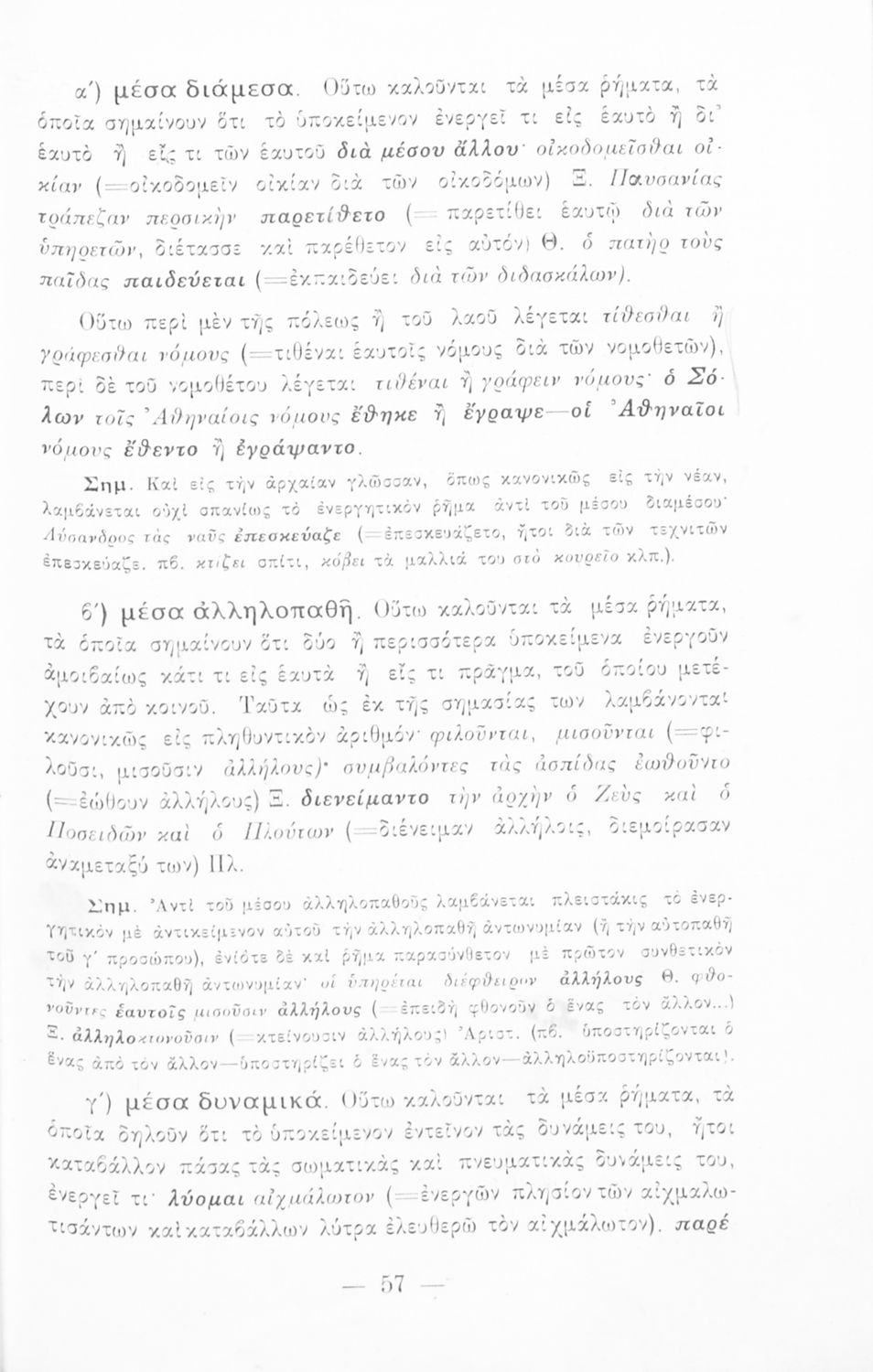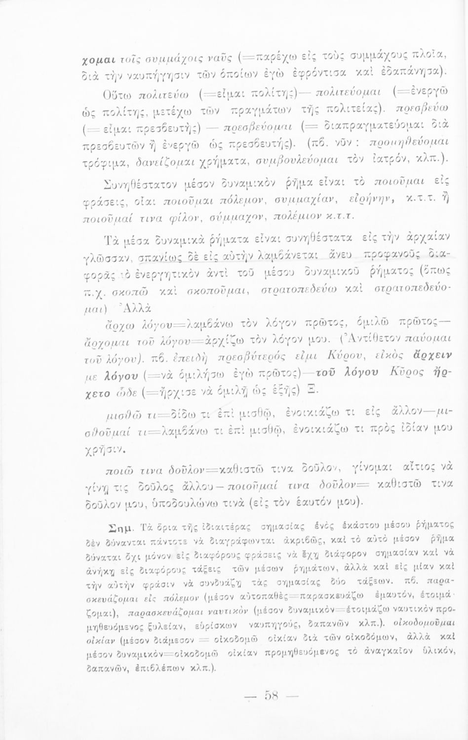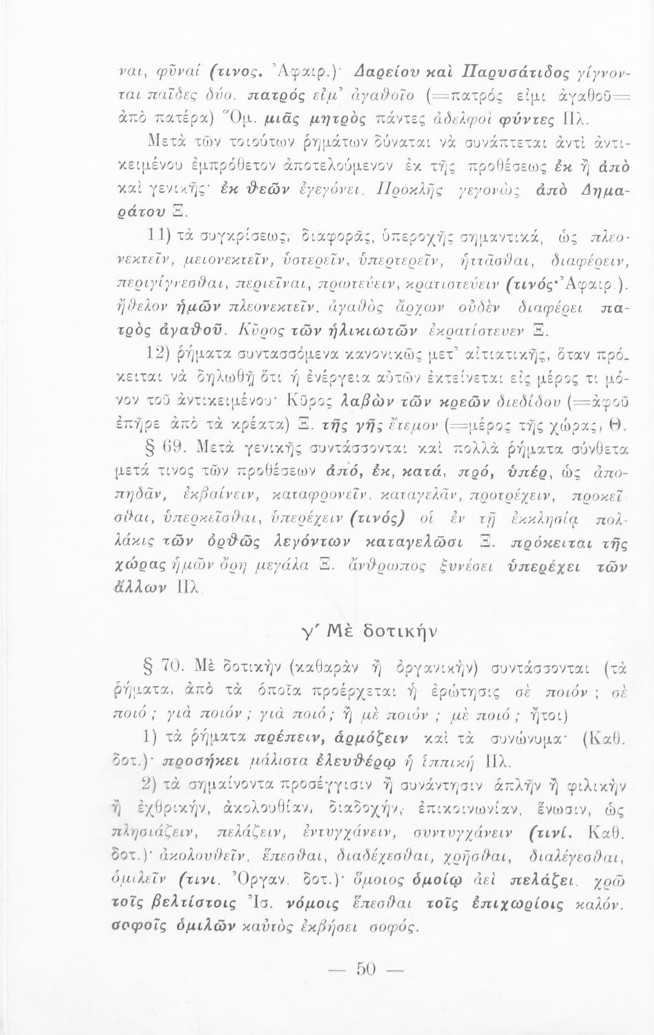Σχολικό εγχειρίδιο Αρχαίων Ελληνικών που εξετάζει τα μέρη του λόγου και την σύνταξή τους.