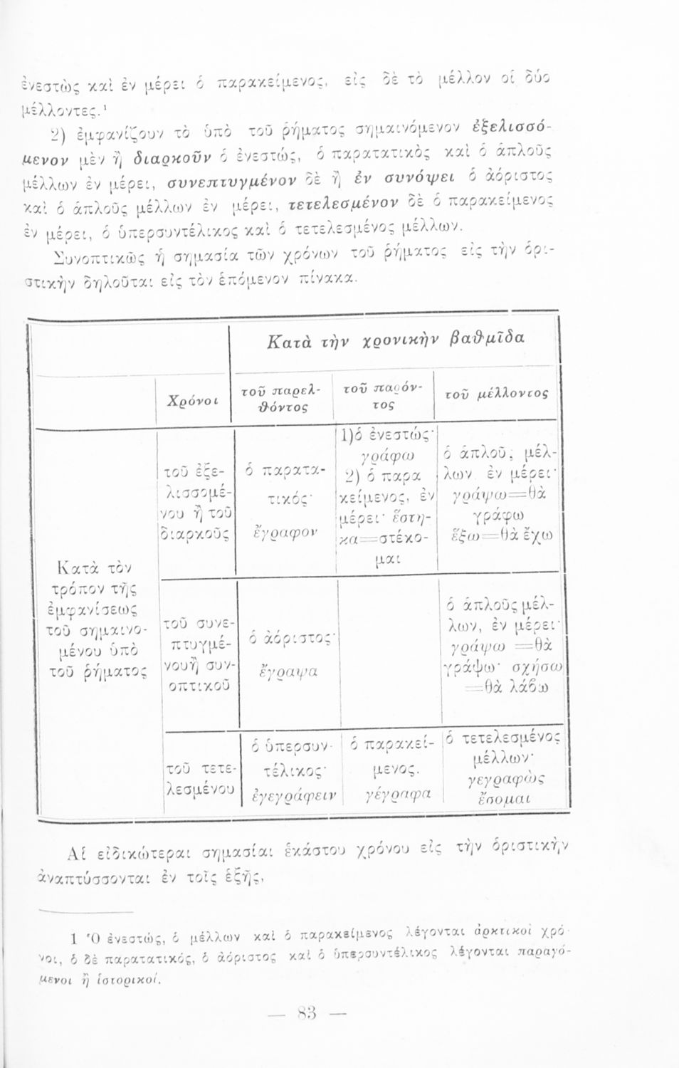 Σχολικό εγχειρίδιο Αρχαίων Ελληνικών που εξετάζει τα μέρη του λόγου και την σύνταξή τους.