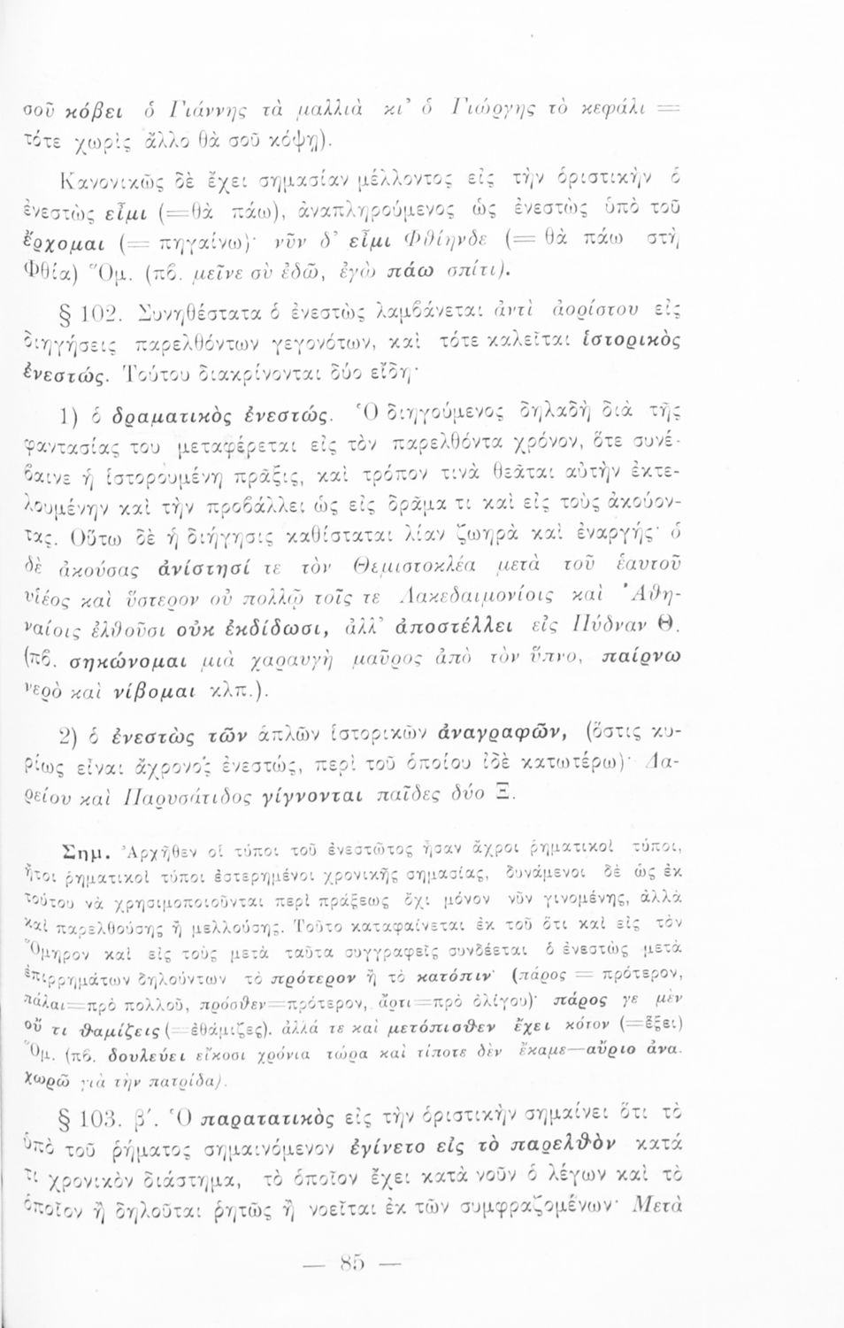 Παρουσίαση περιεχομένου: Σχολικό εγχειρίδιο Αρχαίων Ελληνικών που εξετάζει τα μέρη του λόγου και την σύνταξή τους.