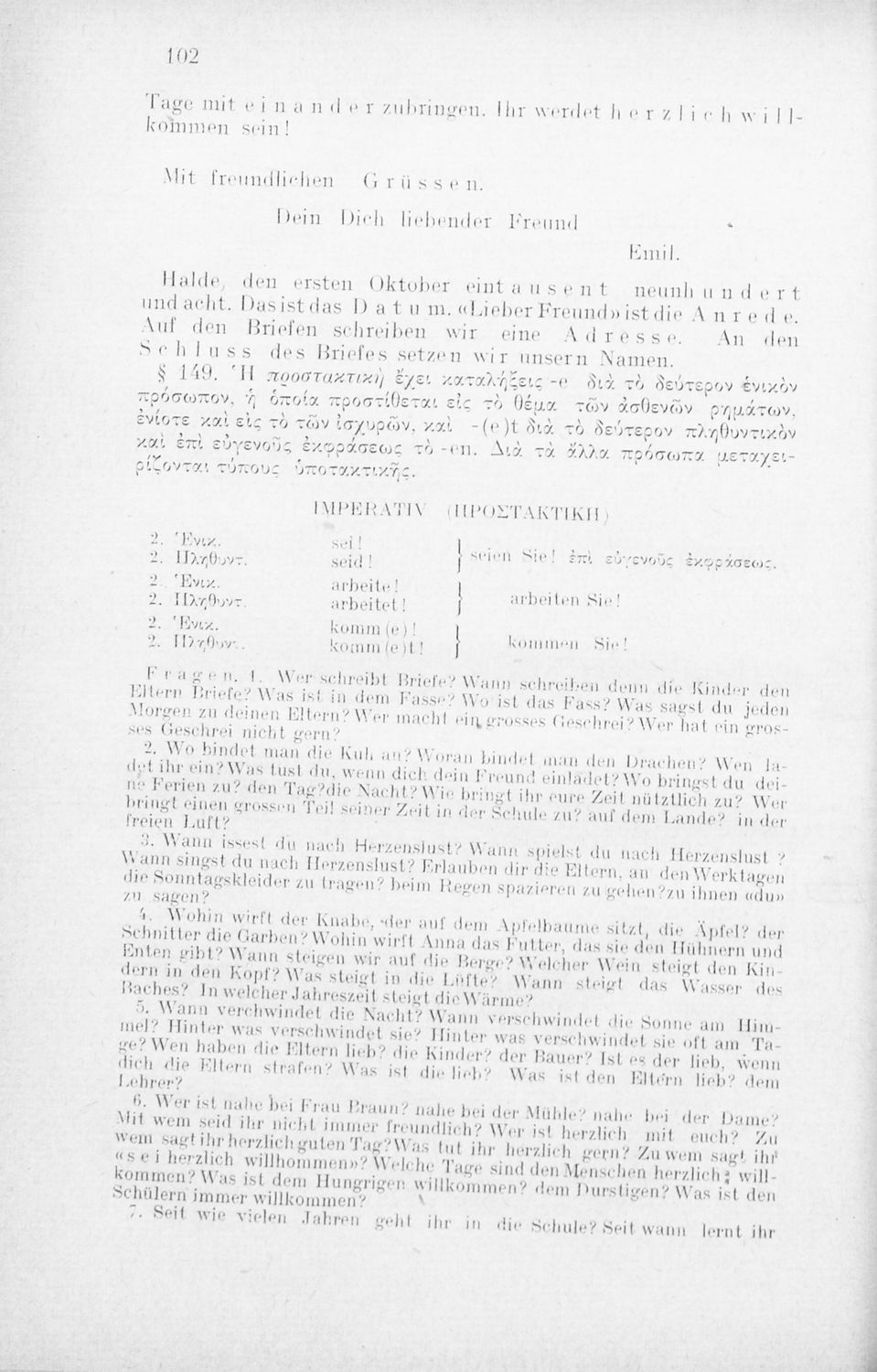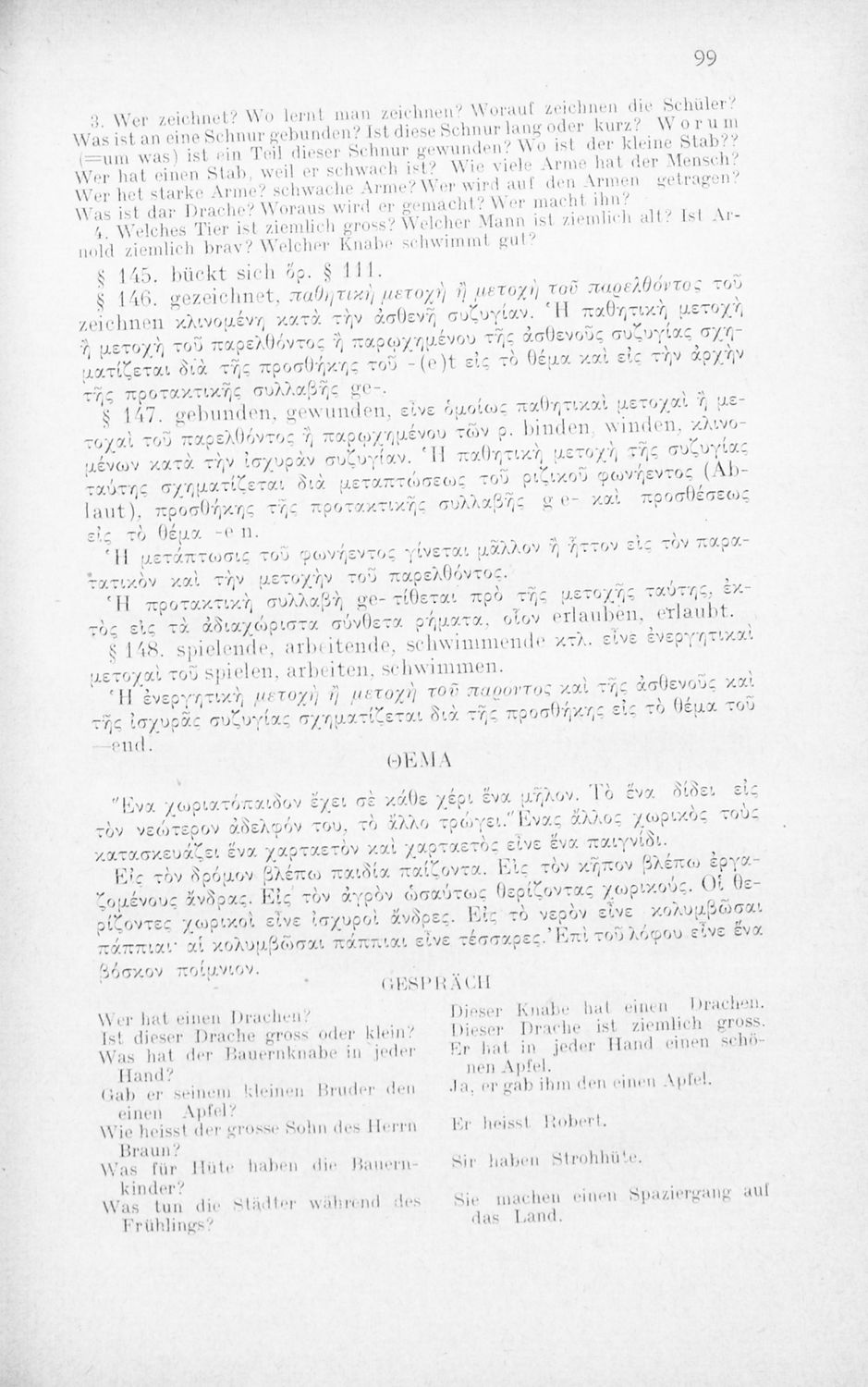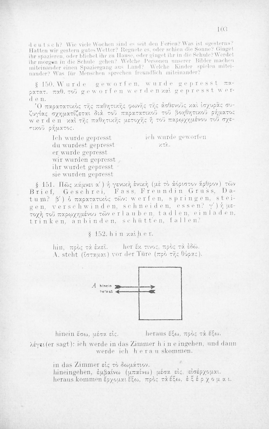Πρόκειται για εγχειρίδιο που στόχο είχε την εκμάθηση των γραμματικών και συντακτικών φαινομένων της Γερμανικής γλώσσας με στόχο την ταχεία εκμάθησή της από Ελληνικό πληθυσμό. Φέρει λίγες προσωπικές σημειώσεις ...