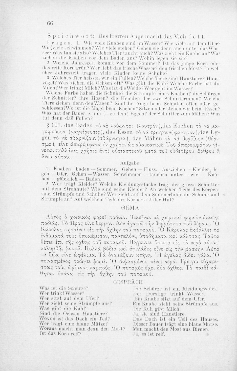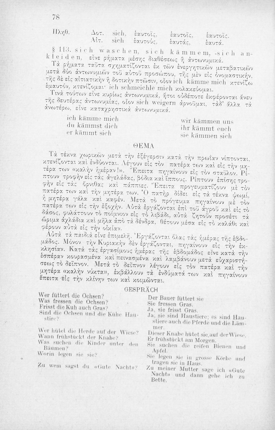 Πρόκειται για εγχειρίδιο που στόχο είχε την εκμάθηση των γραμματικών και συντακτικών φαινομένων της Γερμανικής γλώσσας με στόχο την ταχεία εκμάθησή της από Ελληνικό πληθυσμό. Φέρει λίγες προσωπικές σημειώσεις ...