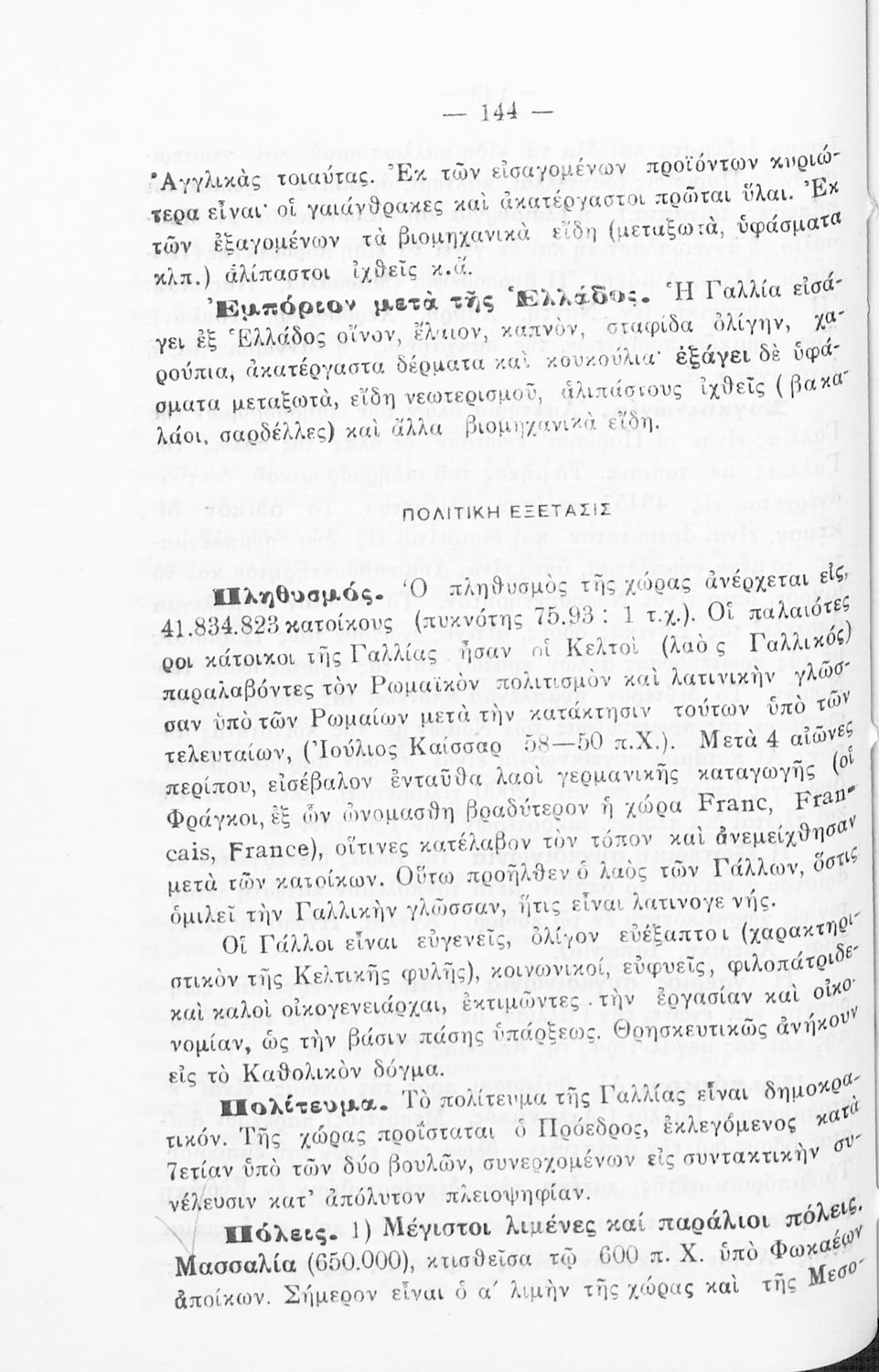 Βαθμίδα εκπαίδευσης: Δευτεροβάθμια Τάξη: Μέσες Εμπορικές Σχολές / Πρακτικό Λύκειο Μάθημα: Γεωγραφία Γλώσσα: Καθαρεύουσα Παρουσίαση περιεχομένου: Πρόκειται για σχολικό εγχειρίδιο το οποίο προοριζόταν για τη διδασκαλία του μαθήματος της Γεωγραφίας στους υποψηφίους των ανωτάτων σχολών του κράτους, Ευελπίδων, Αεροπορίας, Δοκίμων, Ανωτάτης σχολής οικονομικών και εμπορικών επιστημών, καθώς και τους μαθητές των Μέσων εμπορικών σχολών και Πρακτικών Λυκείων. Φέρει την υπογραφή του συγγραφέα. |