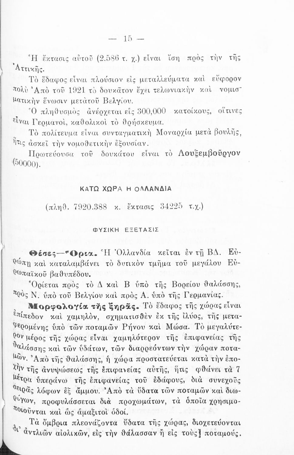 Πρόκειται για σχολικό εγχειρίδιο το οποίο προοριζόταν για τη διδασκαλία του μαθήματος της Γεωγραφίας στους υποψηφίους των ανωτάτων σχολών του κράτους, Ευελπίδων, Αεροπορίας, Δοκίμων, Ανωτάτης σχολής οικονομικών και εμπορικών επιστημών, καθώς και τους μαθητές των Μέσων εμπορικών σχολών και Πρακτικών Λυκείων. Φέρει την υπογραφή του συγγραφέα.