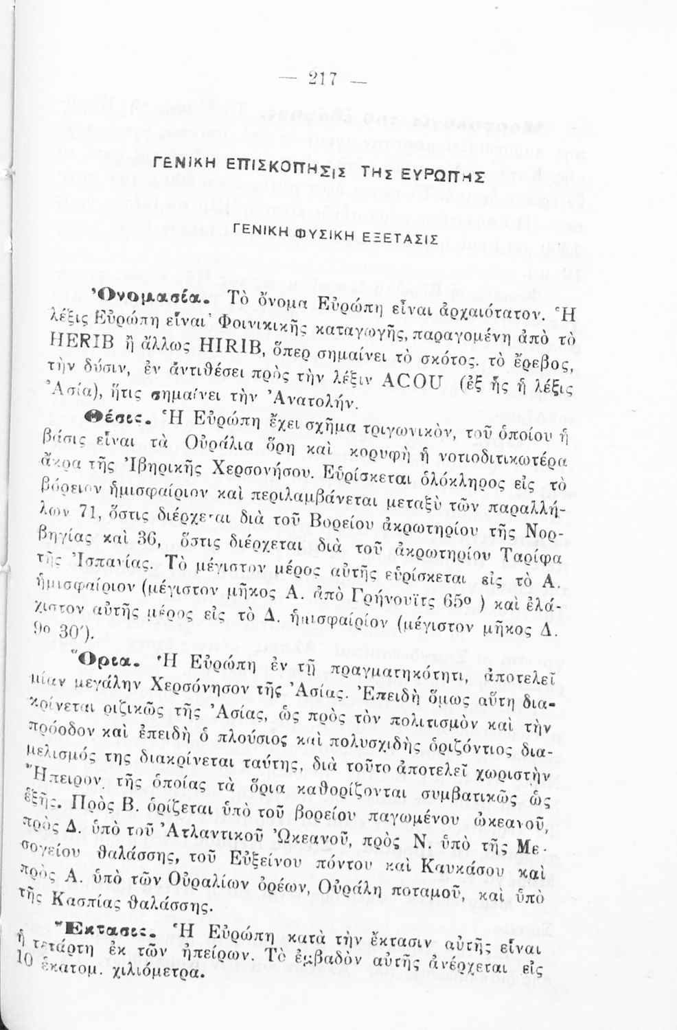 Βαθμίδα εκπαίδευσης: Δευτεροβάθμια Τάξη: Μέσες Εμπορικές Σχολές / Πρακτικό Λύκειο Μάθημα: Γεωγραφία Γλώσσα: Καθαρεύουσα Παρουσίαση περιεχομένου: Πρόκειται για σχολικό εγχειρίδιο το οποίο προοριζόταν για τη διδασκαλία του μαθήματος της Γεωγραφίας στους υποψηφίους των ανωτάτων σχολών του κράτους, Ευελπίδων, Αεροπορίας, Δοκίμων, Ανωτάτης σχολής οικονομικών και εμπορικών επιστημών, καθώς και τους μαθητές των Μέσων εμπορικών σχολών και Πρακτικών Λυκείων. Φέρει την υπογραφή του συγγραφέα. |