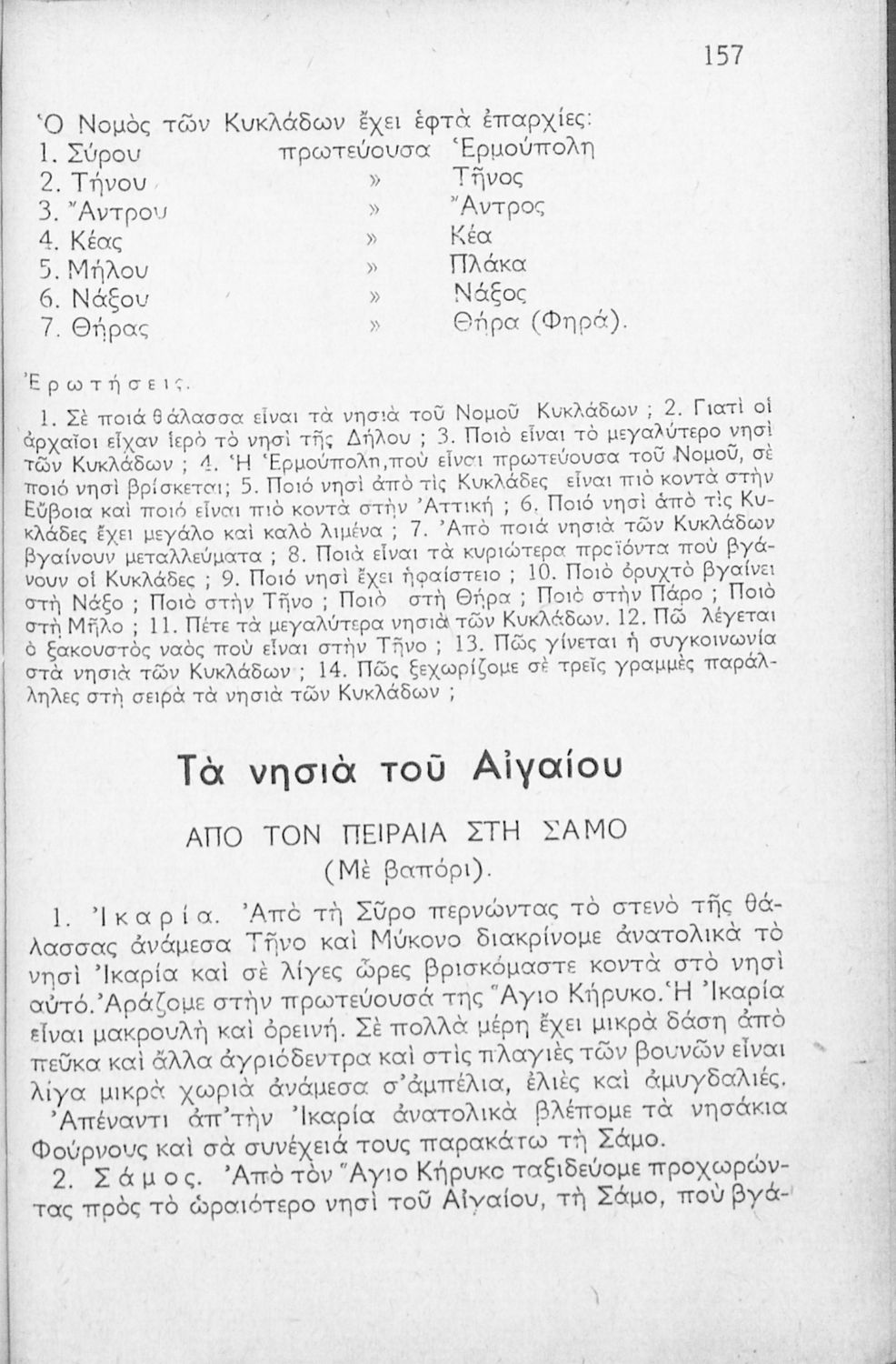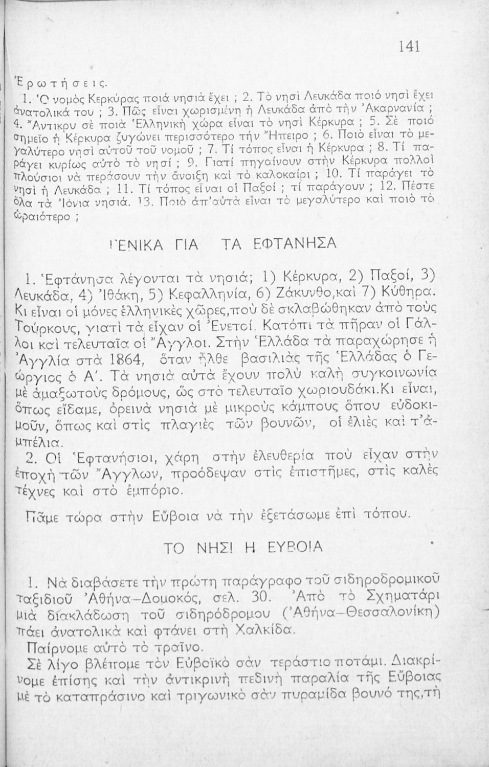 Μαθητικό βοήθημα Γεωγραφίας για τις Γ΄ και Δ΄ Δημοτικού που περιέχει εισαγωγή στη φυσική γεωγραφία και εξετάζει την Ελλάδα ανά διαμέρισμα και νομό από γεωφυσική, οικονομική και πολιτική άποψη.