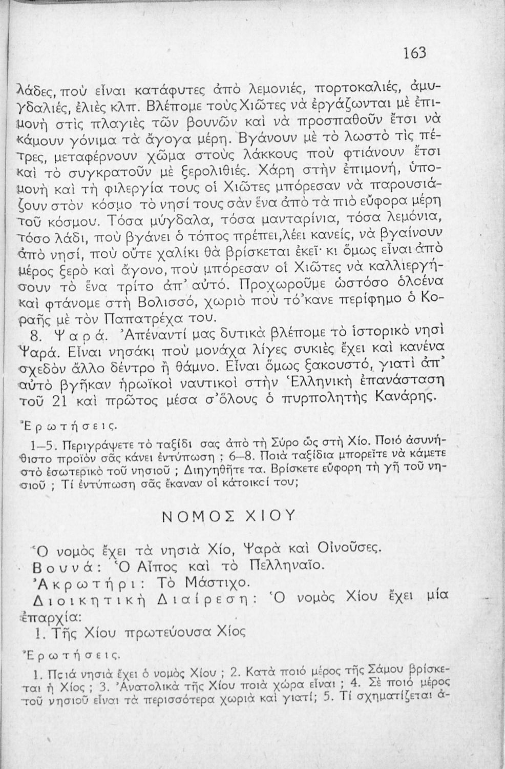 Σχολικό εγχειρίδιο Γεωγραφίας για τη Γ΄, Δ΄ Δημοτικού. Μελετά την Ελλάδα ανά γεωγραφικό νομό με πληροφορίες από το χάρτη της περιοχής και στοιχεία της ιστορίας και της οικονομικής ζωής.