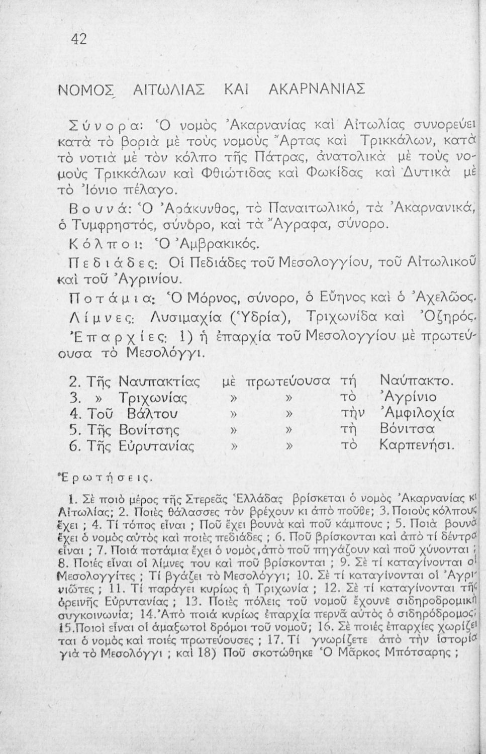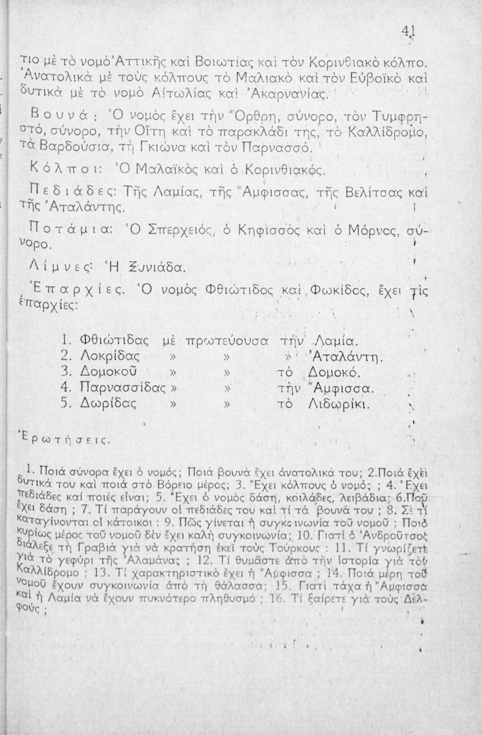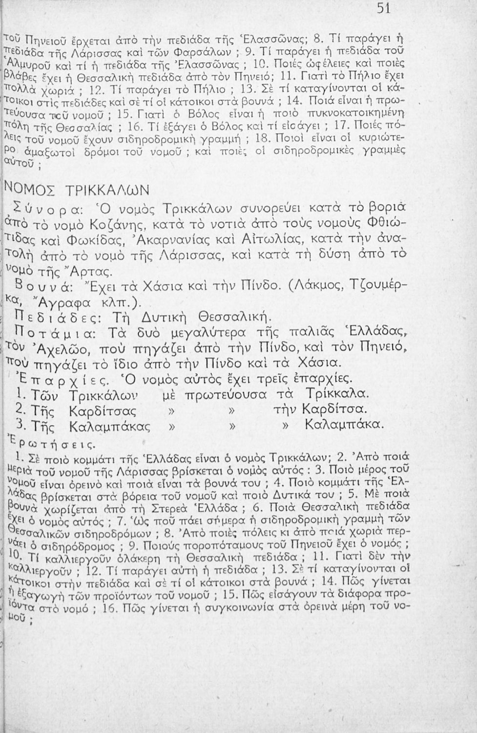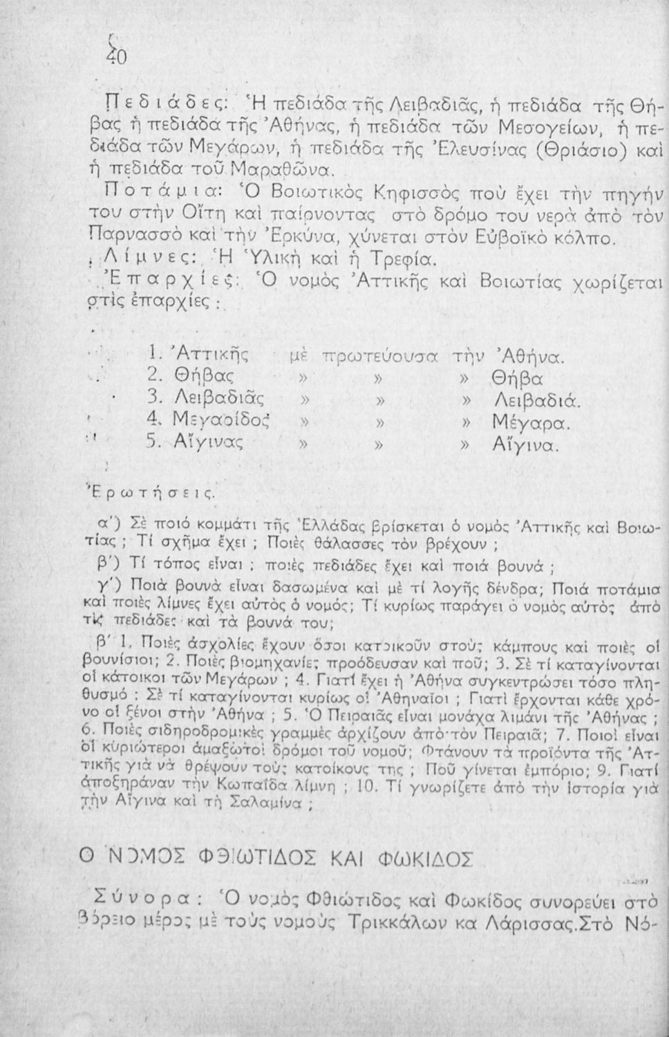 Σχολικό εγχειρίδιο Γεωγραφίας για τη Γ΄, Δ΄ Δημοτικού. Μελετά την Ελλάδα ανά γεωγραφικό νομό με πληροφορίες από το χάρτη της περιοχής και στοιχεία της ιστορίας και της οικονομικής ζωής.