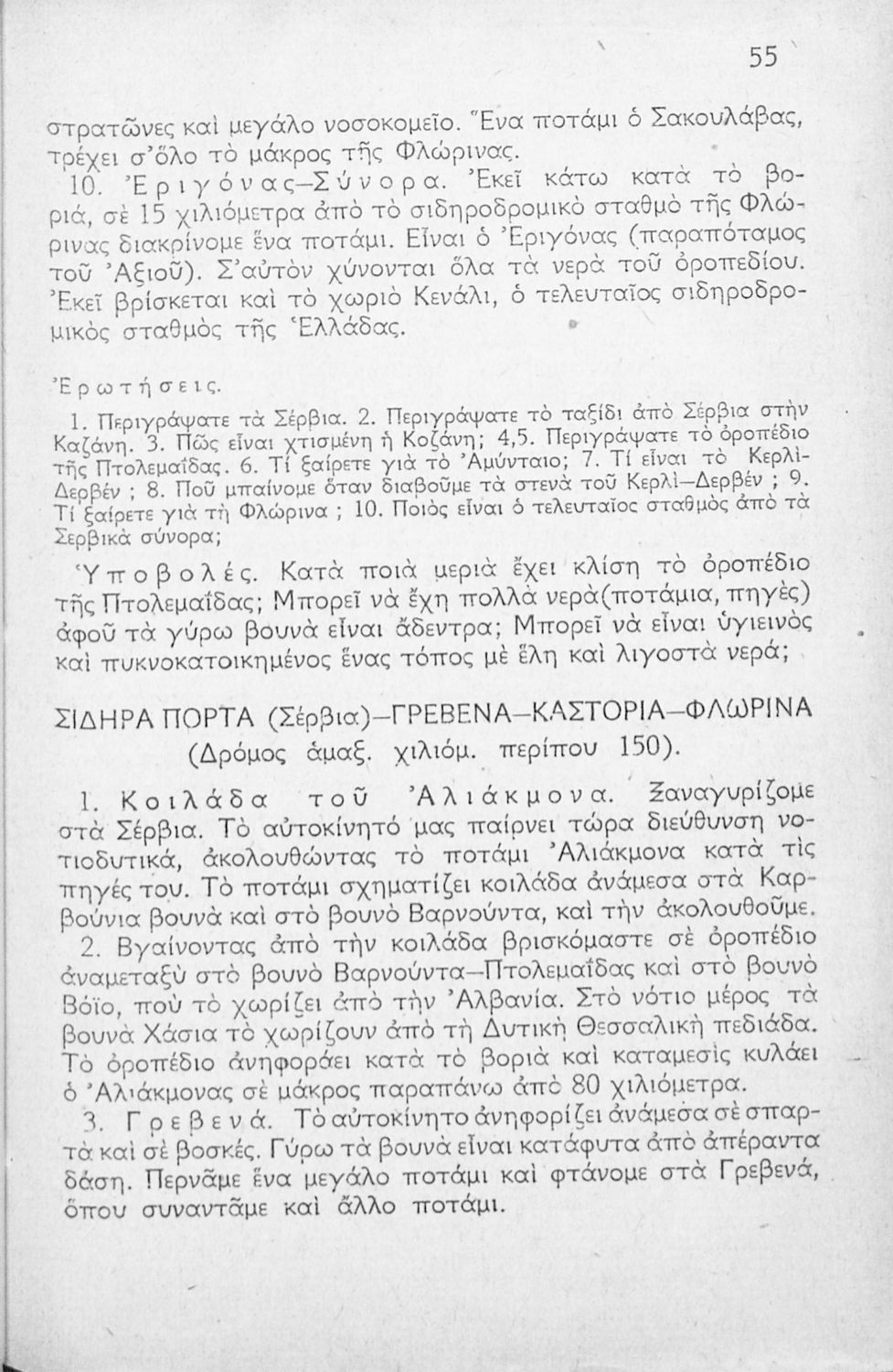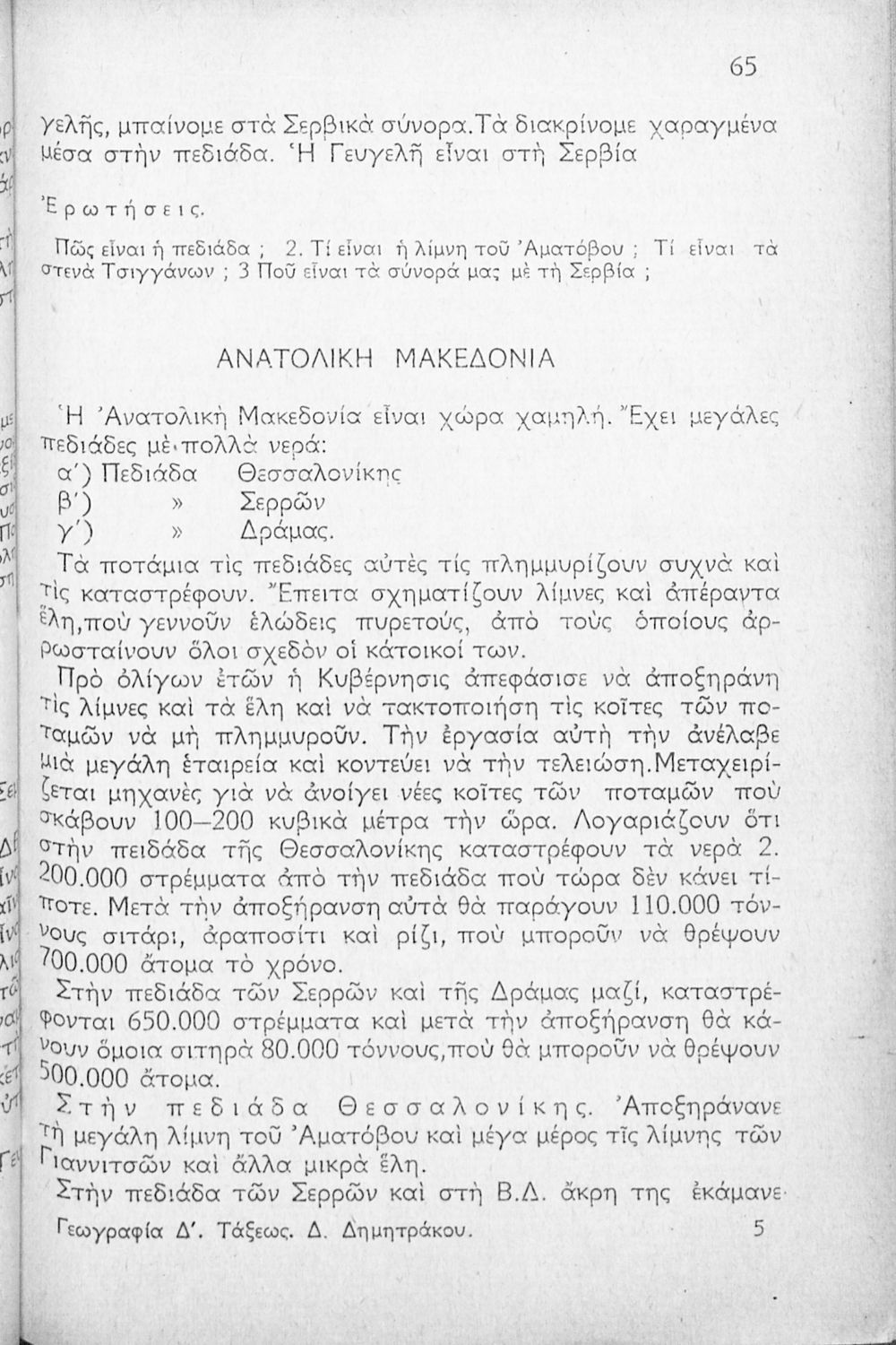 Σχολικό εγχειρίδιο Γεωγραφίας για τη Γ΄, Δ΄ Δημοτικού. Μελετά την Ελλάδα ανά γεωγραφικό νομό με πληροφορίες από το χάρτη της περιοχής και στοιχεία της ιστορίας και της οικονομικής ζωής.