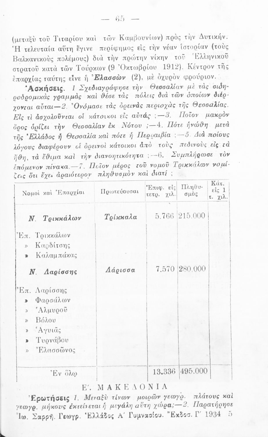 Σχολικό εγχειρίδιο Γεωγραφίας Α' Γυμνασίου που εξετάζει την Ελλάδα ανά διαμέρισμα και νομό από γεωφυσική, οικονομική και πολιτική άποψη.