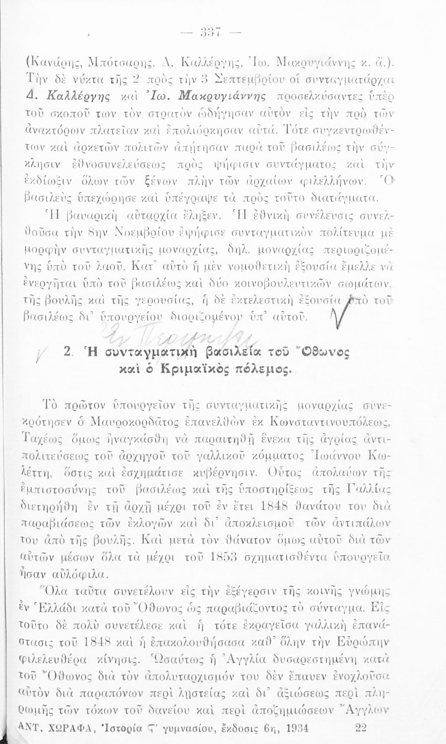 Ιστορία της Νέας Ελλάδος (1453-1924) και η σύγχρονος της όλης Ευρώπης δια την Ε΄ και ΣΤ΄ τάξιν των Γυμνασίων
