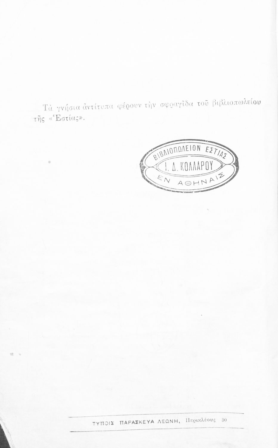 Εντοπισμός πρωτοτύπου: Ελληνικό Λογοτεχνικό και Ιστορικό Αρχείο Κωδικός βιβλιοθήκης: 1934 ΧΩΡ ΙΣΤ |