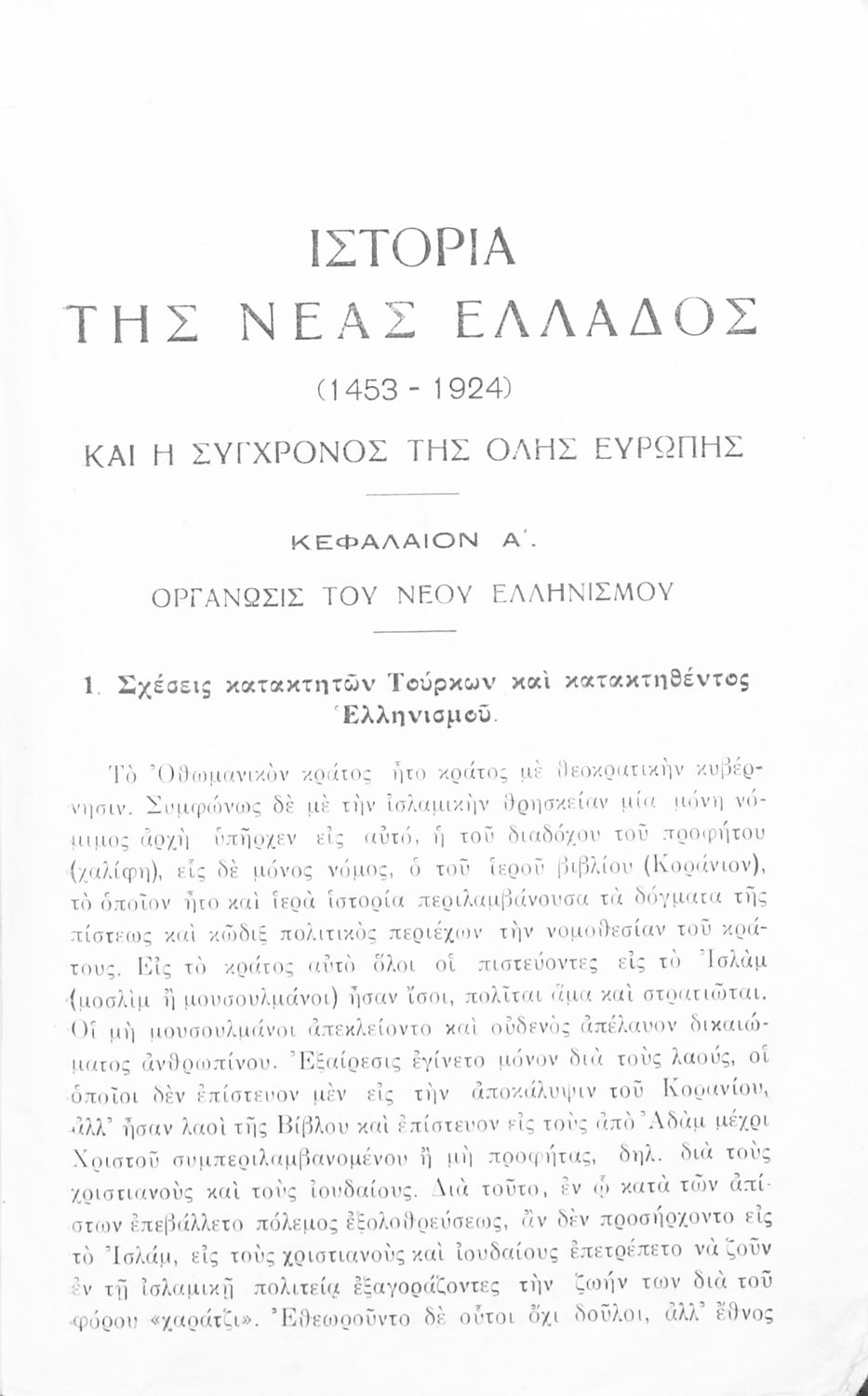 Βαθμίδα εκπαίδευσης: Δευτεροβάθμια Τάξη: Ε' Γυμνασίου / ΣΤ' Γυμνασίου Μάθημα: Ιστορία Γλώσσα: Καθαρεύουσα Παρουσίαση περιεχομένου: Σχολικό εγχειρίδιο Ιστορίας Ε΄ και ΣΤ΄ Γυμνασίου που καλύπτει την περίοδο από την άλωση της Κωνσταντινούπολης ως τον Α΄ Παγκόσμιο Πόλεμο |