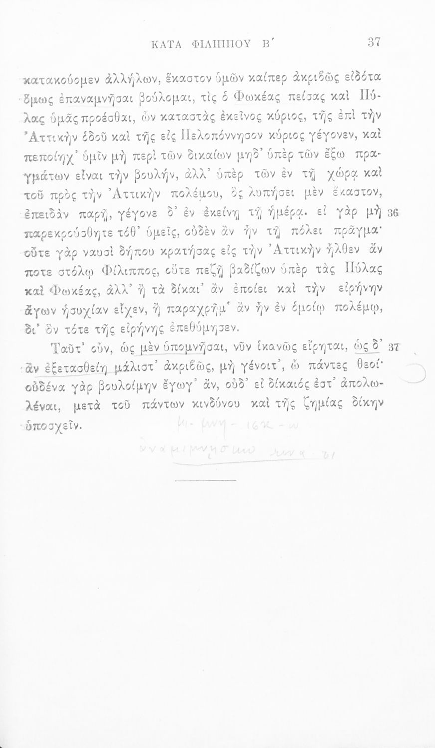 520 ## _aΣχολικό εγχειρίδιο Αρχαίων Ελληνικών Δ΄ Γυμνασίου που περιέχει τους Λόγους του Δημοσθένη Φιλιππικός Α΄ και Β' και γλωσσικές και ερμηνευτικές σημειώσεις.