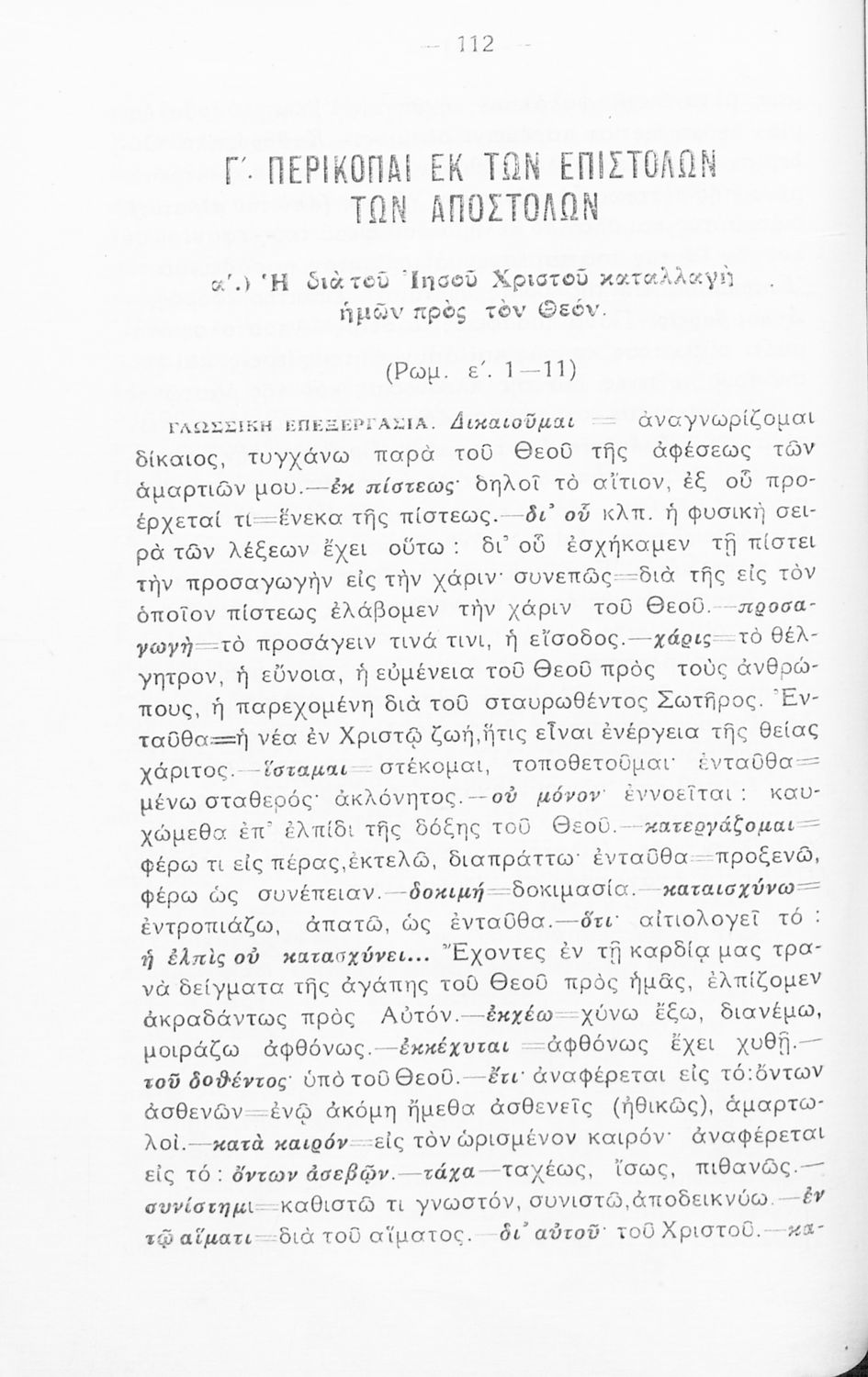 Σχολικό εγχειρίδιο Θρησκευτικών για την Γ΄ Γυμνασίου, τα Διδασκαλεία και τα Ανώτερα Παρθεναγωγεία που περιέχει περικοπές από τα βιβλία της Καινής Διαθήκης και ερμηνευτικές σημειώσεις.
