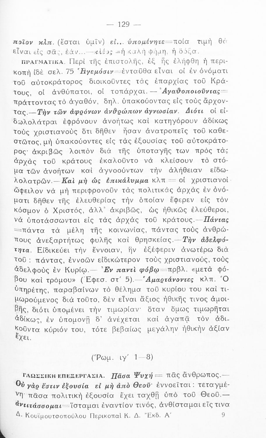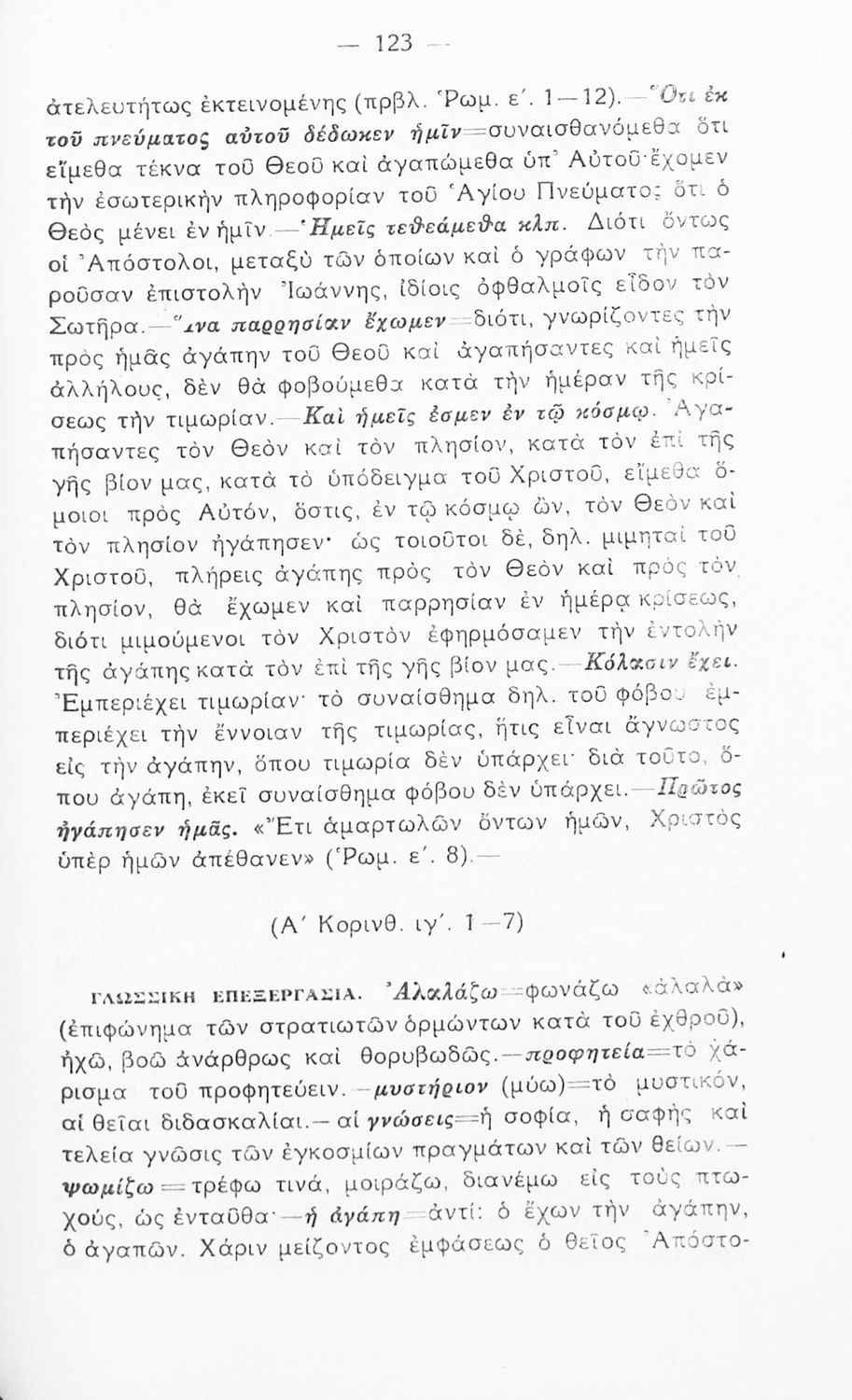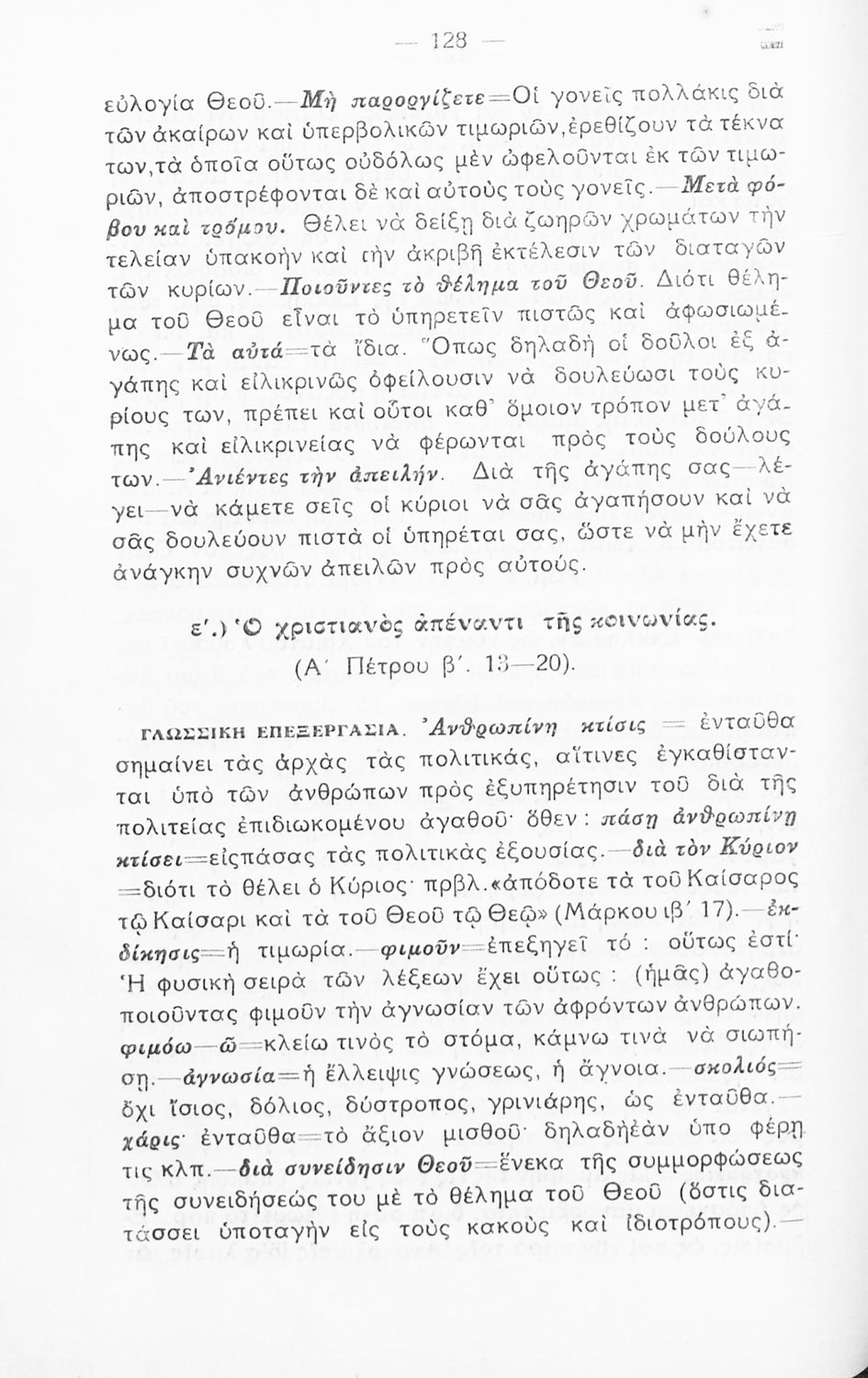 Σχολικό εγχειρίδιο Θρησκευτικών για την Γ΄ Γυμνασίου, τα Διδασκαλεία και τα Ανώτερα Παρθεναγωγεία που περιέχει περικοπές από τα βιβλία της Καινής Διαθήκης και ερμηνευτικές σημειώσεις.