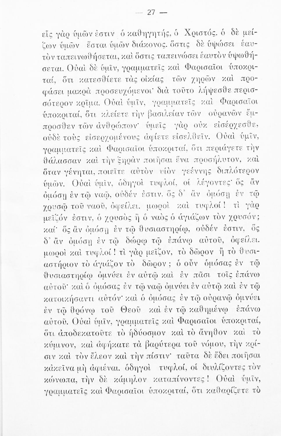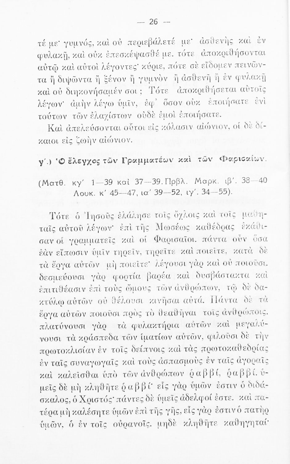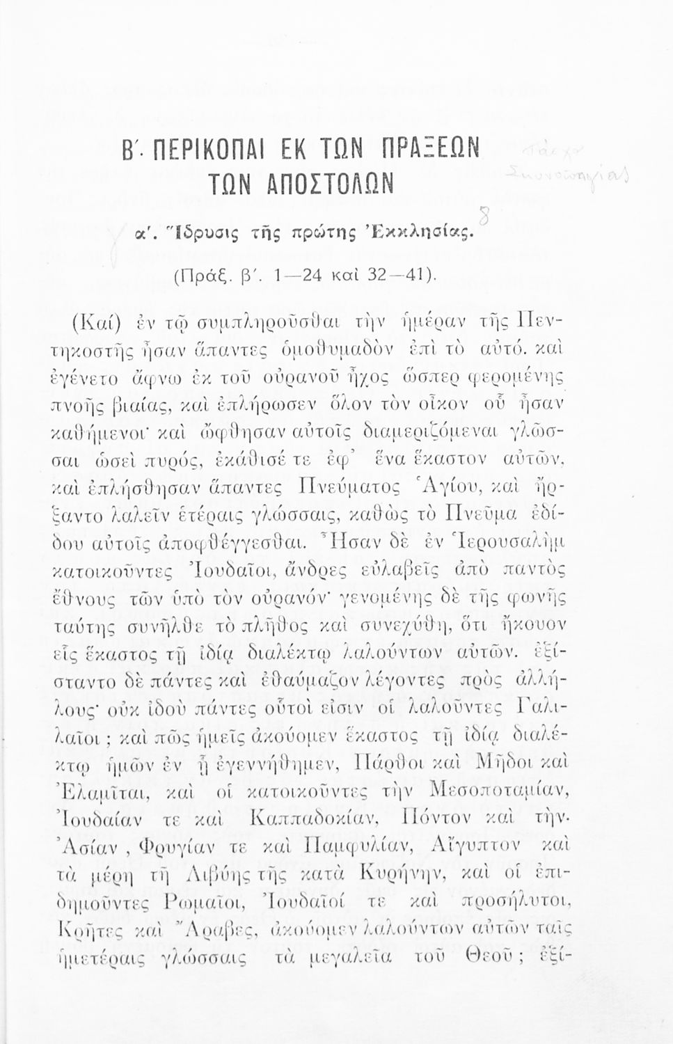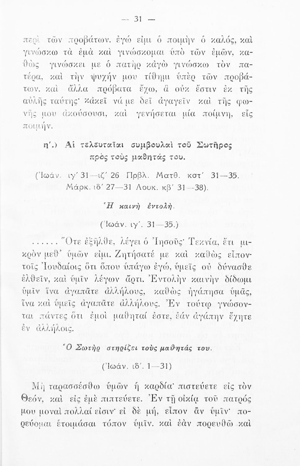 Σχολικό εγχειρίδιο Θρησκευτικών για την Γ΄ Γυμνασίου, τα Διδασκαλεία και τα Ανώτερα Παρθεναγωγεία που περιέχει περικοπές από τα βιβλία της Καινής Διαθήκης και ερμηνευτικές σημειώσεις.