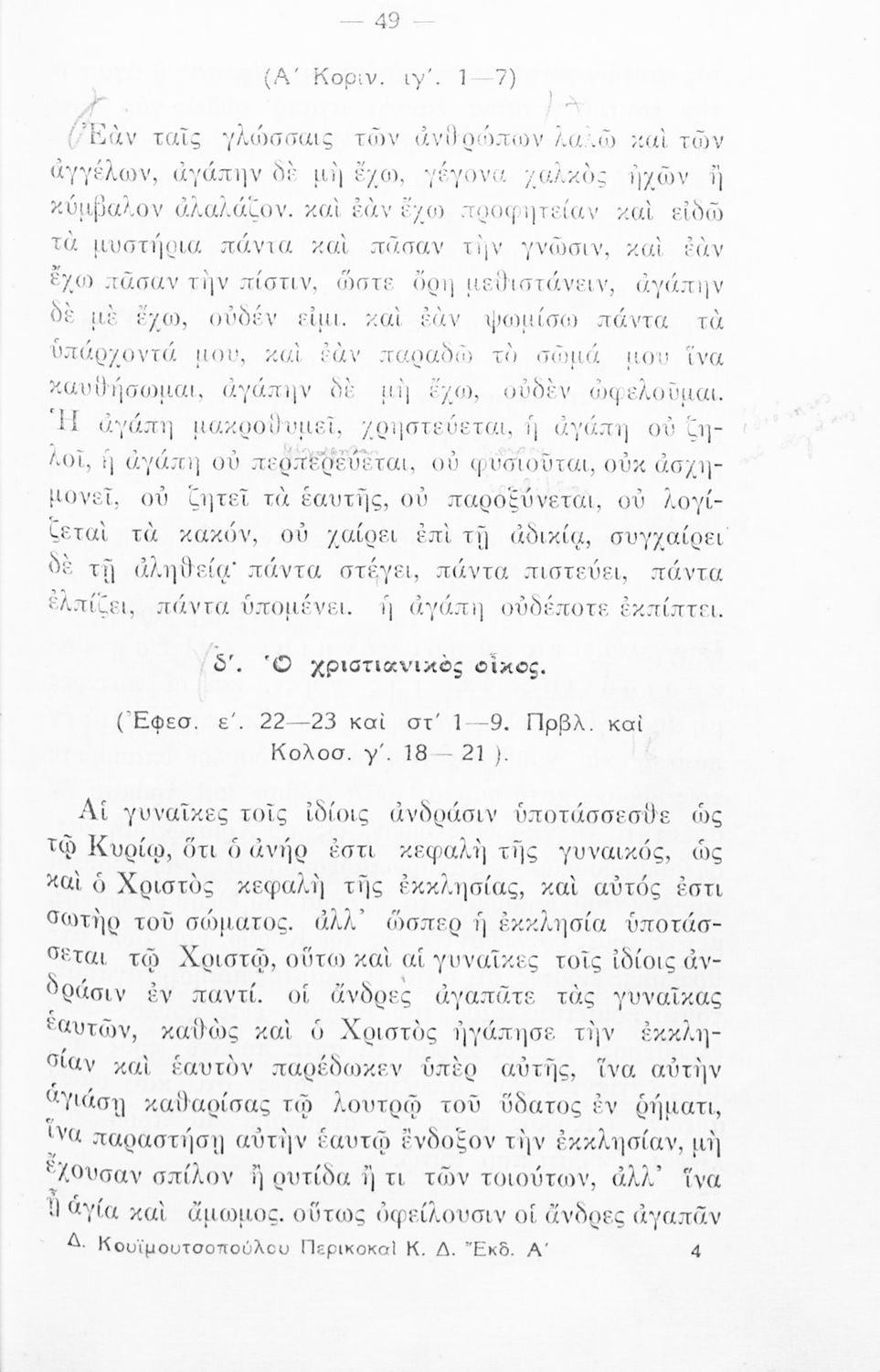 Κωδικός αναγνώρισης: 02-01441 Τίτλος: Περικοπαί εκ της Καινής Διαθήκης εγκεκριμέναι δια τους μαθητάς της Δ΄ τάξεως των Γυμνασίων και Παρθεναγωγείων Συγγραφέας: Δημήτριος Ι. Κουϊμουτσόπουλος Μέγεθος και υπόστρωμα: Σχολικό εγχειρίδιο, μαλακό εξώφυλλο, 168 σελίδες. Εικόνες (ασπρόμαυρες), σκίτσα (ασπρόμαυρα), χάρτες (ασπρόμαυροι). |