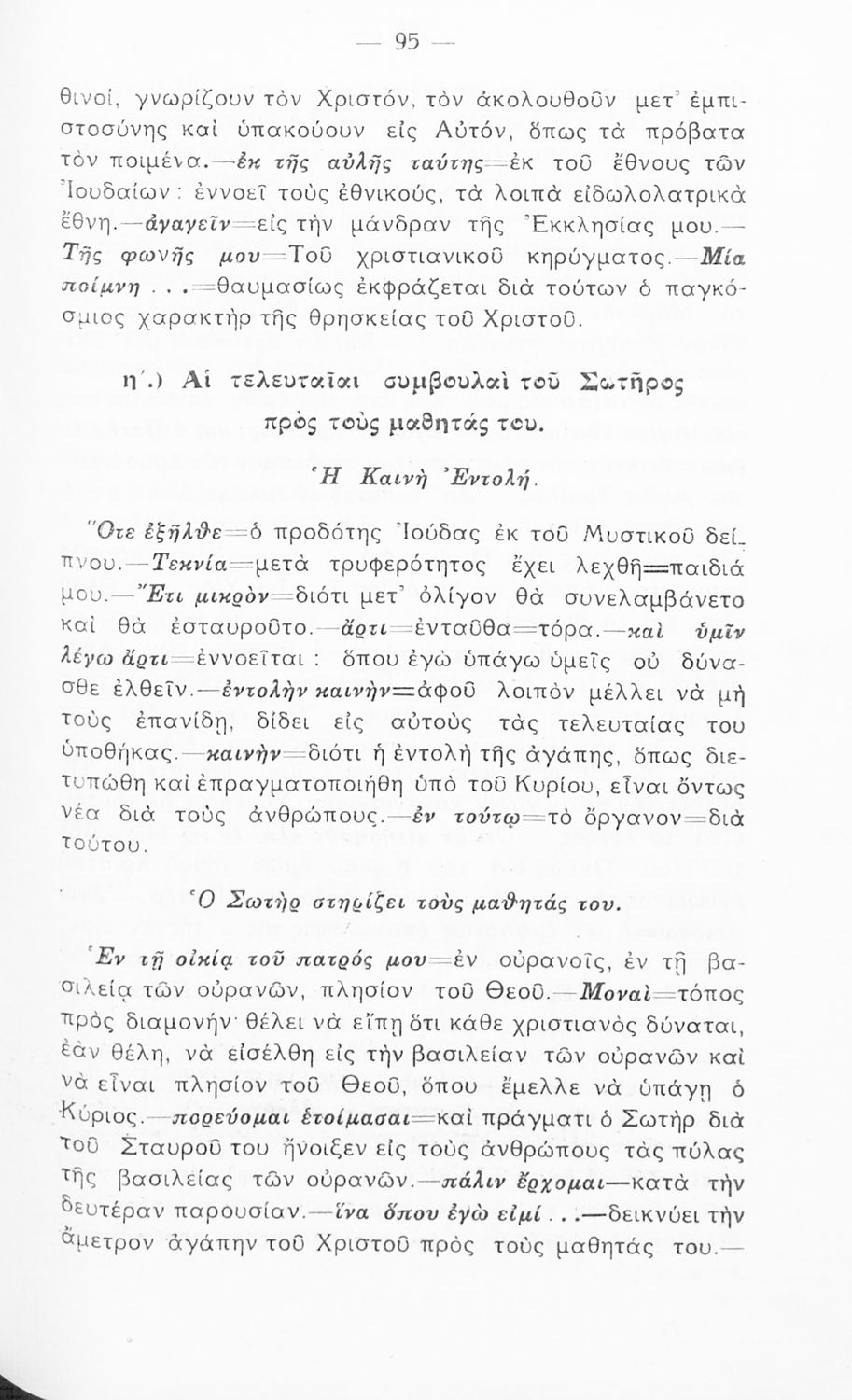 Βαθμίδα εκπαίδευσης: Δευτεροβάθμια Τάξη: Δ' Γυμνασίου Μάθημα: Θρησκευτικά Γλώσσα: Καθαρεύουσα Παρουσίαση περιεχομένου: Σχολικό εγχειρίδιο Θρησκευτικών Δ΄ Γυμνασίου που περιλαμβάνει περικοπές από τα Ευαγγέλια, τις πράξεις και τις επιστολές των Αποστόλων, εισαγωγή στην Καινή Διαθήκη και ερμηνευτικές σημειώσεις. |