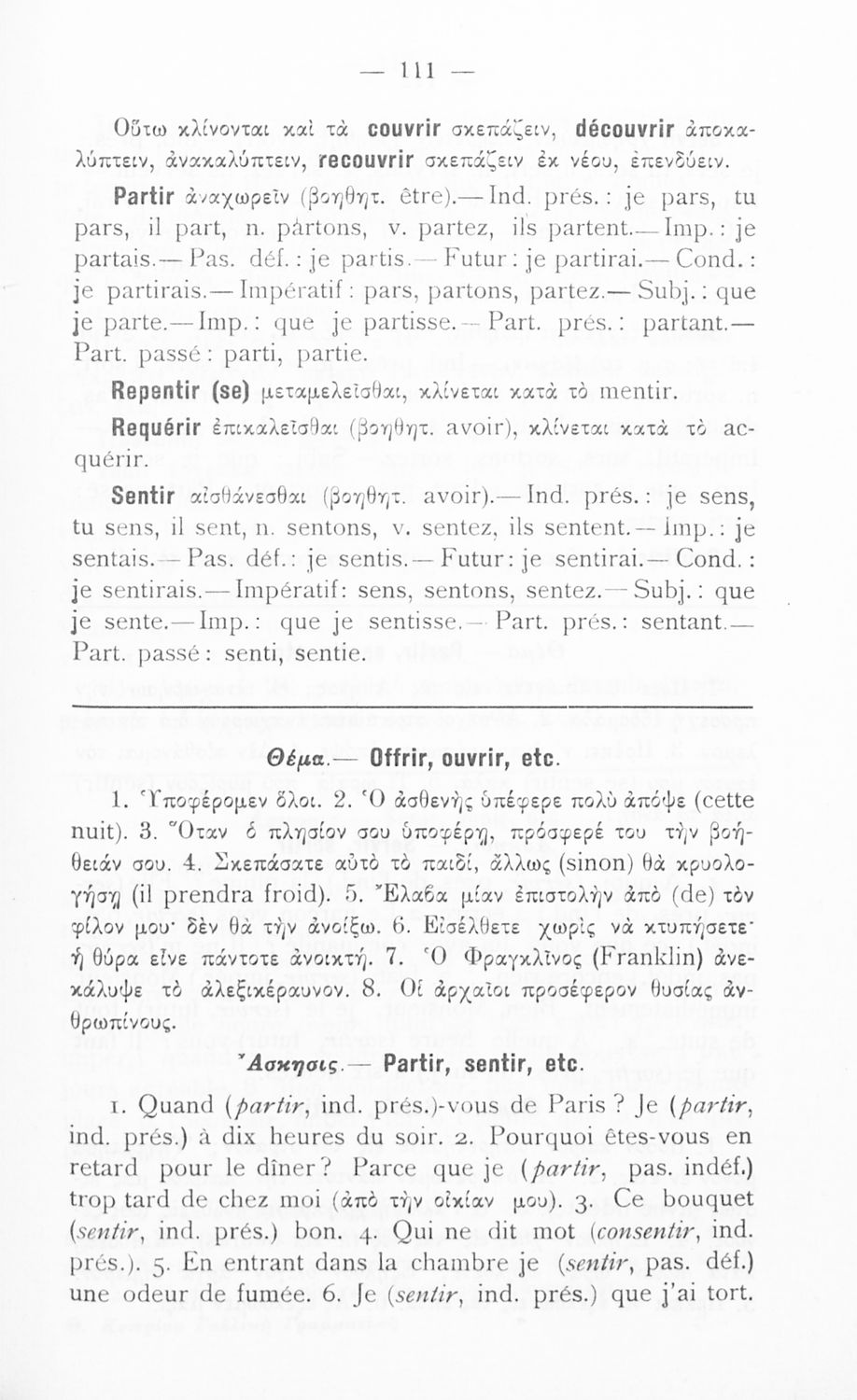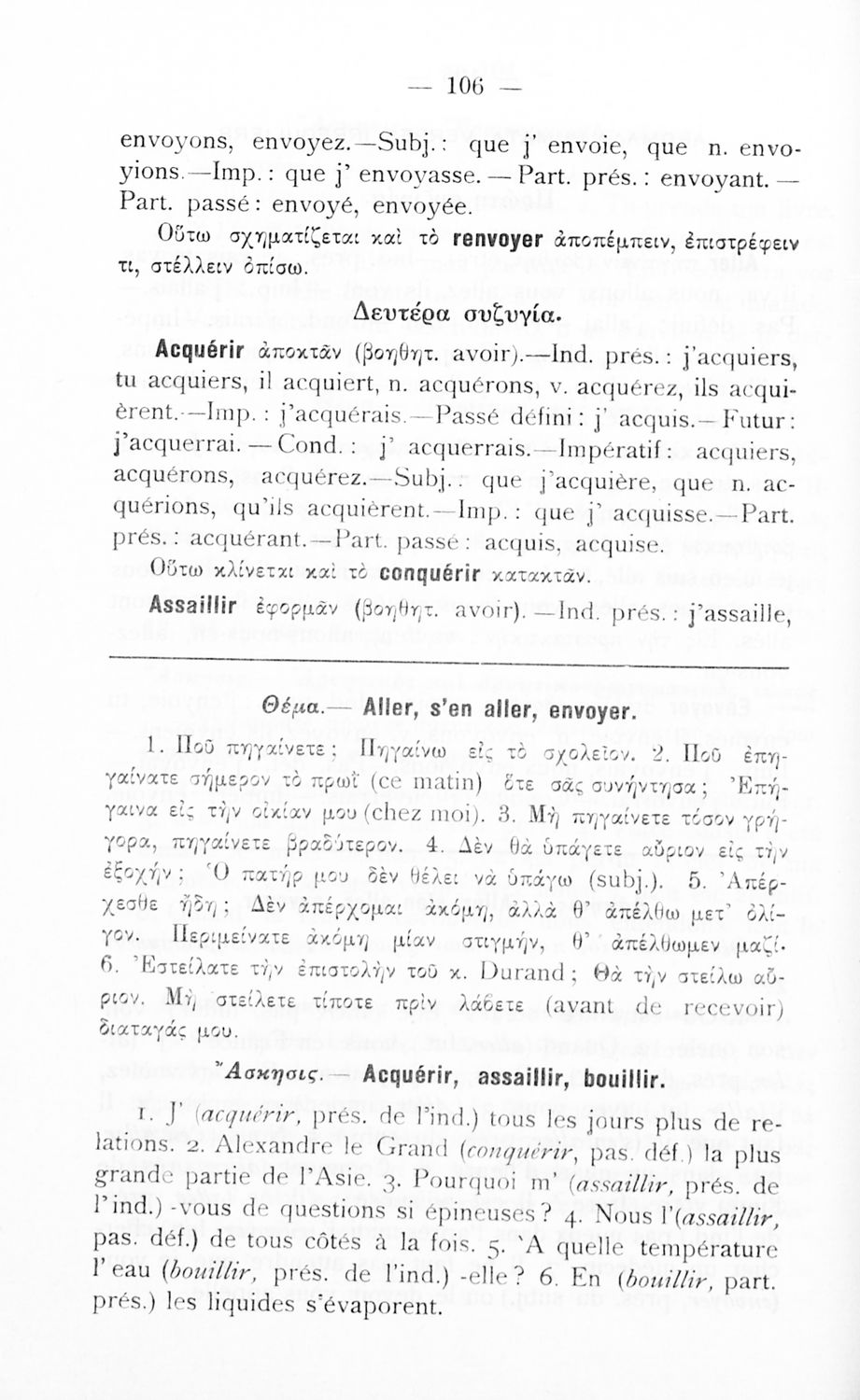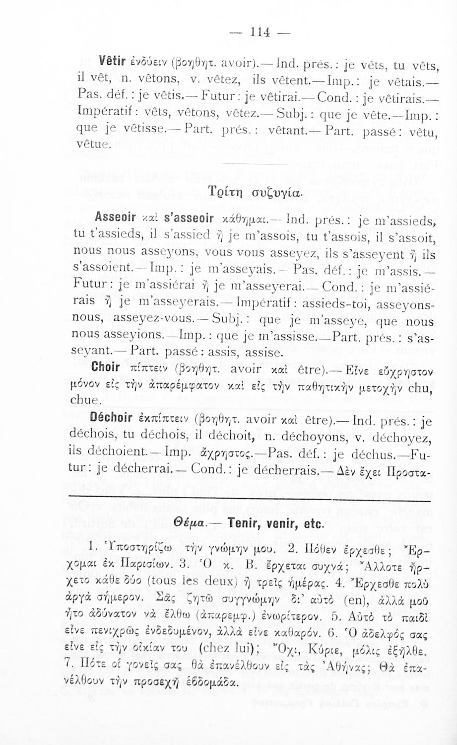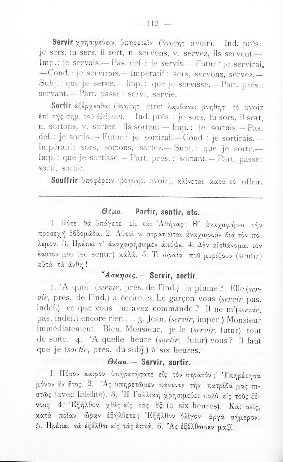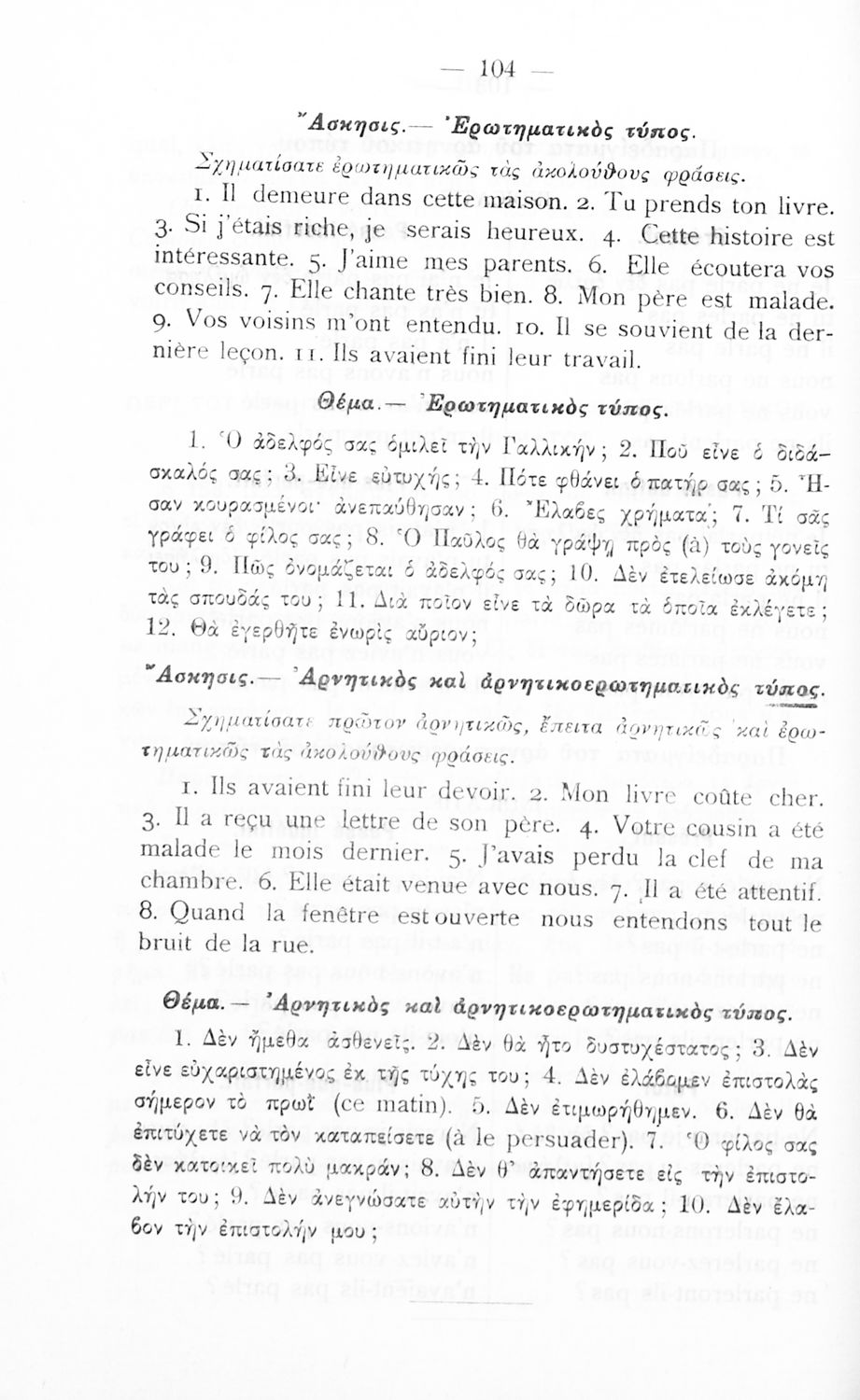 Γραμματική της Γαλλικής γλώσσας για τα Τετρατάξια Γυμνάσια, τη Γ΄ τάξη των Αστικών Σχολείων των Θηλέων και τα Διδασκαλεία της Δημοτικής Εκπαίδευσης που περιλαμβάνει θεωρία, ασκήσεις και λεξιλόγιο.