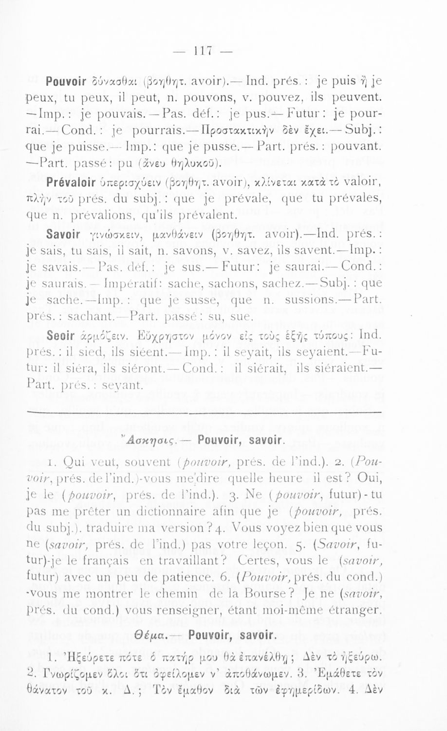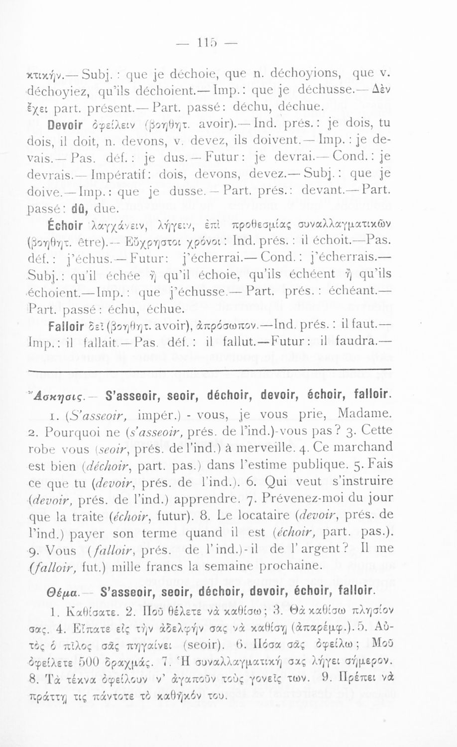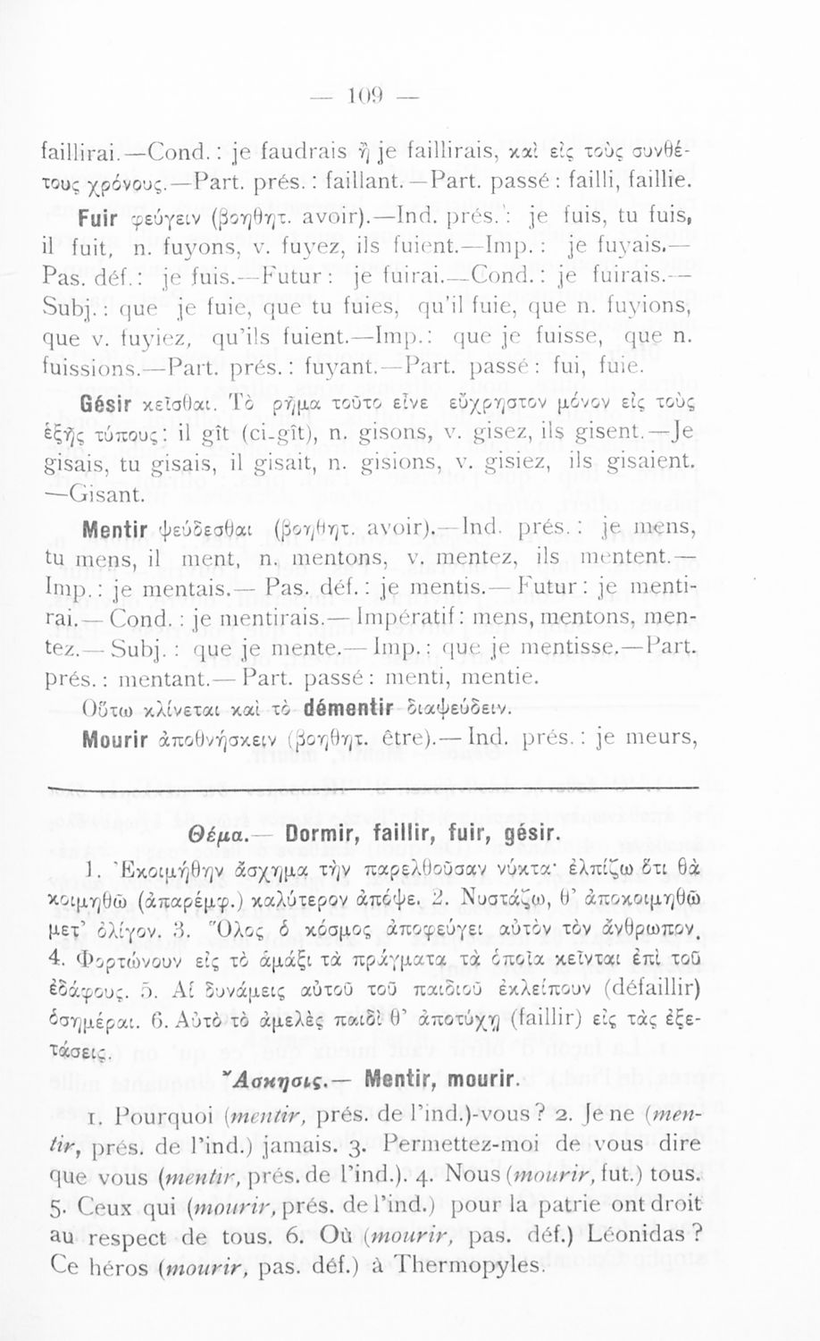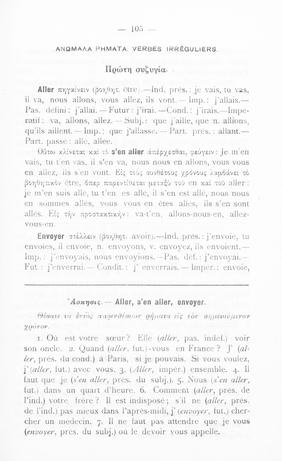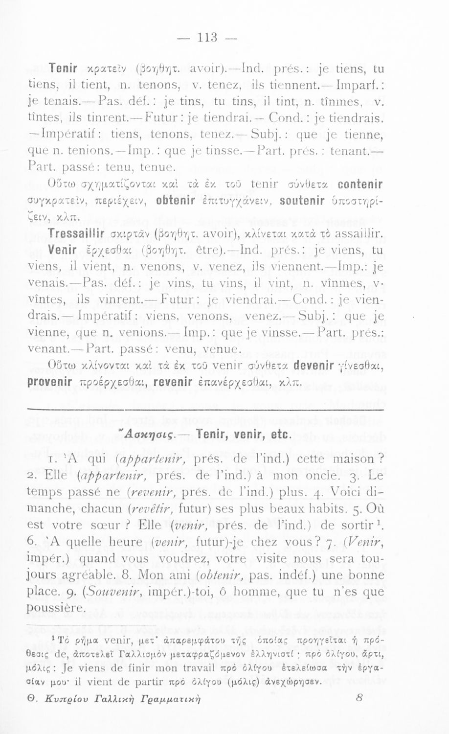 Γραμματική της Γαλλικής γλώσσας για τα Τετρατάξια Γυμνάσια, τη Γ΄ τάξη των Αστικών Σχολείων των Θηλέων και τα Διδασκαλεία της Δημοτικής Εκπαίδευσης που περιλαμβάνει θεωρία, ασκήσεις και λεξιλόγιο.