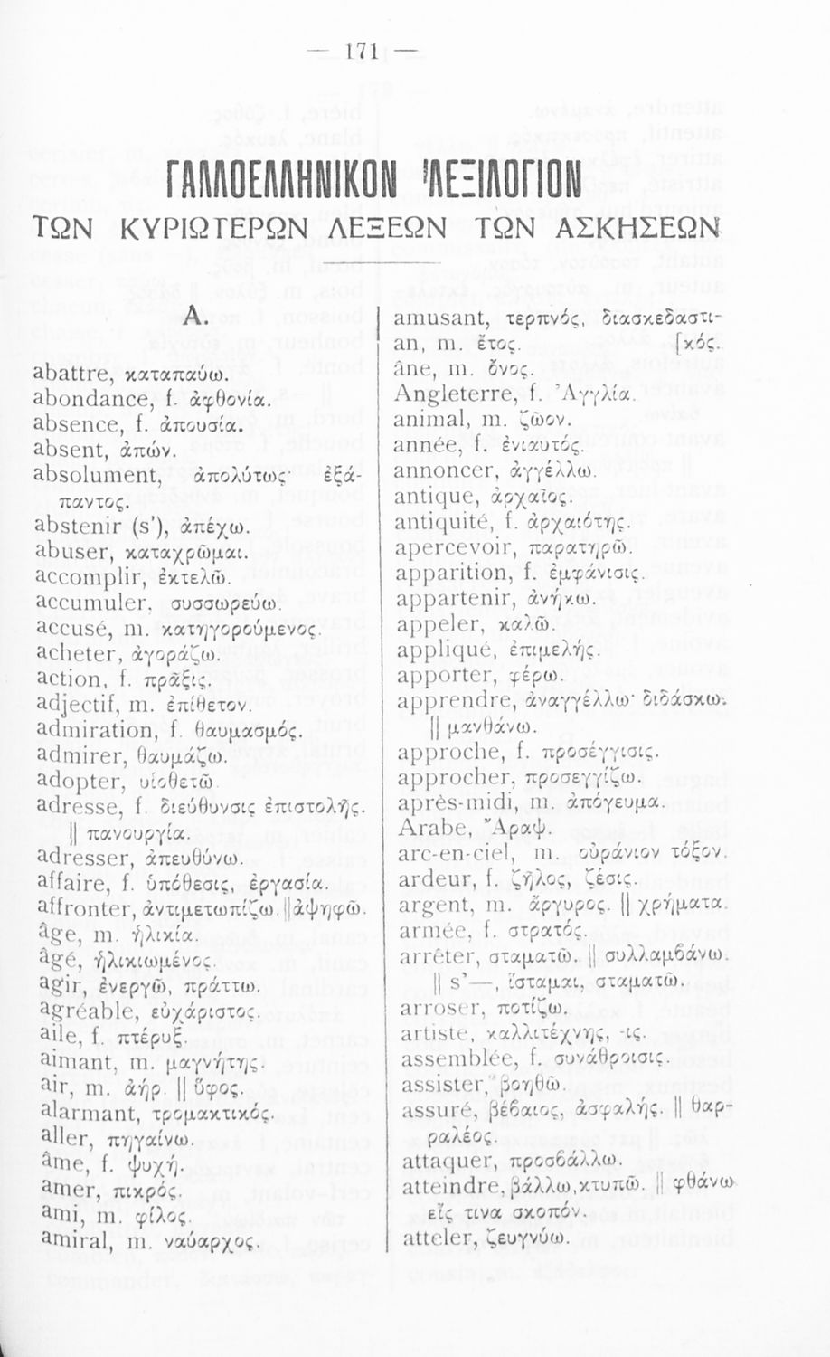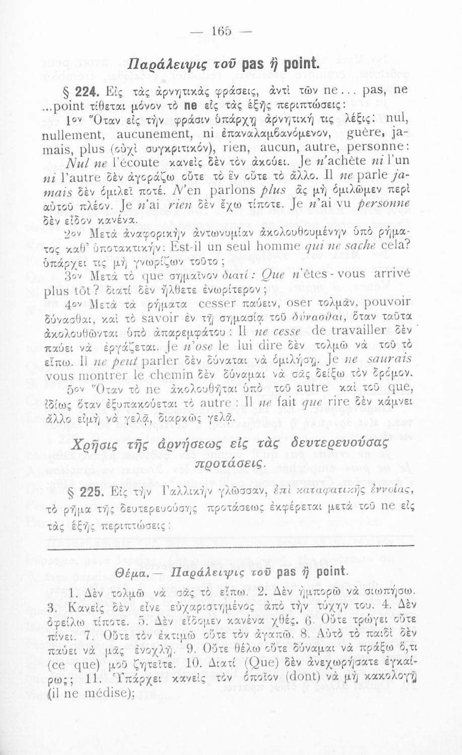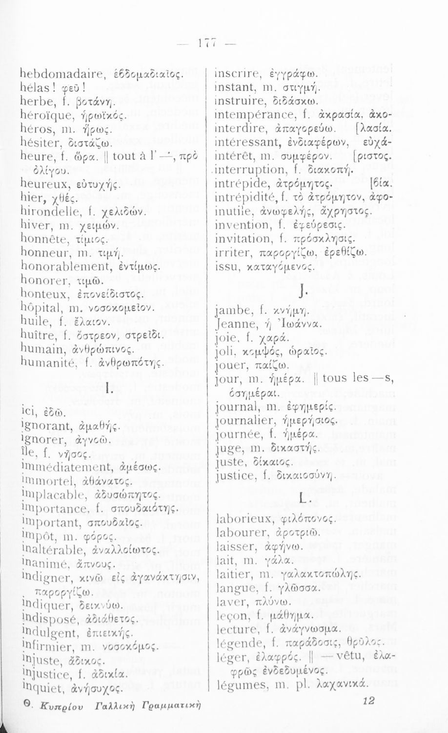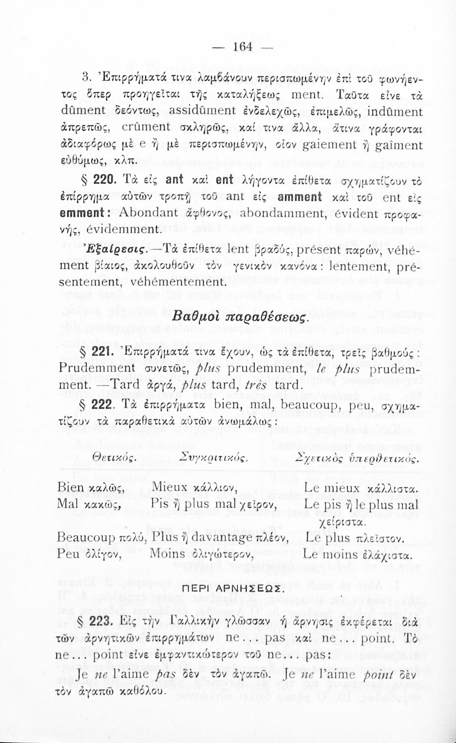 Γραμματική της Γαλλικής γλώσσας για τα Τετρατάξια Γυμνάσια, τη Γ΄ τάξη των Αστικών Σχολείων των Θηλέων και τα Διδασκαλεία της Δημοτικής Εκπαίδευσης που περιλαμβάνει θεωρία, ασκήσεις και λεξιλόγιο.