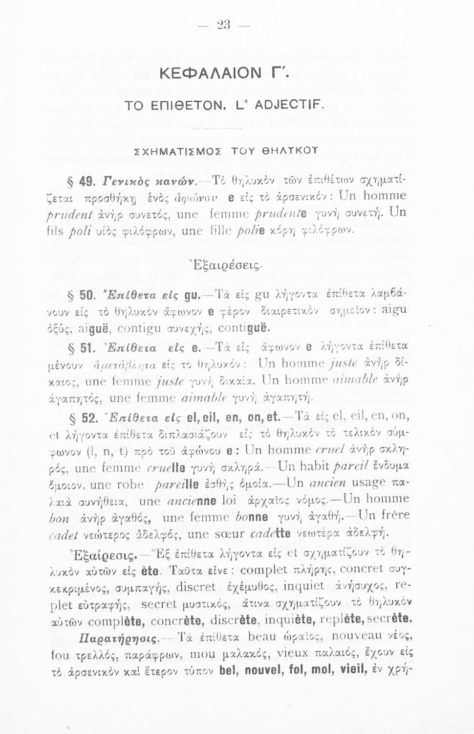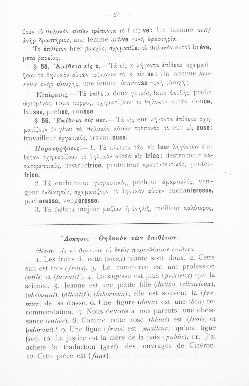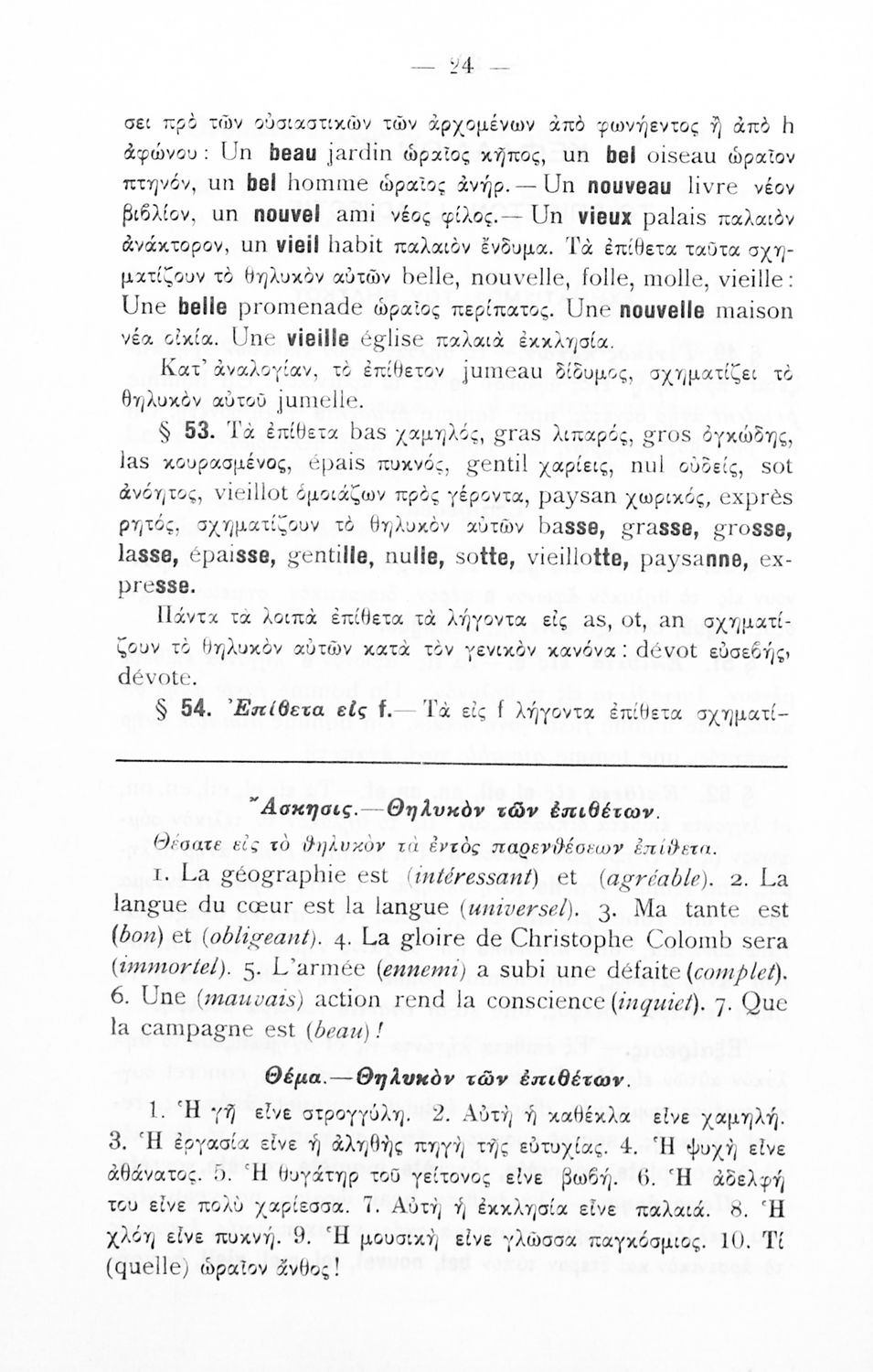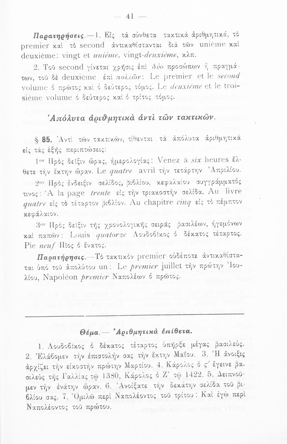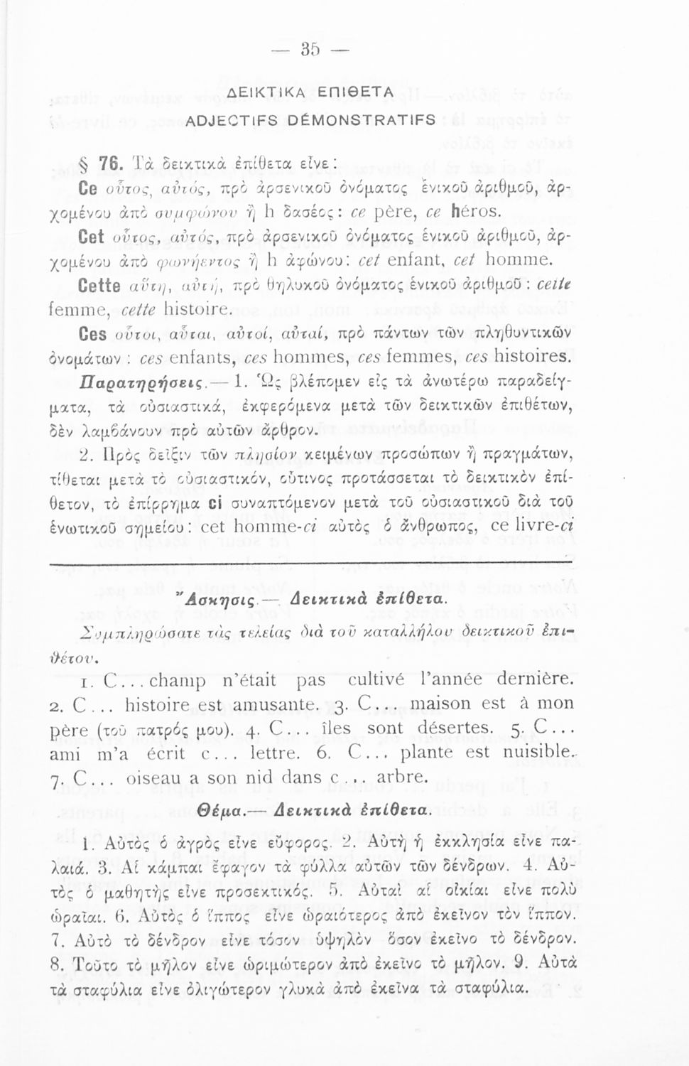 Γραμματική της Γαλλικής γλώσσας για τα Τετρατάξια Γυμνάσια, τη Γ΄ τάξη των Αστικών Σχολείων των Θηλέων και τα Διδασκαλεία της Δημοτικής Εκπαίδευσης που περιλαμβάνει θεωρία, ασκήσεις και λεξιλόγιο.
