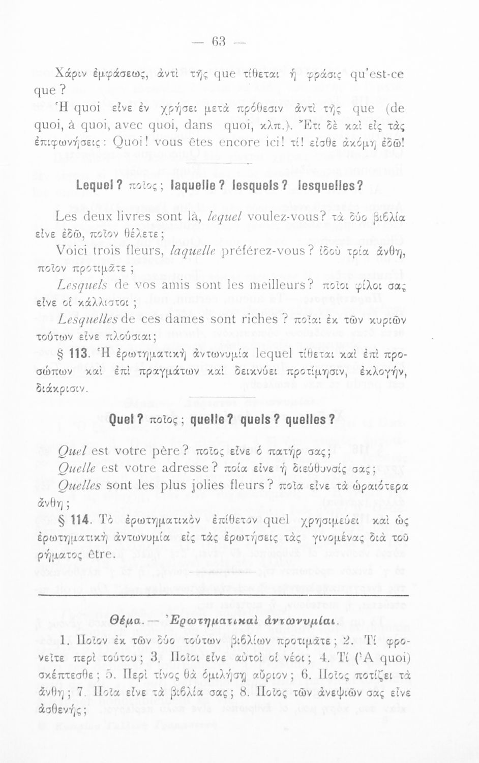 Κωδικός αναγνώρισης: 02-01443 Τίτλος: Γραμματική της γαλλικής γλώσσης προς χρήσιν πασών των τάξεων των Εξαταξίων Γυμνασίων και των αντιστοίχων τάξεων των λοιπών Σχολείων της Μ. Εκπαιδεύσεως Συγγραφέας: Θεόδωρος Γ. Κύπριος Μέγεθος και υπόστρωμα: Μαθητικό βοήθημα, μαλακό εξώφυλλο, 204 σελίδες. |