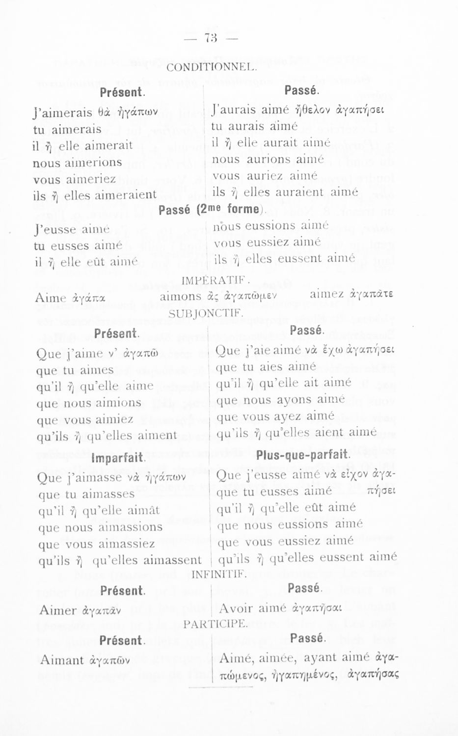Βαθμίδα εκπαίδευσης: Δευτεροβάθμια Τάξη: Γυμνάσιο Μάθημα: Γαλλικά Γλώσσα: Καθαρεύουσα Παρουσίαση περιεχομένου: Σχολικό εγχειρίδιο Γαλλικών Γυμνασίου που περιέχει τους βασικούς κανόνες γραμματικής και συντακτικού, κείμενα για τη διδασκαλία τους, λεξιλόγιο και ασκήσεις. |