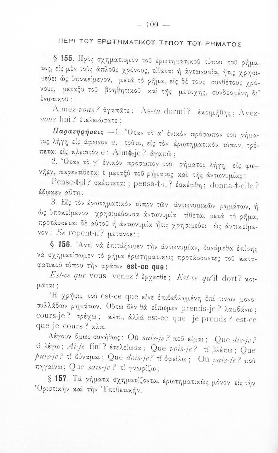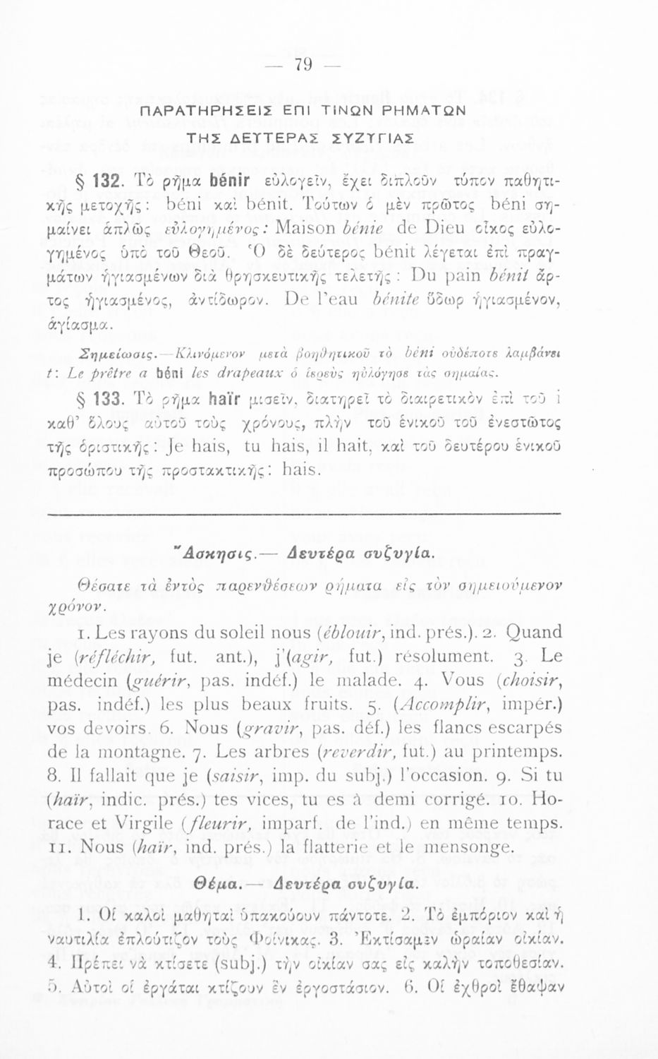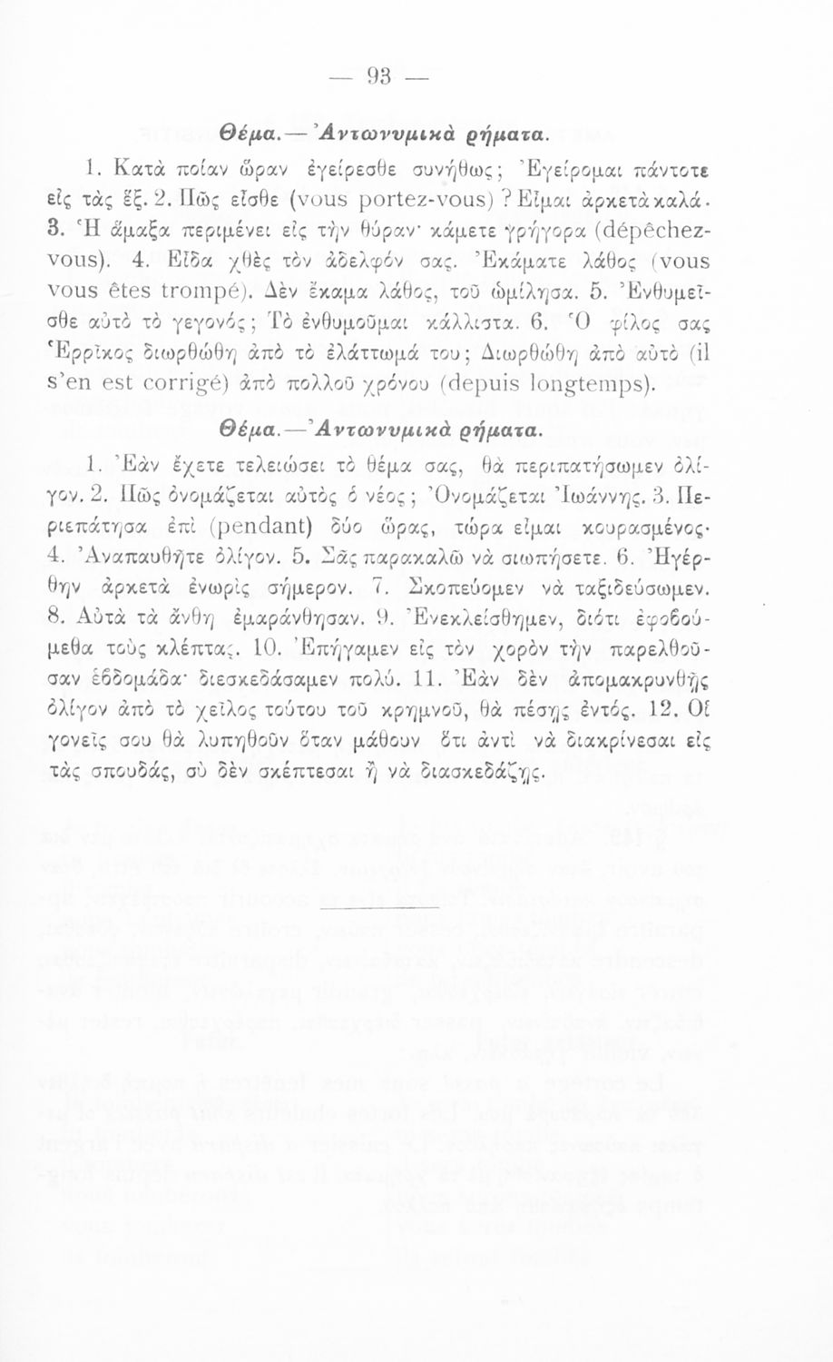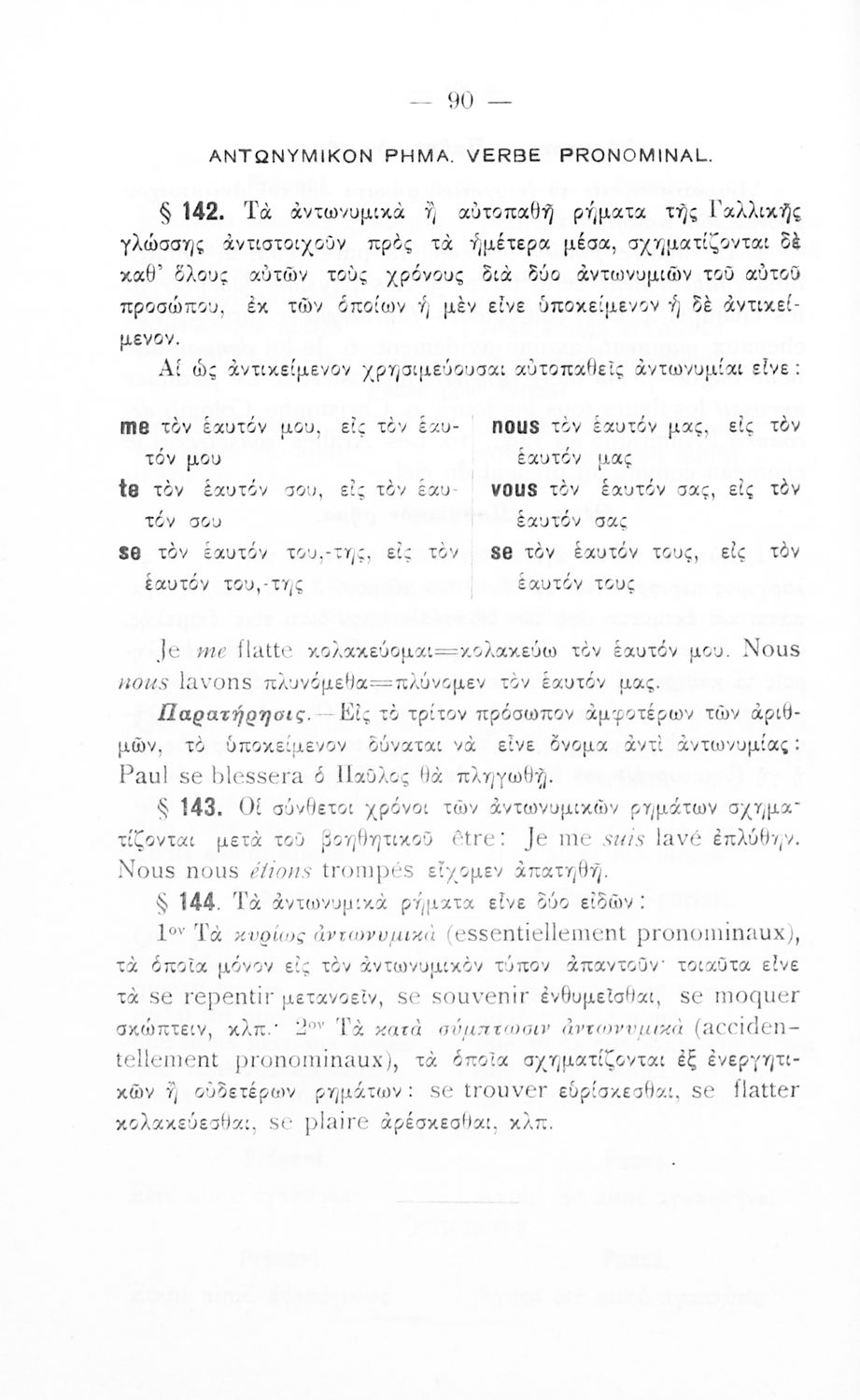 Γραμματική της Γαλλικής γλώσσας για τα Τετρατάξια Γυμνάσια, τη Γ΄ τάξη των Αστικών Σχολείων των Θηλέων και τα Διδασκαλεία της Δημοτικής Εκπαίδευσης που περιλαμβάνει θεωρία, ασκήσεις και λεξιλόγιο.