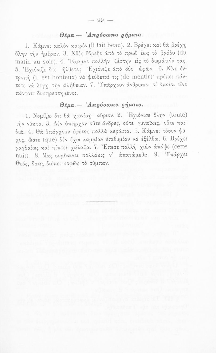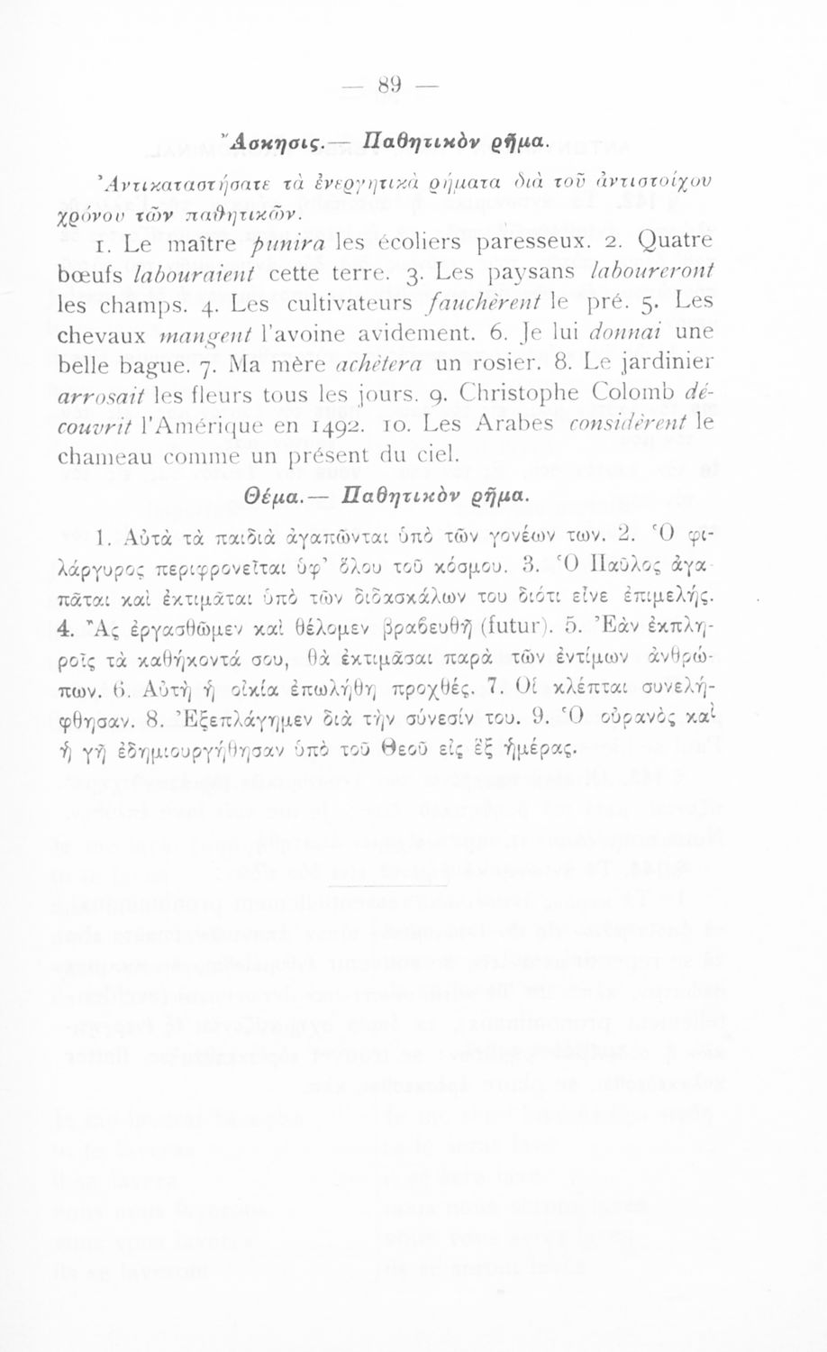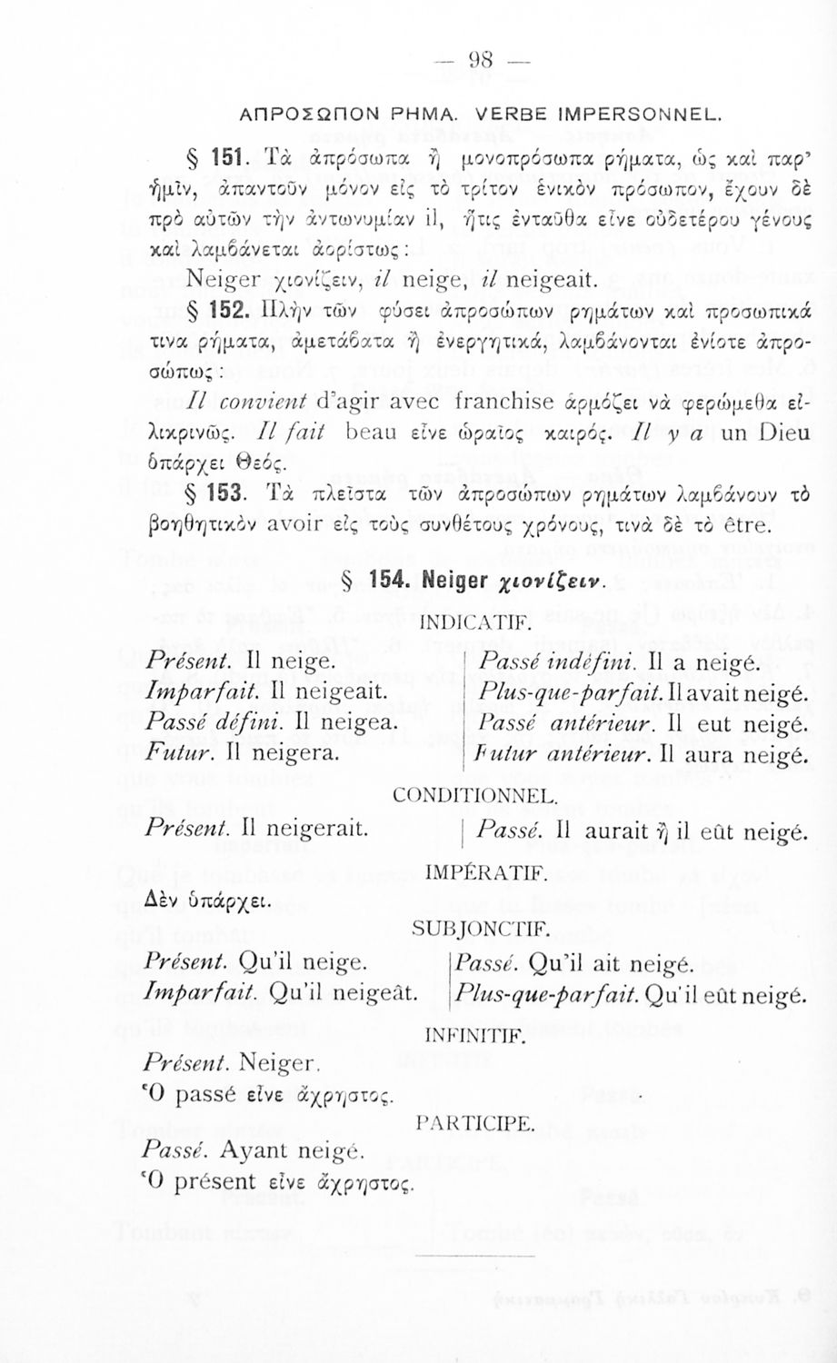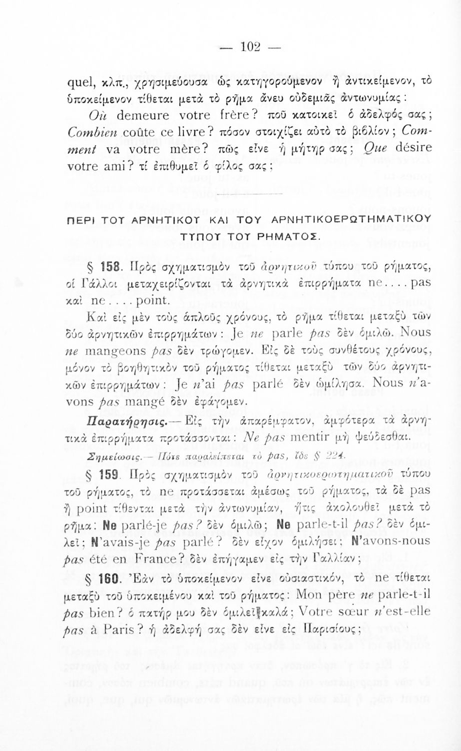 Γραμματική της Γαλλικής γλώσσας για τα Τετρατάξια Γυμνάσια, τη Γ΄ τάξη των Αστικών Σχολείων των Θηλέων και τα Διδασκαλεία της Δημοτικής Εκπαίδευσης που περιλαμβάνει θεωρία, ασκήσεις και λεξιλόγιο.