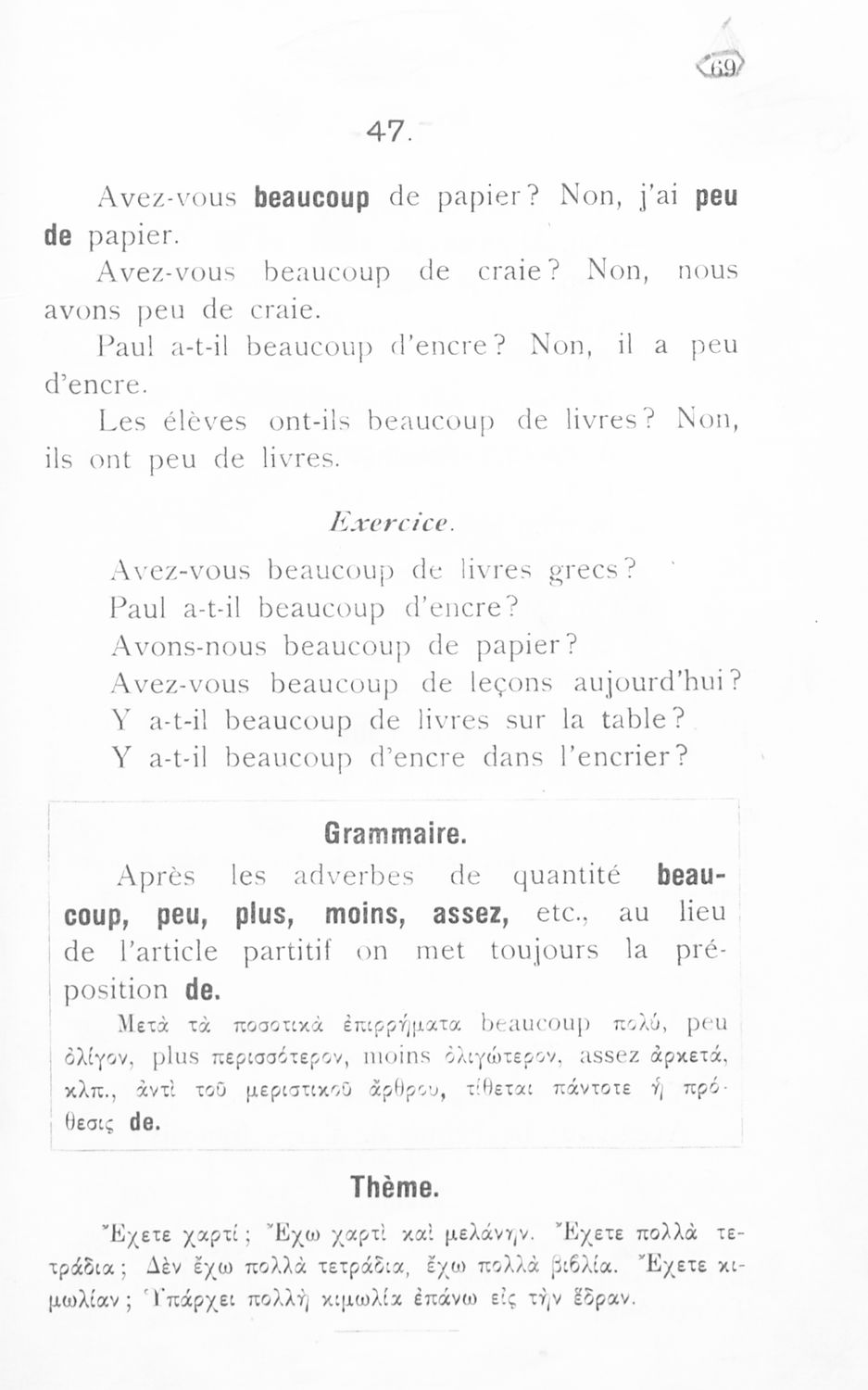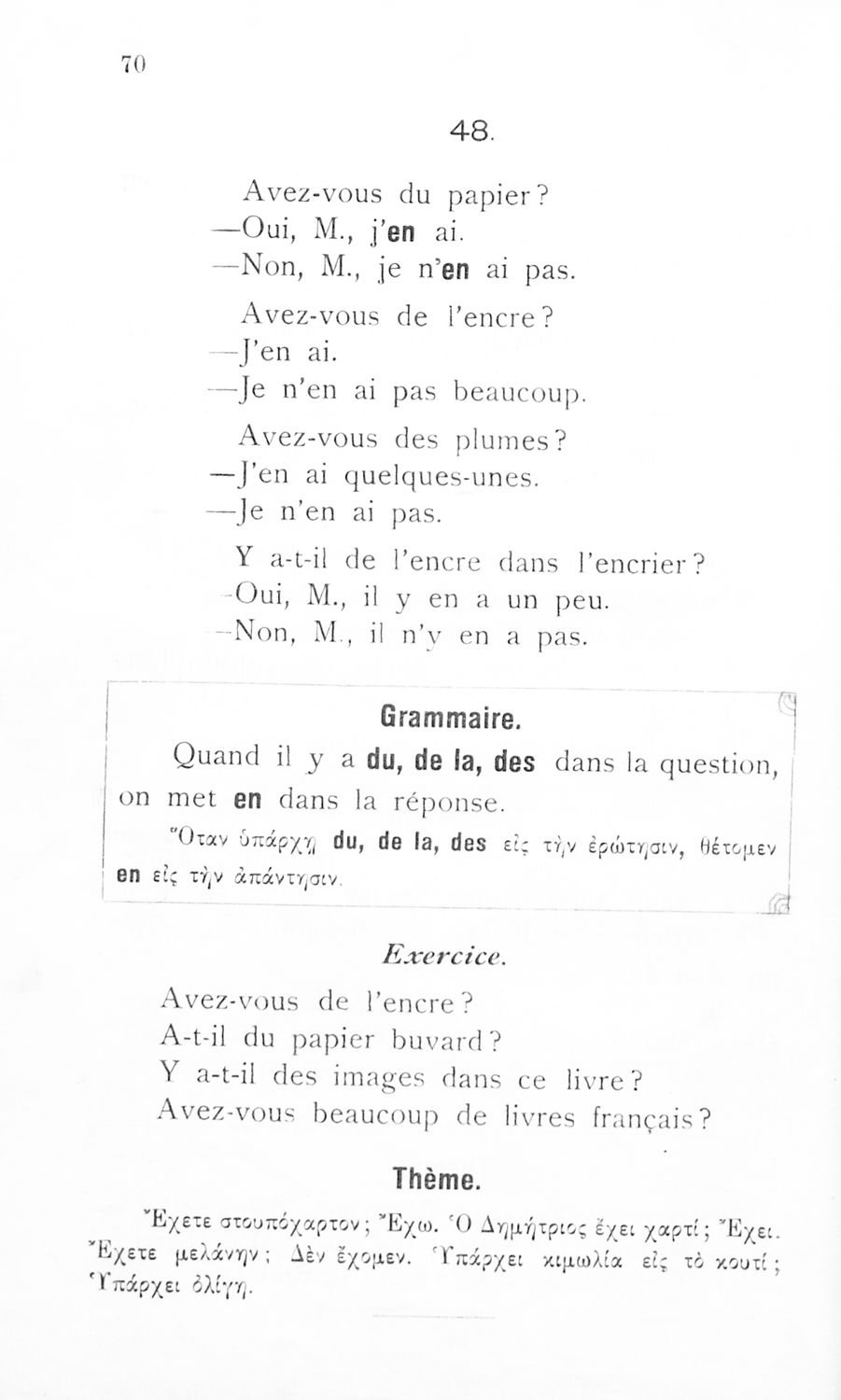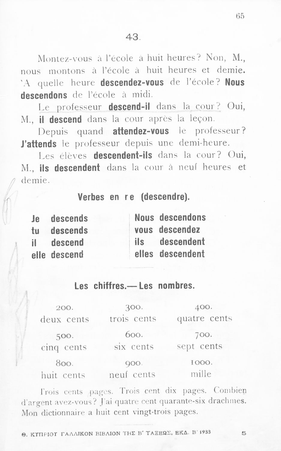 LDR 01681 2200217 4500 035 ## _a02-01444 040 ## _aΕλληνικό Λογοτεχνικό και Ιστορικό Αρχείο 041 ## _ael 100 ## _aΘεόδωρος Γ. Κύπριος 110 ## _a1933 ΚΥΠ ΠΡΩ 245 0# _aΤα πρώτα μαθήματα, Γαλλικόν βιβλίον της Β΄ τάξεως κατά το νέον αναλυτικόν πρόγραμμα δια την Β΄ τάξιν των Εξαταξίων Γυμνασίων, την Β΄ τάξιν των Ημιγυμνασίων και τας αντιστοίχους τάξεις των λοιπών Σχολείων της Μέσης Εκπαιδεύσεως 250 ## _a2η Έκδοση 260 ## _aΑθήνα _bΔημ. Ν. Τζάκας, Στεφ. Δελαγραμμάτικας και ΣΙΑ _c1933 300 ## _a112 _bΣκίτσα (ασπρόμαυρα) 520 ## _aΣχολικό εγχειρίδιο Γαλλικών της Β΄ Γυμνασίου. Το βιβλίο περιέχει κανόνες και ασκήσεις Γραμματικής, καθώς και επιλογές κειμένων και ποιημάτων τα οποία αντλούν από εικόνες της υπαίθρου και τον οικογενειακό και κοινωνικό βίο. Στο δεύτερο μέρος το βιβλίο περιλαμβάνει κατάλογο λεξιλογίου. 521 ## _aΒ' Γυμνασίου 522 ## _aΕλλάδα 546 ## _aΚαθαρεύουσα 563 ## _aΜαλακό Εξώφυλλο 583 ## _a44782/9-9-1932 650 #4 _aGrammaire _aLectures _aPoesies _aPrononciation