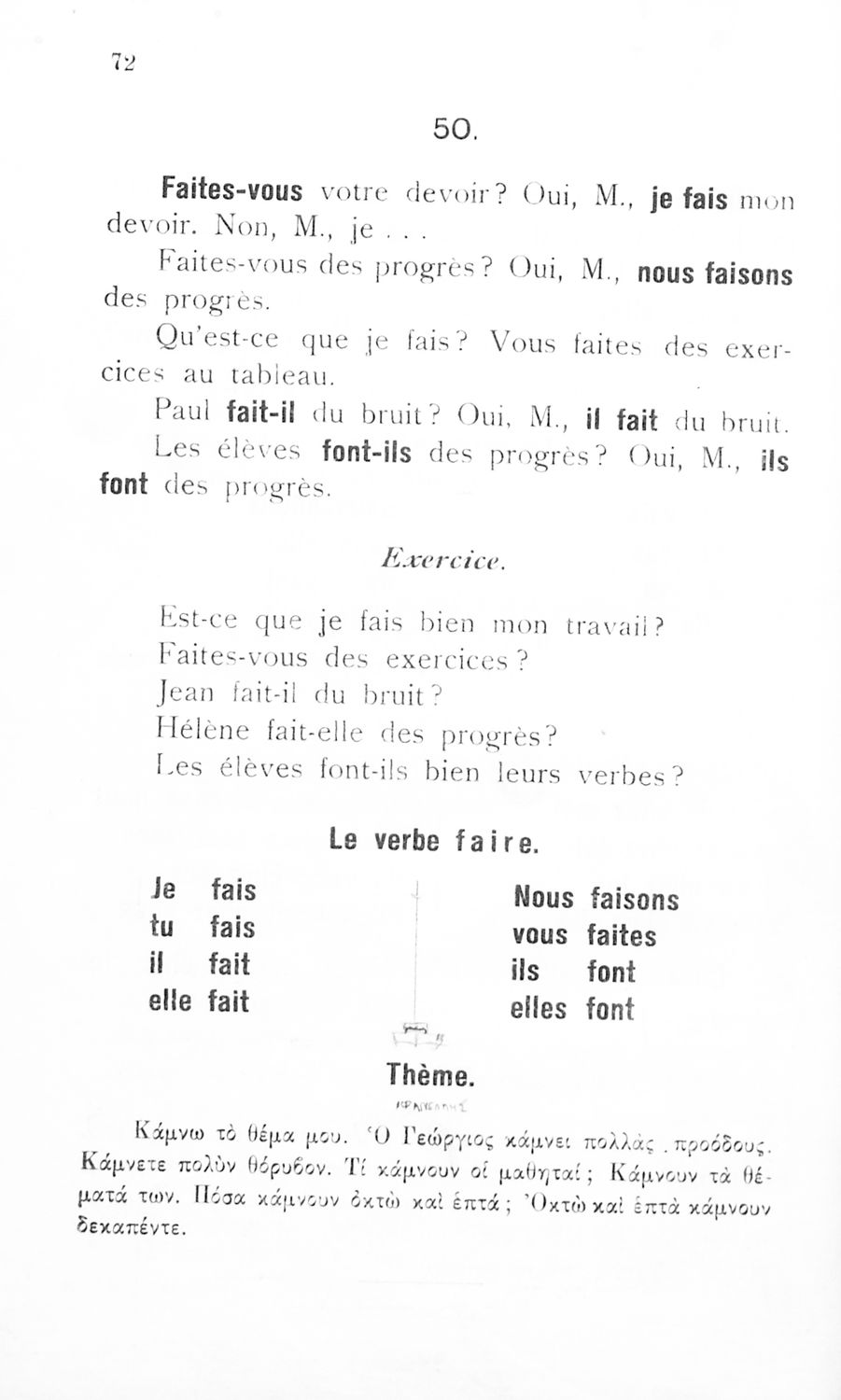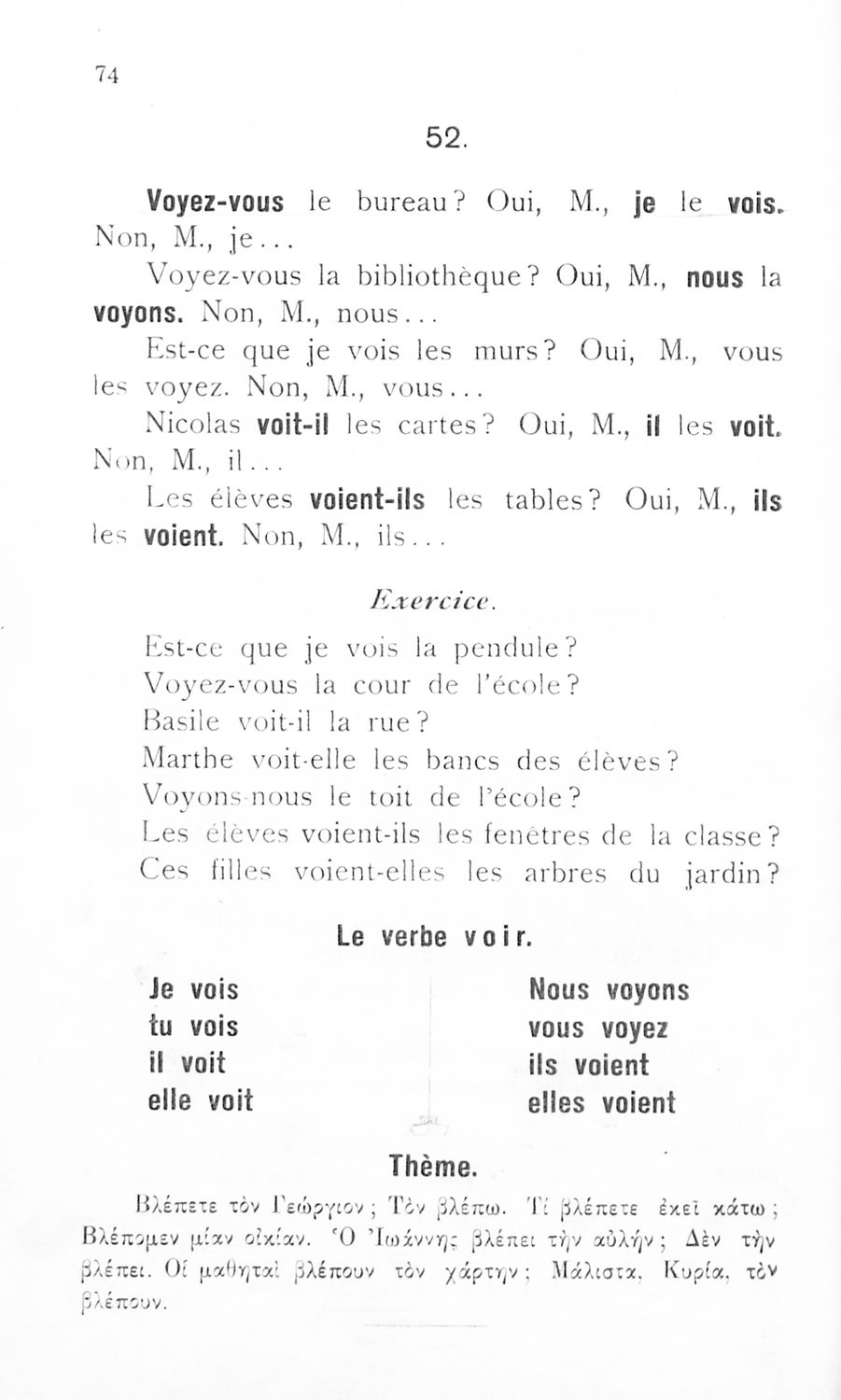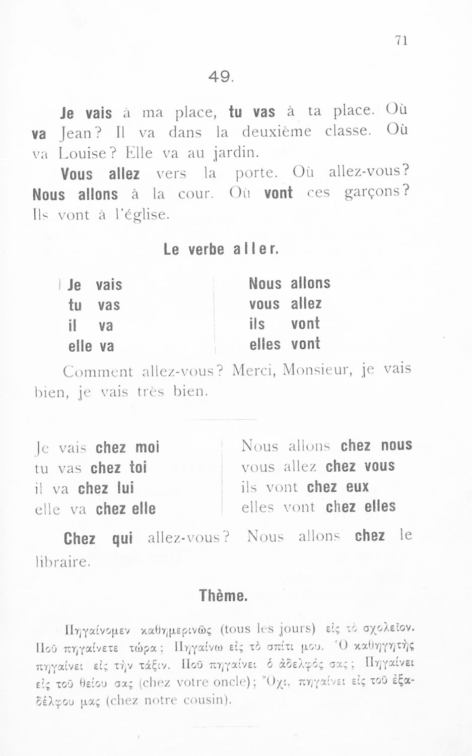 Σχολικό εγχειρίδιο Γαλλικών της Β΄ Γυμνασίου. Το βιβλίο περιέχει κανόνες και ασκήσεις Γραμματικής, καθώς και επιλογές κειμένων και ποιημάτων τα οποία αντλούν από εικόνες της υπαίθρου και τον οικογενειακό και κοινωνικό βίο. Στο δεύτερο μέρος το βιβλίο περιλαμβάνει κατάλογο λεξιλογίου.