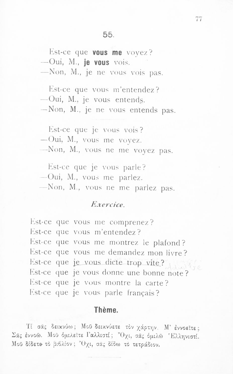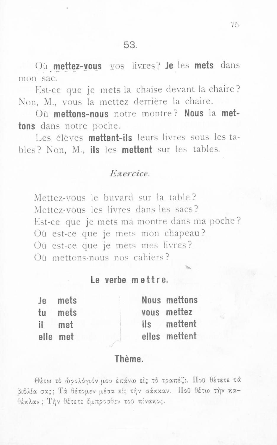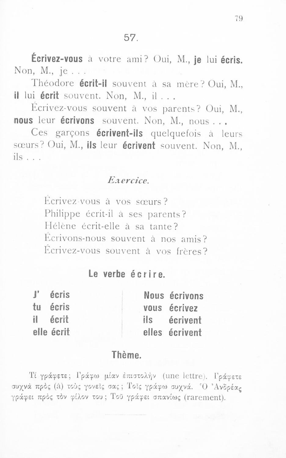Σχολικό εγχειρίδιο Γαλλικών της Β΄ Γυμνασίου. Το βιβλίο περιέχει κανόνες και ασκήσεις Γραμματικής, καθώς και επιλογές κειμένων και ποιημάτων τα οποία αντλούν από εικόνες της υπαίθρου και τον οικογενειακό και κοινωνικό βίο. Στο δεύτερο μέρος το βιβλίο περιλαμβάνει κατάλογο λεξιλογίου.