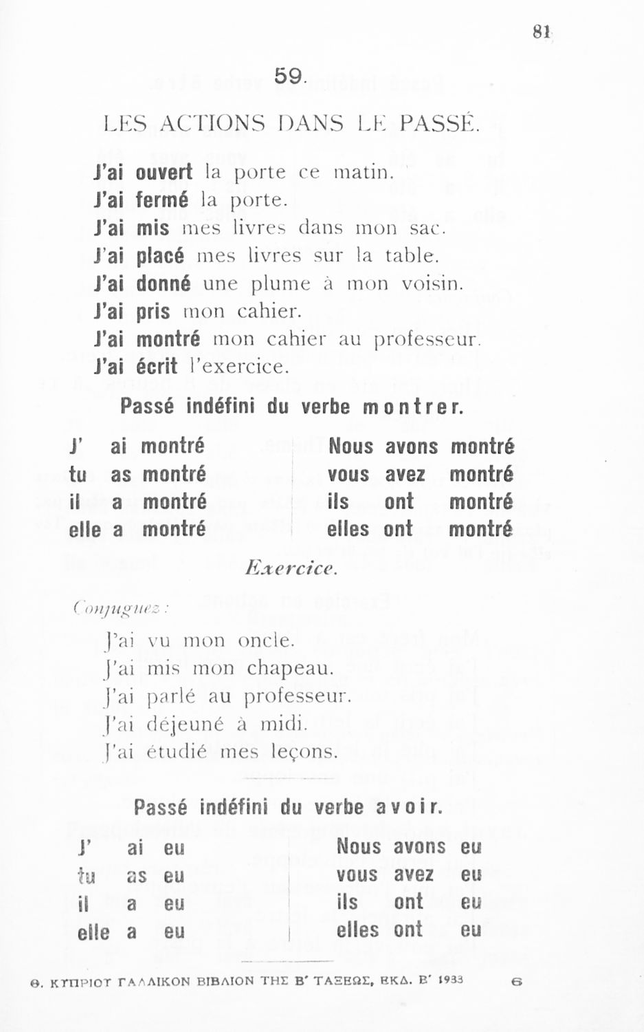 Κωδικός αναγνώρισης: 02-01444 Τίτλος: Τα πρώτα μαθήματα, Γαλλικόν βιβλίον της Β΄ τάξεως κατά το νέον αναλυτικόν πρόγραμμα δια την Β΄ τάξιν των Εξαταξίων Γυμνασίων, την Β΄ τάξιν των Ημιγυμνασίων και τας αντιστοίχους τάξεις των λοιπών Σχολείων της Μέσης Εκπαιδεύσεως Συγγραφέας: Θεόδωρος Γ. Κύπριος Μέγεθος και υπόστρωμα: Σχολικό εγχειρίδιο, μαλακό εξώφυλλο, 112 σελίδες. Σκίτσα (ασπρόμαυρα). |