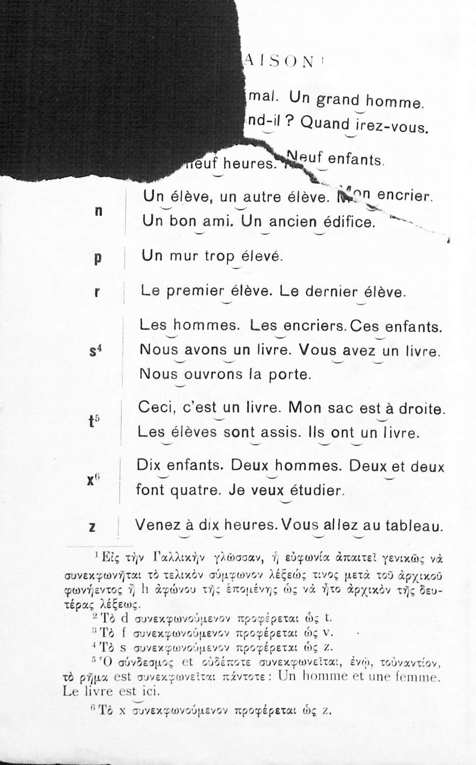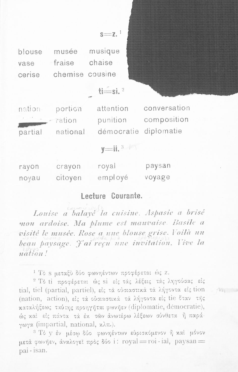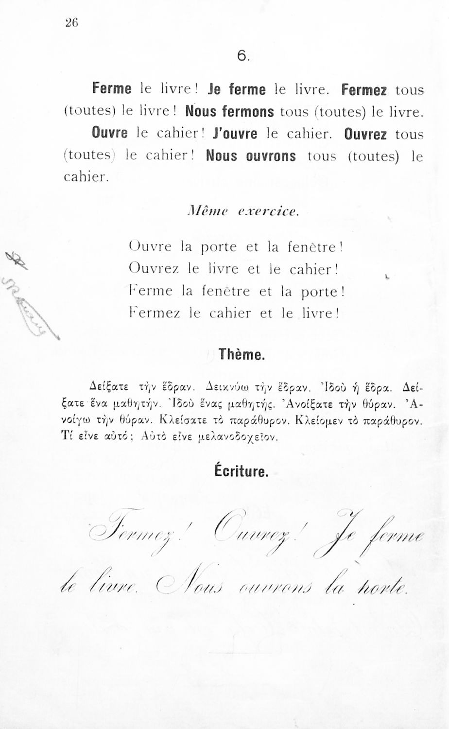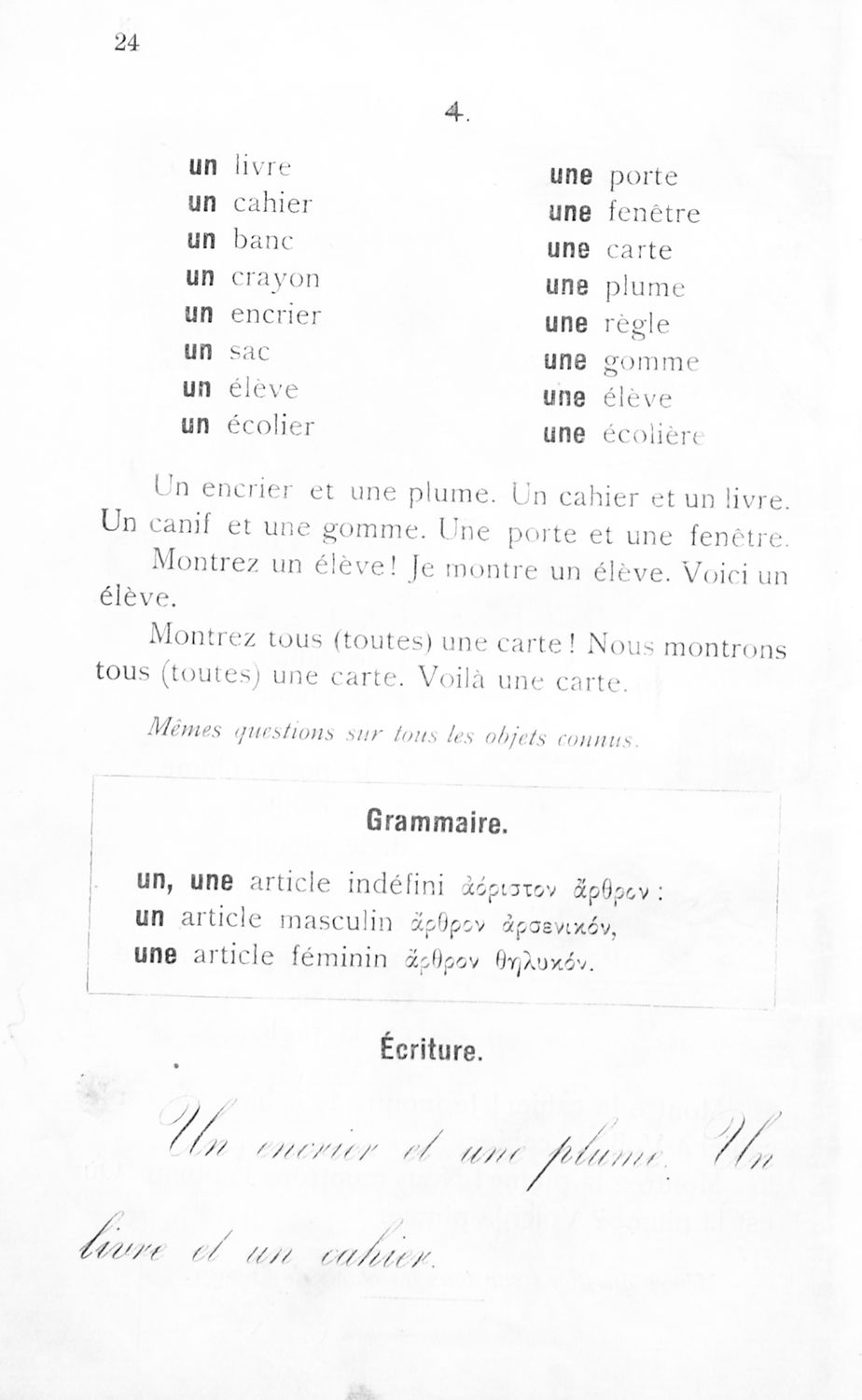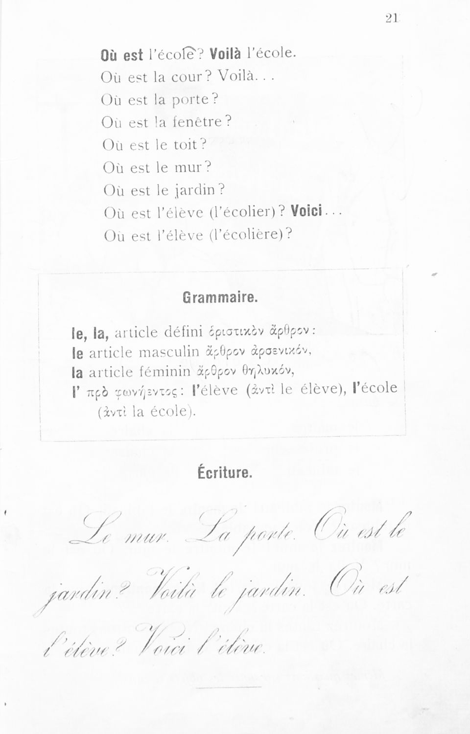 LDR 01681 2200217 4500 035 ## _a02-01444 040 ## _aΕλληνικό Λογοτεχνικό και Ιστορικό Αρχείο 041 ## _ael 100 ## _aΘεόδωρος Γ. Κύπριος 110 ## _a1933 ΚΥΠ ΠΡΩ 245 0# _aΤα πρώτα μαθήματα, Γαλλικόν βιβλίον της Β΄ τάξεως κατά το νέον αναλυτικόν πρόγραμμα δια την Β΄ τάξιν των Εξαταξίων Γυμνασίων, την Β΄ τάξιν των Ημιγυμνασίων και τας αντιστοίχους τάξεις των λοιπών Σχολείων της Μέσης Εκπαιδεύσεως 250 ## _a2η Έκδοση 260 ## _aΑθήνα _bΔημ. Ν. Τζάκας, Στεφ. Δελαγραμμάτικας και ΣΙΑ _c1933 300 ## _a112 _bΣκίτσα (ασπρόμαυρα) 520 ## _aΣχολικό εγχειρίδιο Γαλλικών της Β΄ Γυμνασίου. Το βιβλίο περιέχει κανόνες και ασκήσεις Γραμματικής, καθώς και επιλογές κειμένων και ποιημάτων τα οποία αντλούν από εικόνες της υπαίθρου και τον οικογενειακό και κοινωνικό βίο. Στο δεύτερο μέρος το βιβλίο περιλαμβάνει κατάλογο λεξιλογίου. 521 ## _aΒ' Γυμνασίου 522 ## _aΕλλάδα 546 ## _aΚαθαρεύουσα 563 ## _aΜαλακό Εξώφυλλο 583 ## _a44782/9-9-1932 650 #4 _aGrammaire _aLectures _aPoesies _aPrononciation