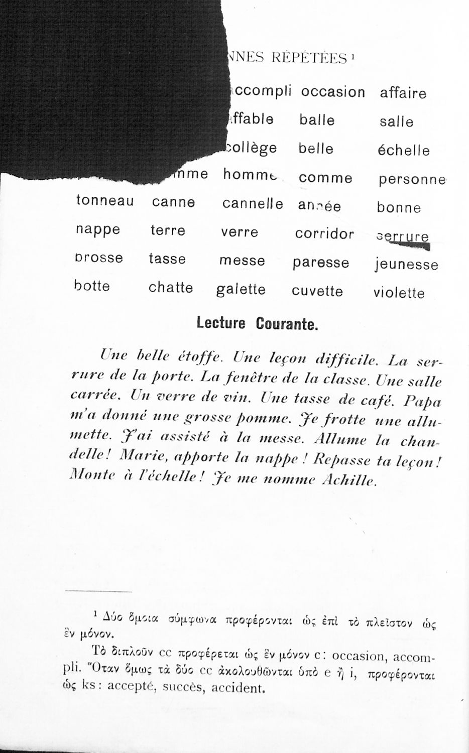 Σχολικό εγχειρίδιο Γαλλικών της Β΄ Γυμνασίου. Το βιβλίο περιέχει κανόνες και ασκήσεις Γραμματικής, καθώς και επιλογές κειμένων και ποιημάτων τα οποία αντλούν από εικόνες της υπαίθρου και τον οικογενειακό και κοινωνικό βίο. Στο δεύτερο μέρος το βιβλίο περιλαμβάνει κατάλογο λεξιλογίου.