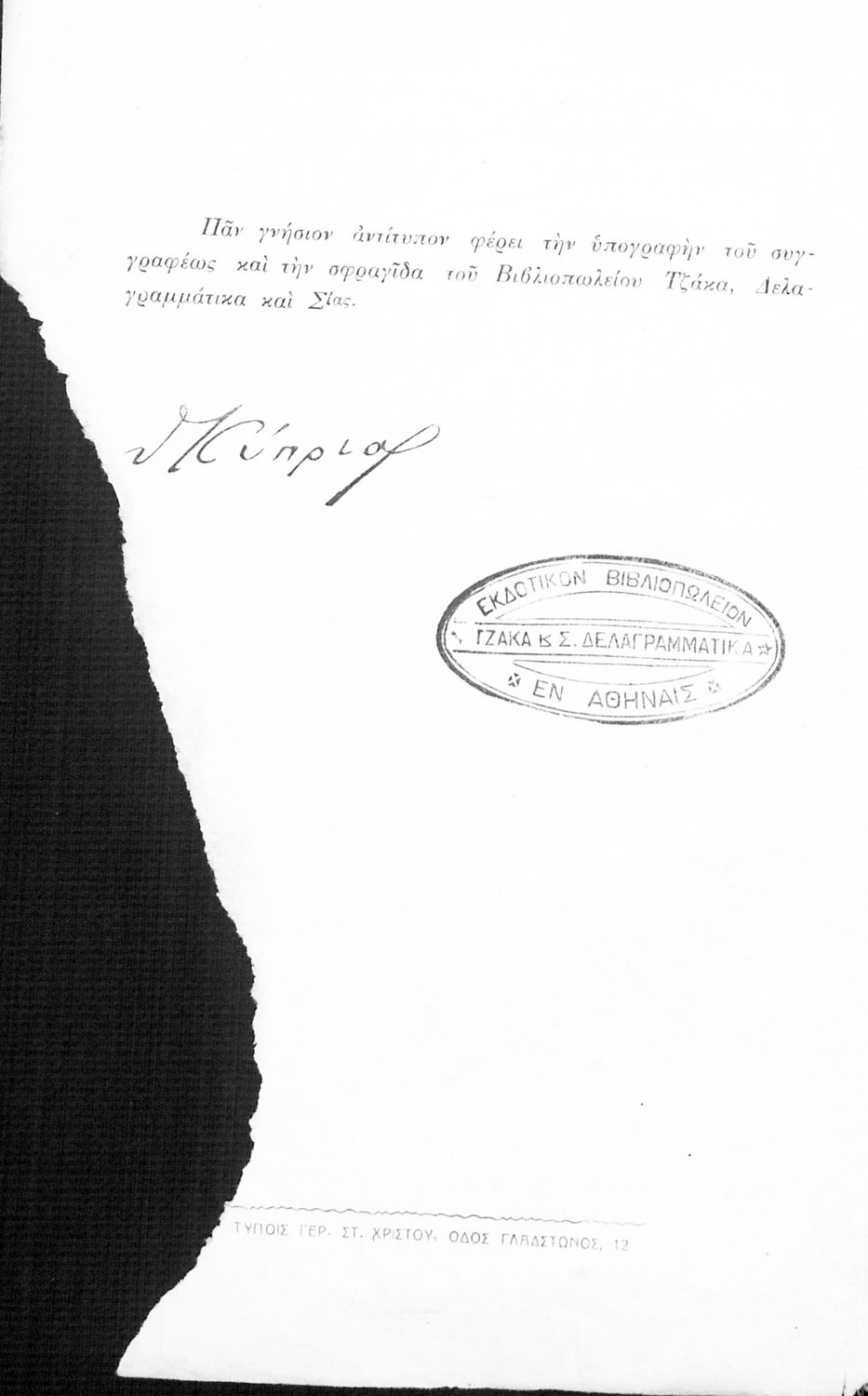 Εντοπισμός πρωτοτύπου: Ελληνικό Λογοτεχνικό και Ιστορικό Αρχείο Κωδικός βιβλιοθήκης: 1933 ΚΥΠ ΠΡΩ |