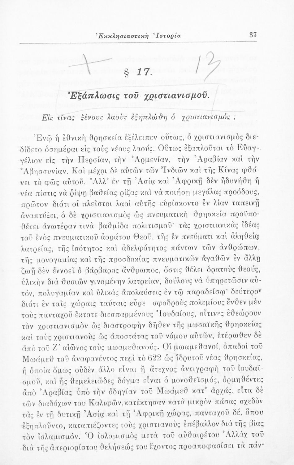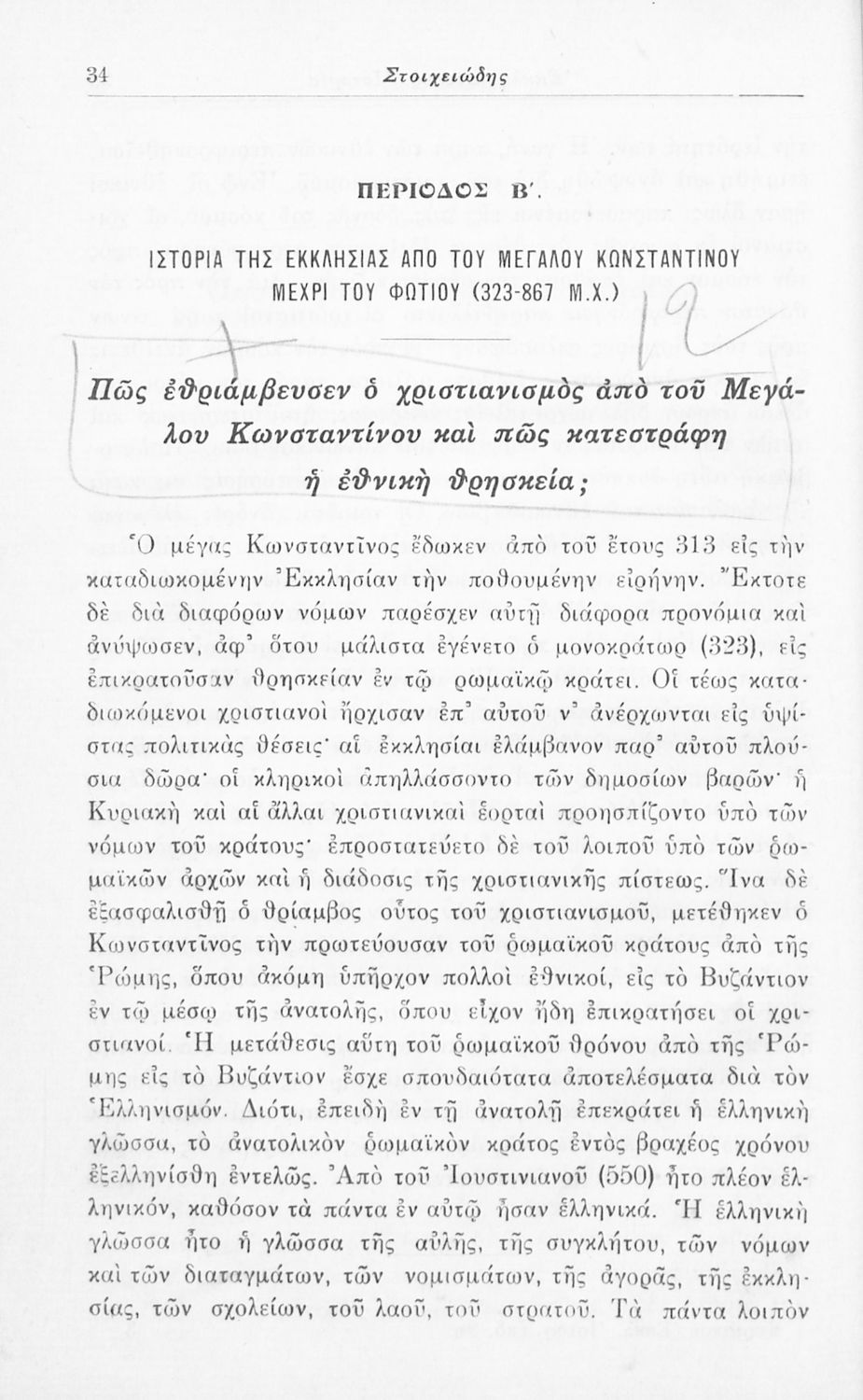 Στοιχειώδης εκκλησιαστική ιστορία δια την ΣΤ΄ τάξιν του (Εξαταξίου) Γυμνασίου