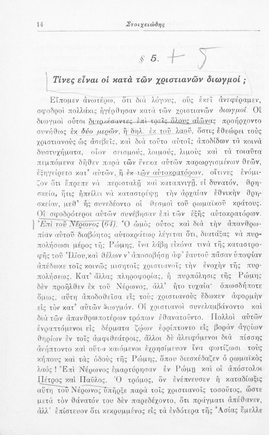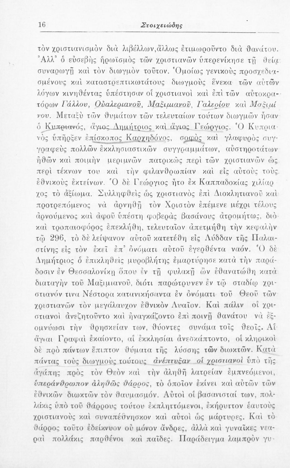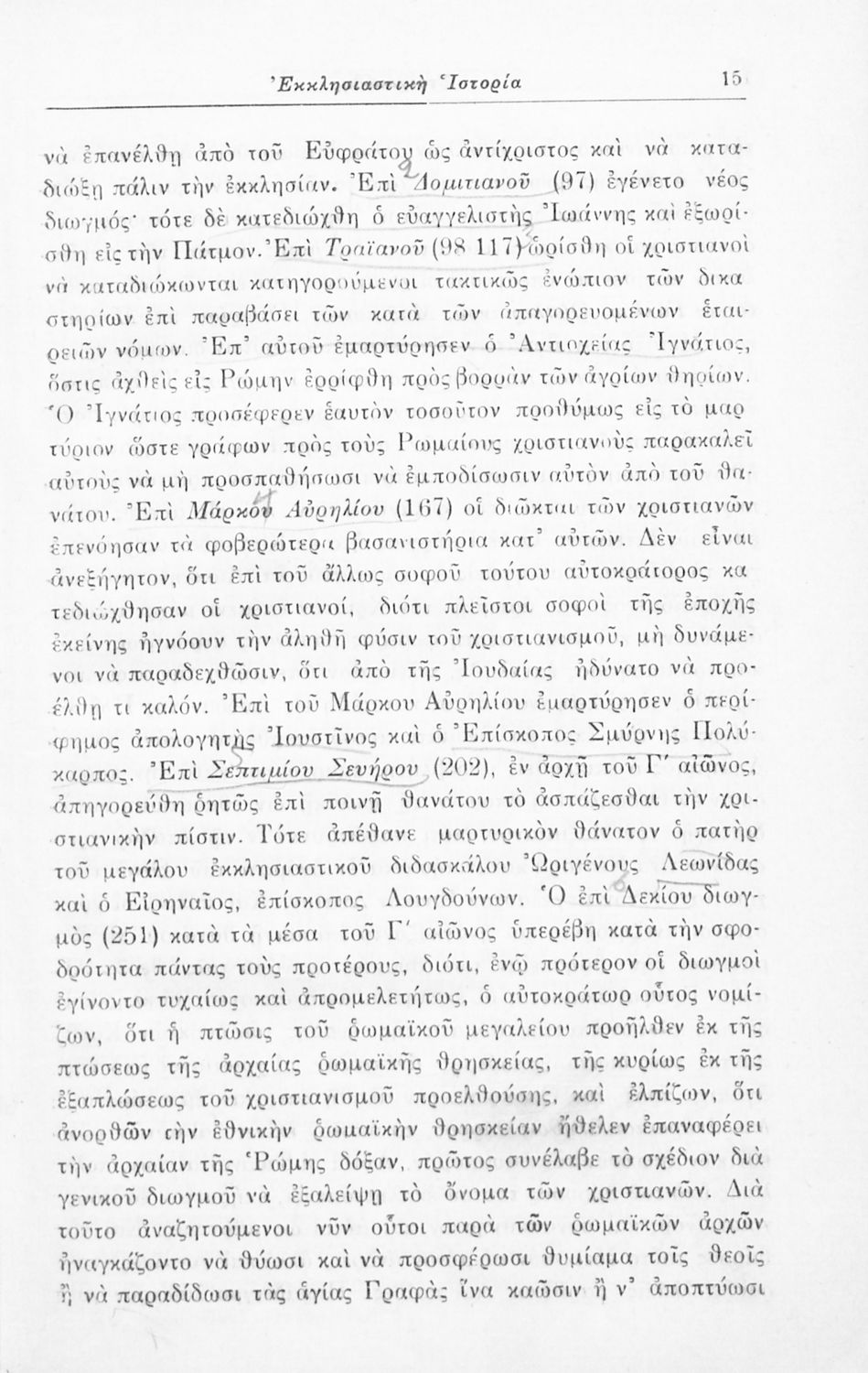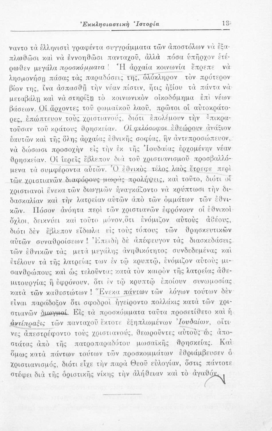 Βαθμίδα εκπαίδευσης: Δευτεροβάθμια Τάξη: ΣΤ' Γυμνασίου Μάθημα: Θρησκευτικά Γλώσσα: Καθαρεύουσα Παρουσίαση περιεχομένου: Σχολικό εγχειρίδιο Θρησκευτικών ΣΤ΄ Γυμνασίου δομημένο ιστορικά με βάση το σχίσμα των εκκλησιών σε ανατολική και δυτική και την άλωση της Κωνσταντινούπολης. Το εγχειρίδιο εγκρίθηκε από την Ιερά Σύνοδο. Ο συγγραφέας ήταν καθηγητής Θεολογίας στο Εθνικό Πανεπιστήμιο. |