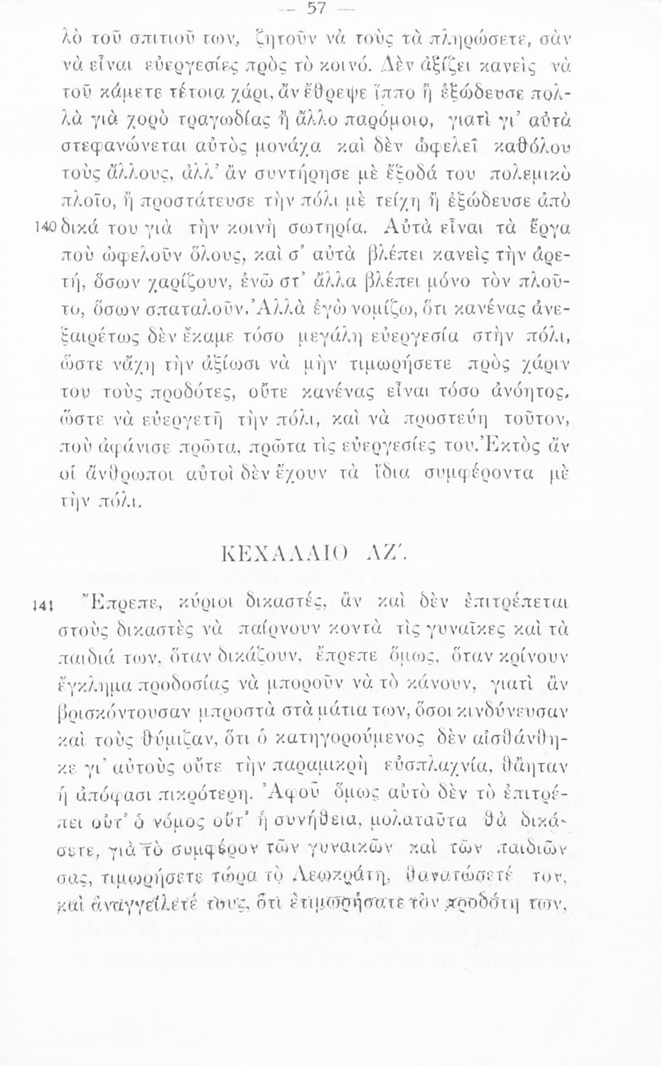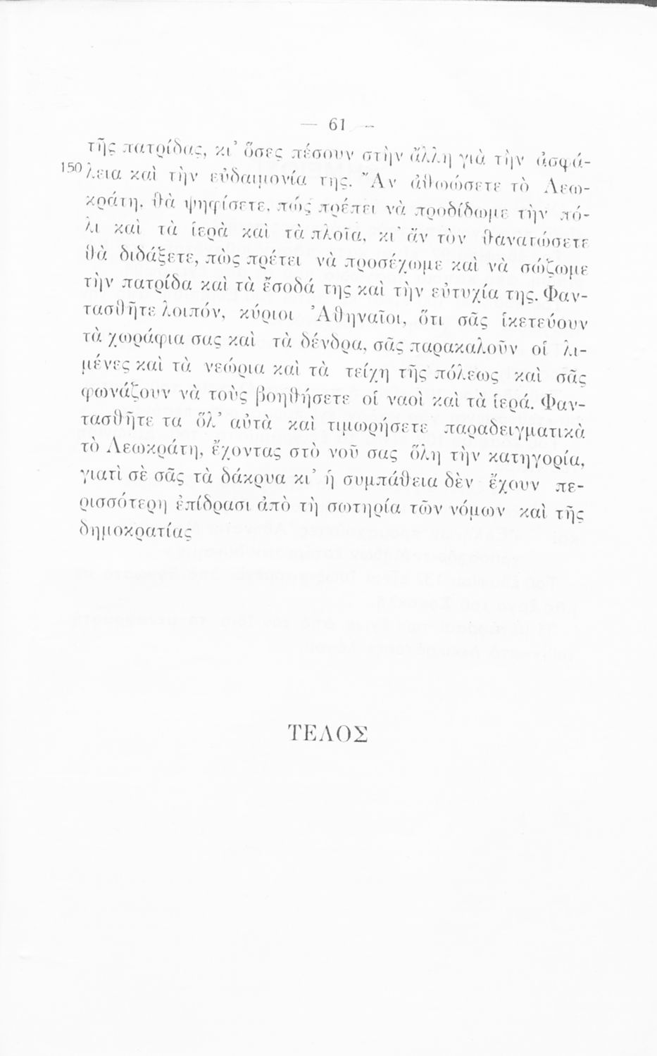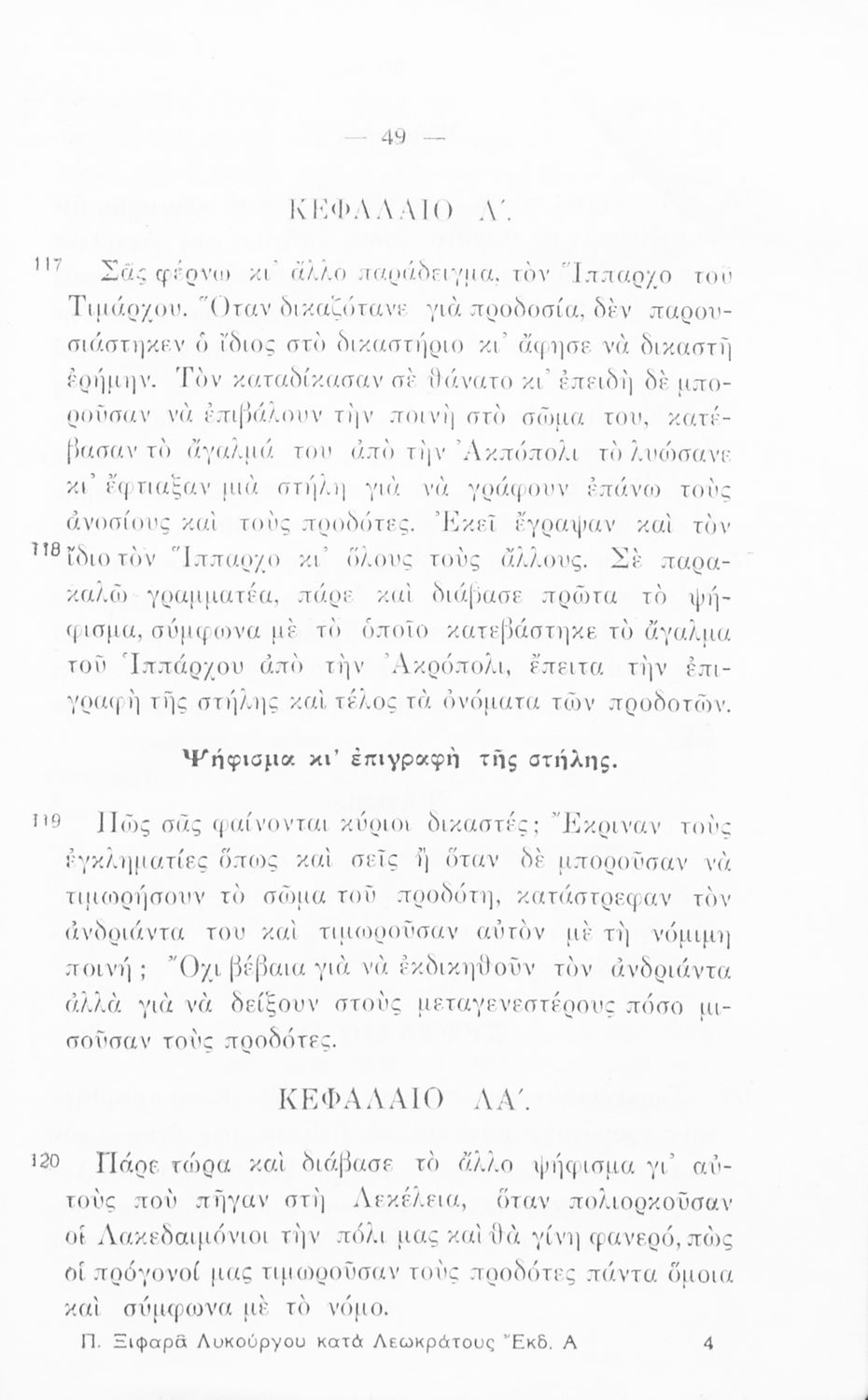 Σχολικό εγχειρίδιο Αρχαίων Ελληνικών Δ΄ Γυμνασίου που περιλαμβάνει εισαγωγή στη ζωή και το έργο του Λυκούργου, τον Λόγο κατά Λεωκράτους και ερμηνευτικά και πραγματολογικά σχόλια.