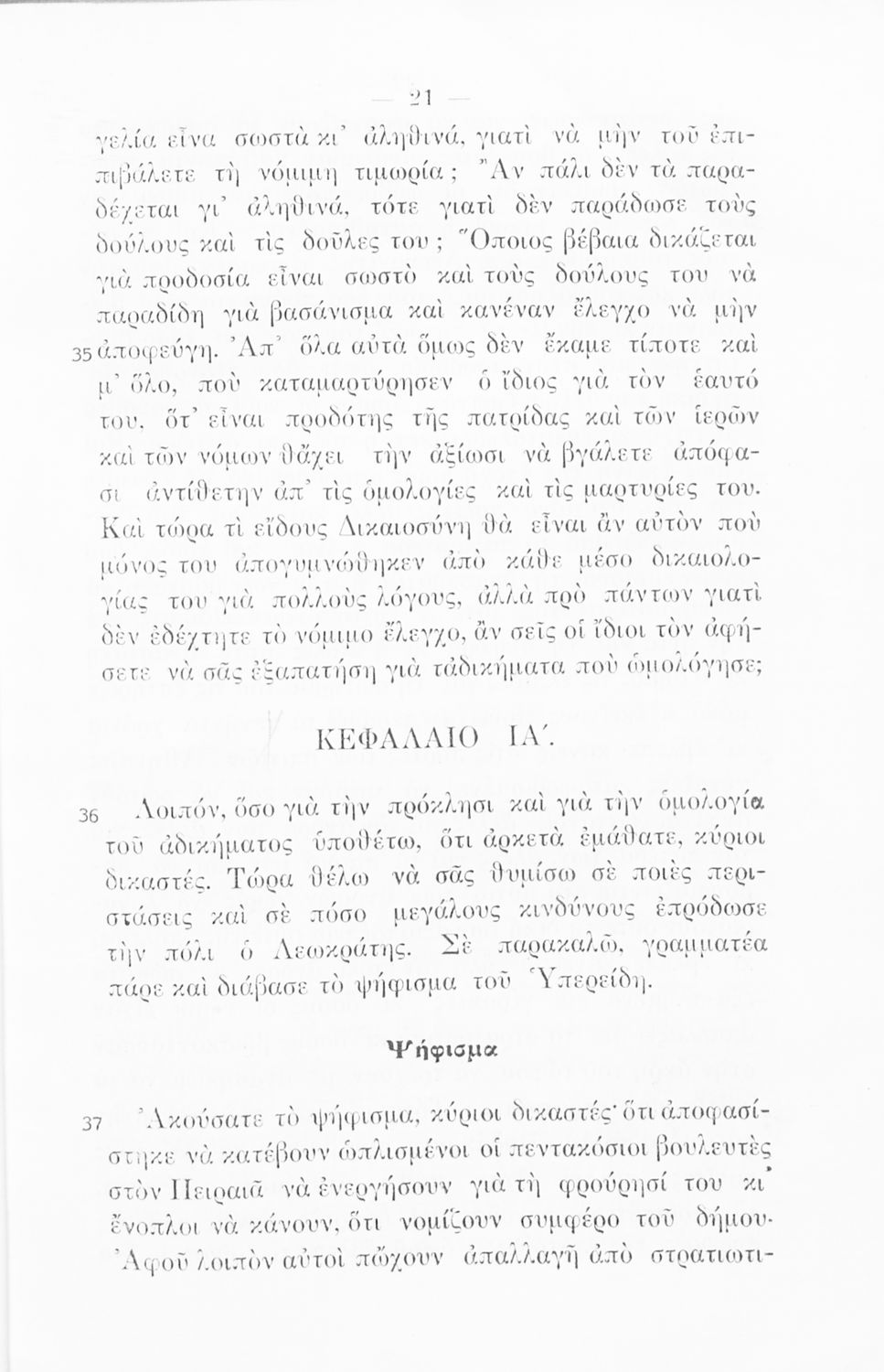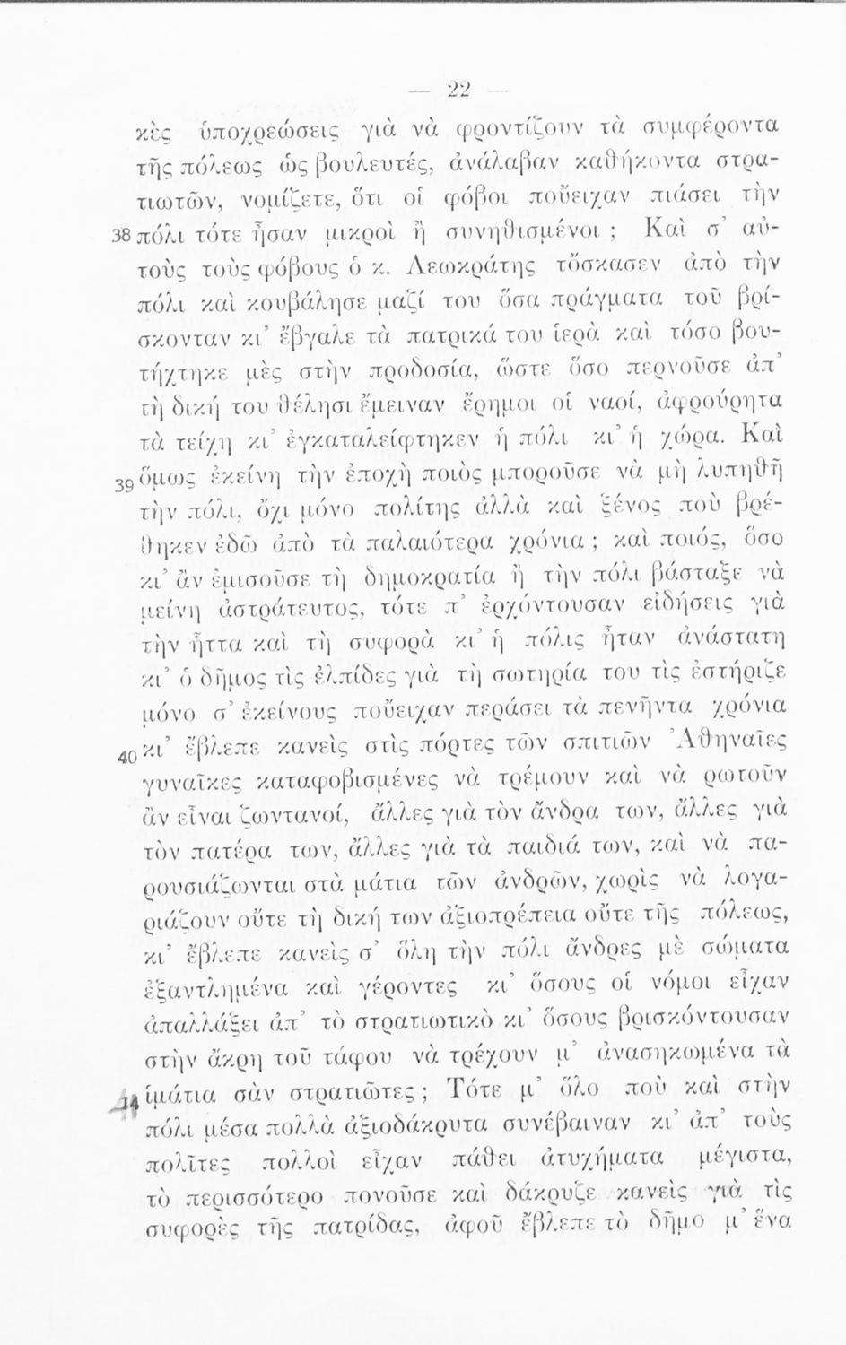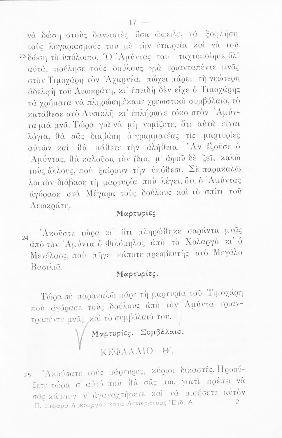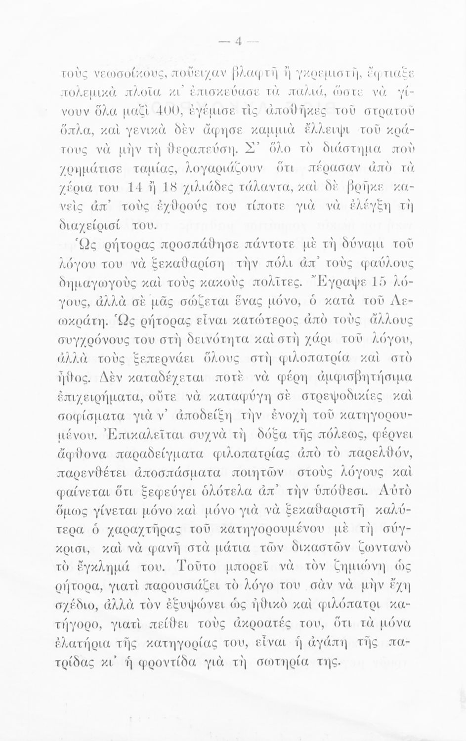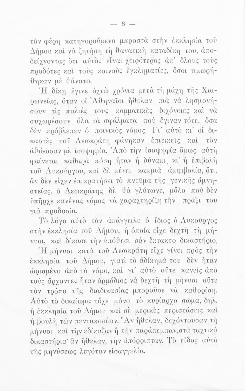 Σχολικό εγχειρίδιο Αρχαίων Ελληνικών Δ΄ Γυμνασίου που περιλαμβάνει εισαγωγή στη ζωή και το έργο του Λυκούργου, τον Λόγο κατά Λεωκράτους και ερμηνευτικά και πραγματολογικά σχόλια.