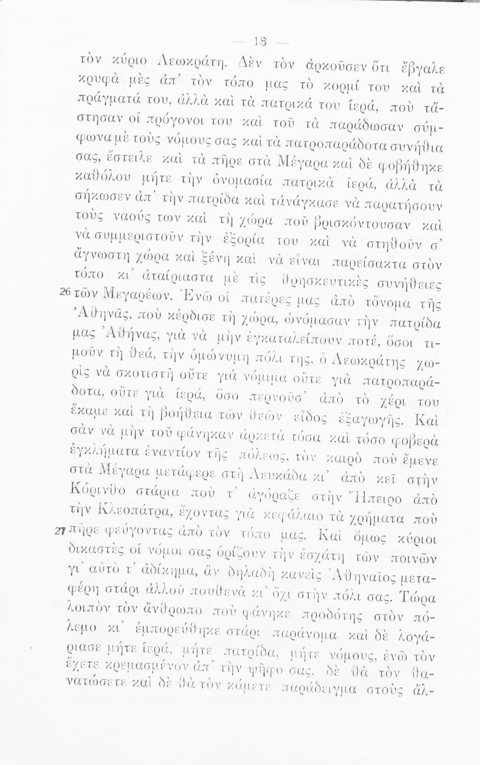 Βαθμίδα εκπαίδευσης: Δευτεροβάθμια Τάξη: Δ' Γυμνασίου Μάθημα: Αρχαία Ελληνικά Γλώσσα: Καθαρεύουσα Παρουσίαση περιεχομένου: Σχολικό εγχειρίδιο Αρχαίων Ελληνικών Δ΄ Γυμνασίου που περιλαμβάνει εισαγωγή στη ζωή και το έργο του Λυκούργου, τον Λόγο κατά Λεωκράτους και ερμηνευτικά και πραγματολογικά σχόλια. |
