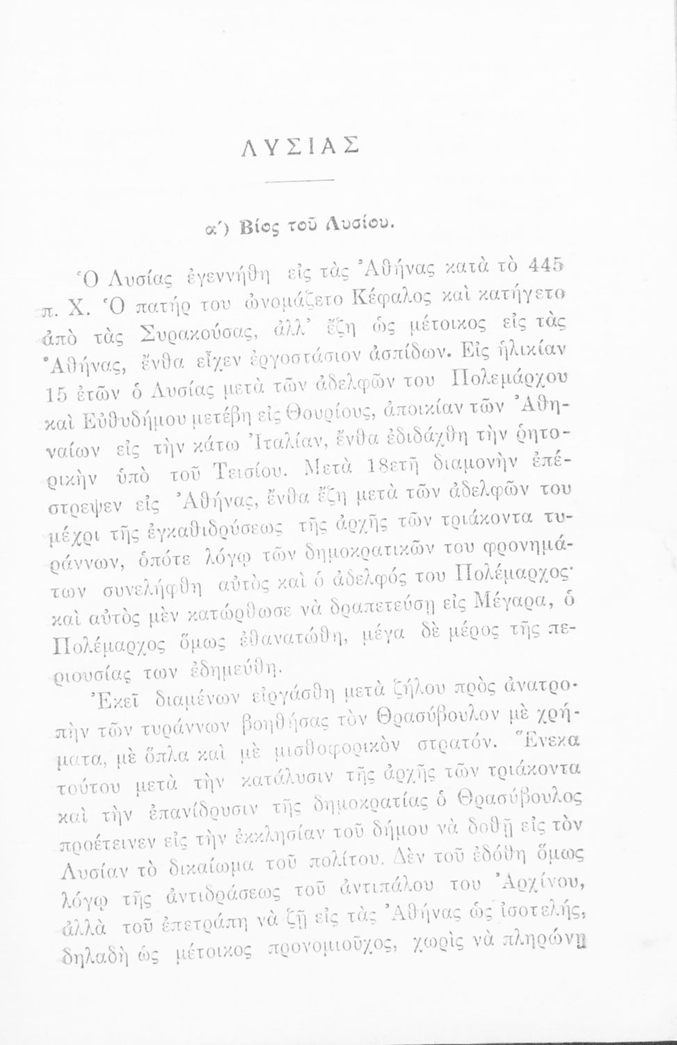 Λυσίου Εκλεκτοί Λόγοι δια την Γ' τάξιν των Εξαταξίων Γυμνασίων